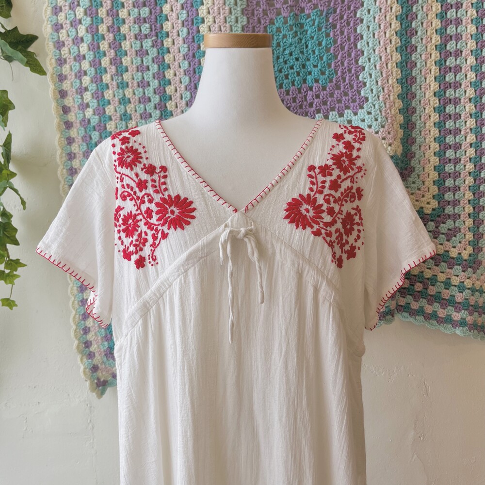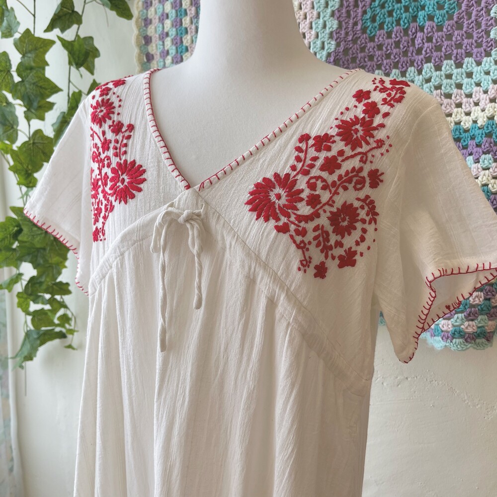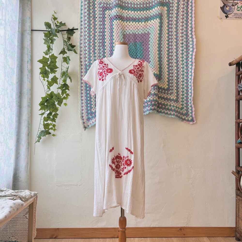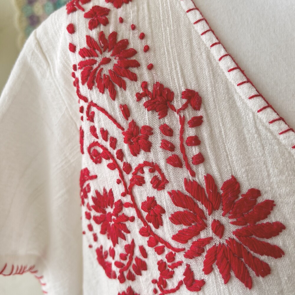 티티카카의 레드 색감의 꽃자수 롱원피스예요