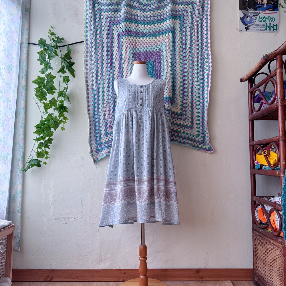 소라색의 민소매 원피스예요