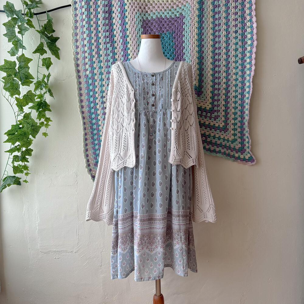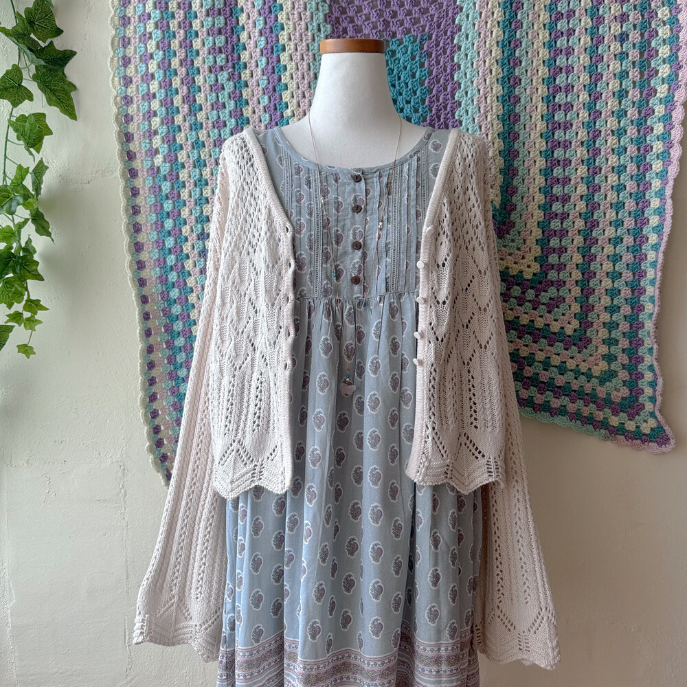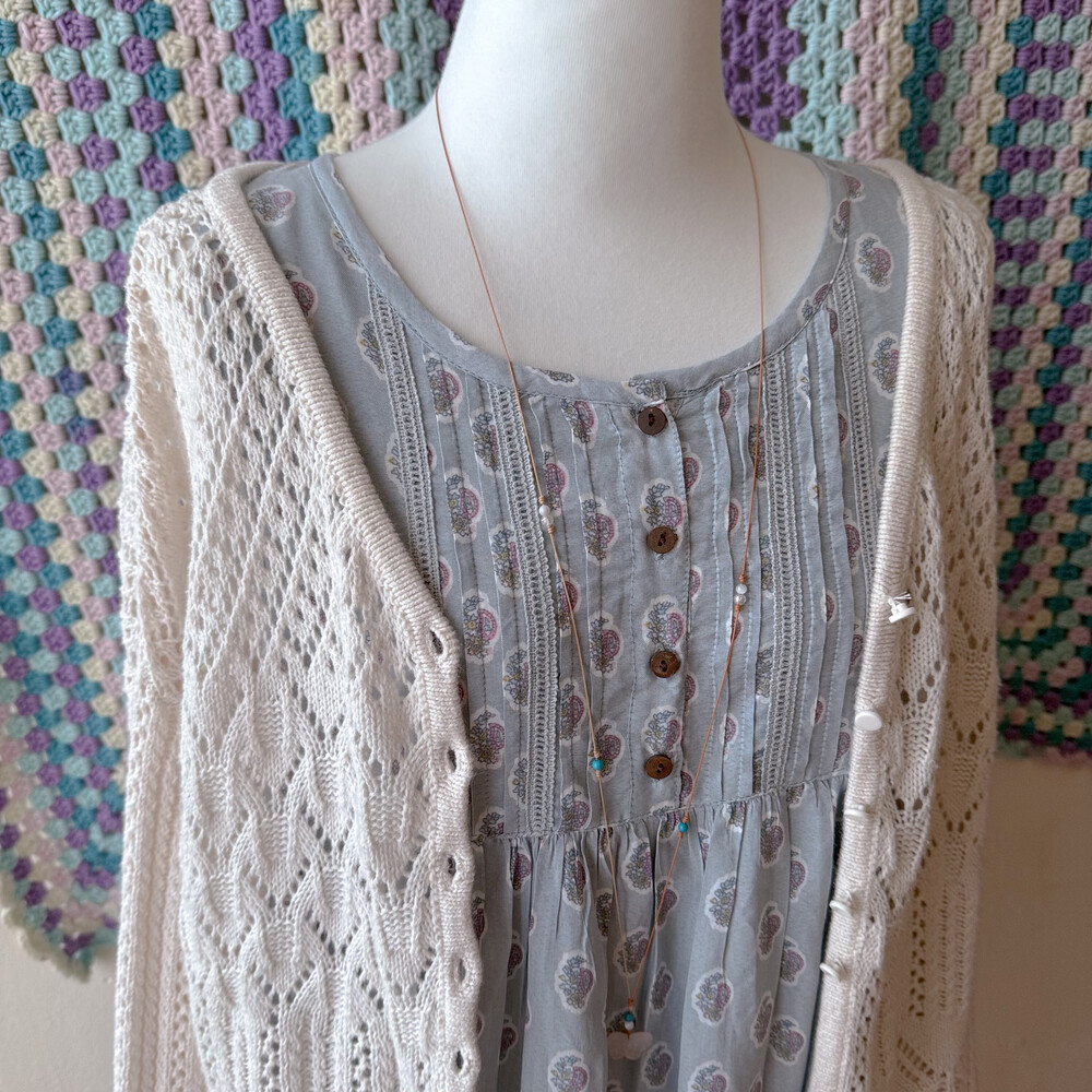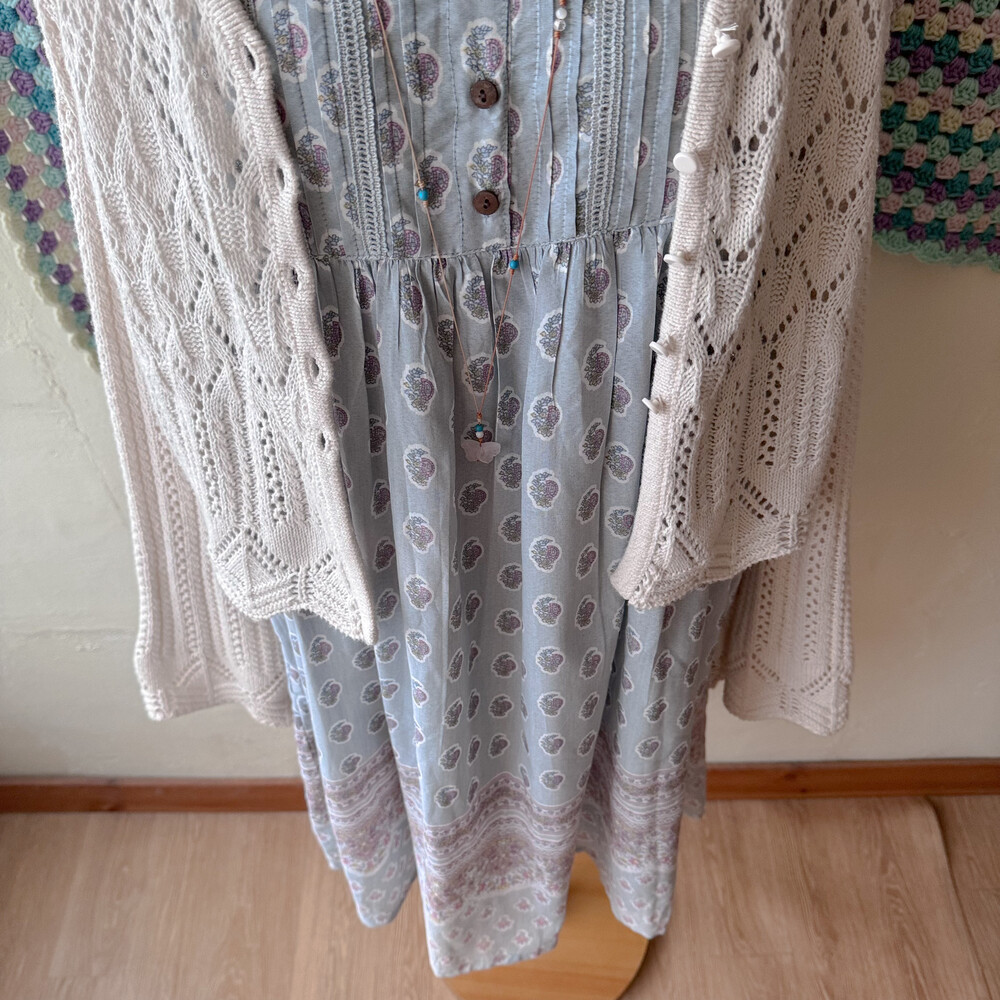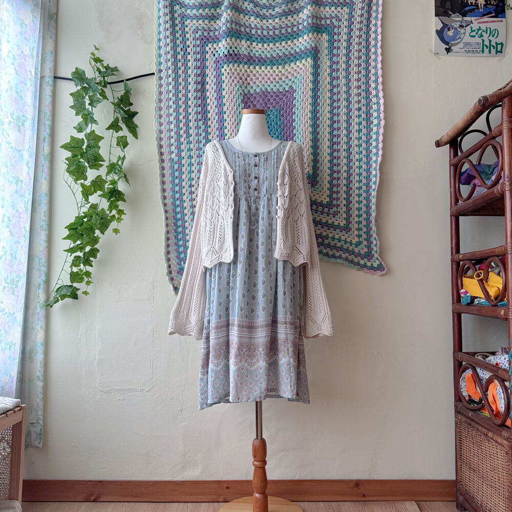 sky blue flower ornament pintuck ops