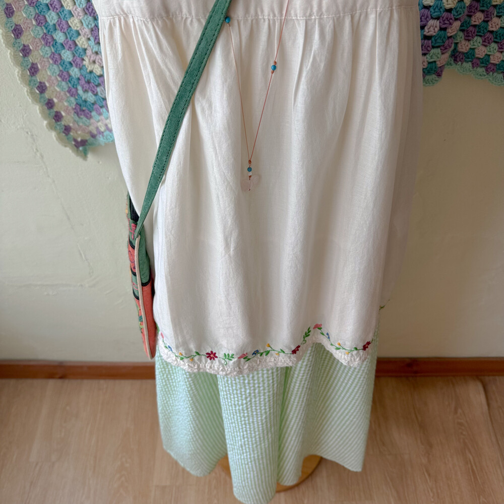 아이보리 색감의 자수 블라우스예요