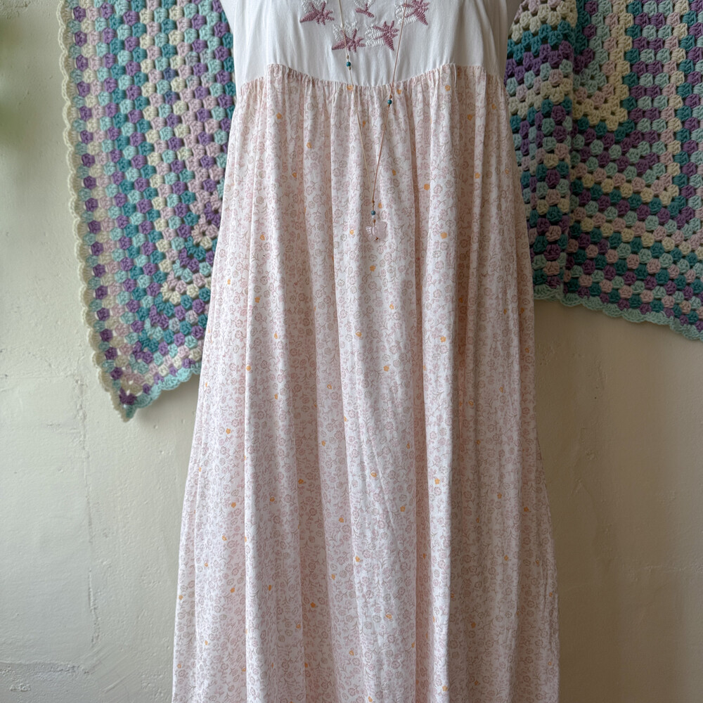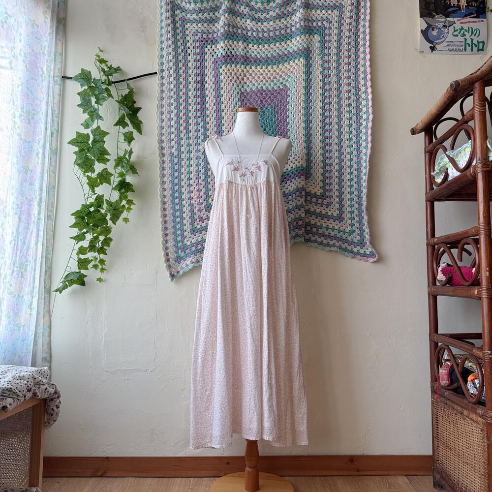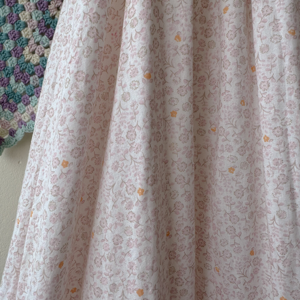 핑크 꽃무늬 패턴의 코튼 끈원피스예요