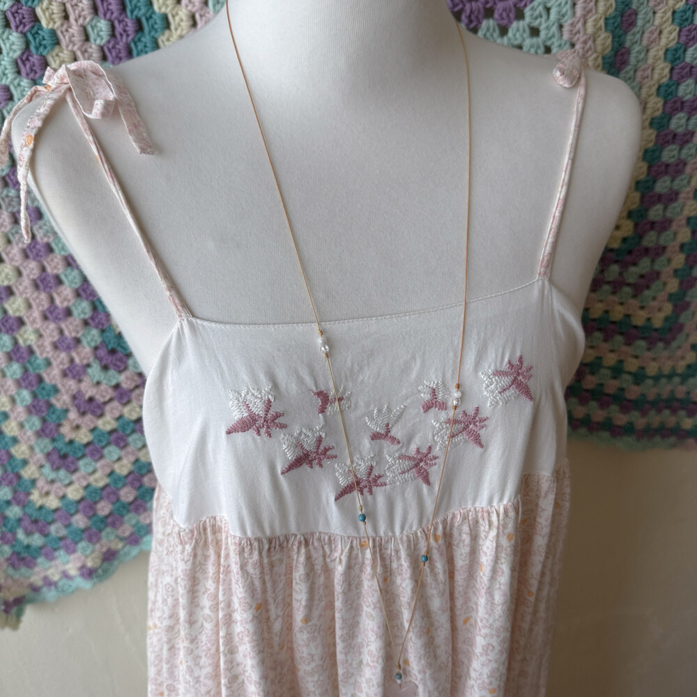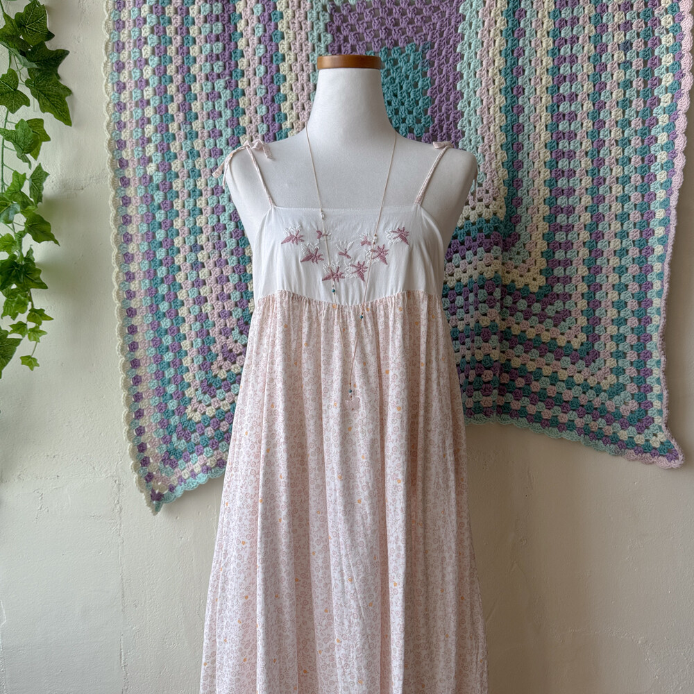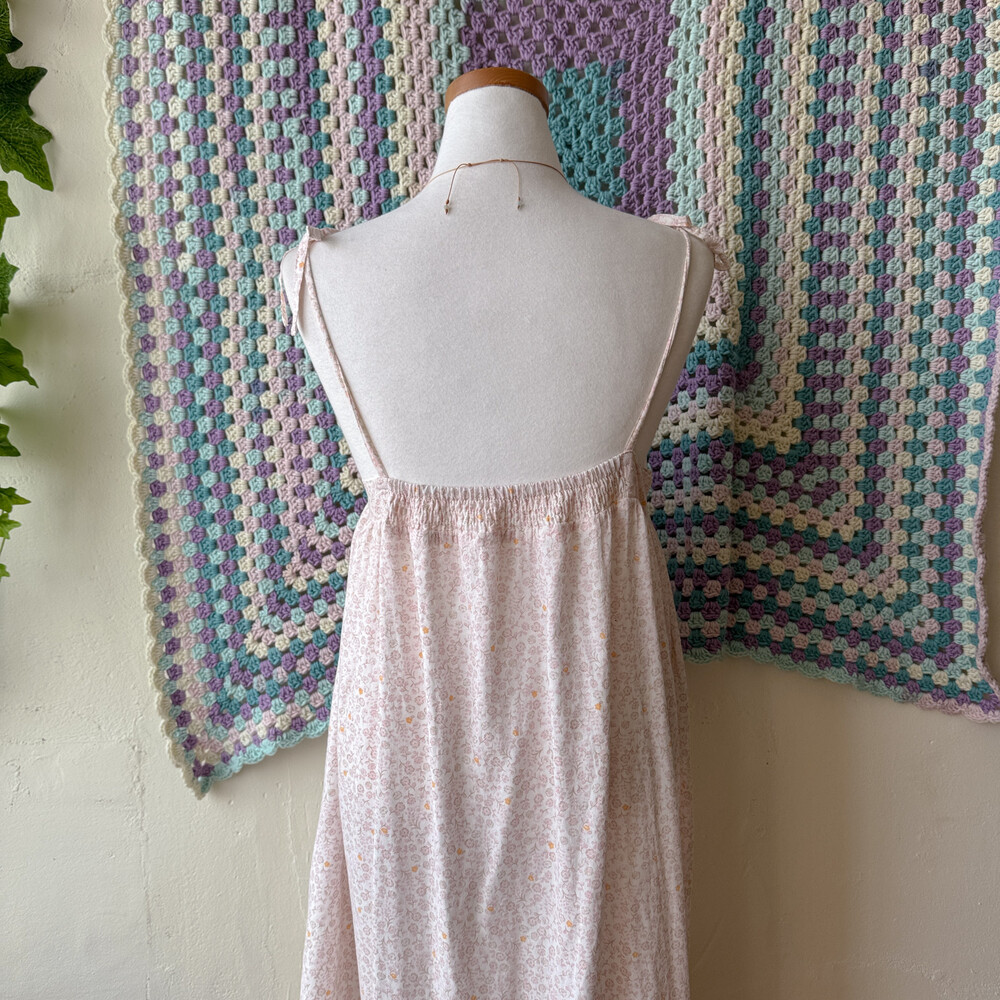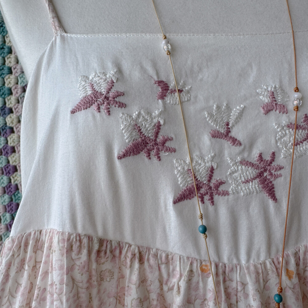 핑크 꽃무늬 패턴의 코튼 끈원피스예요