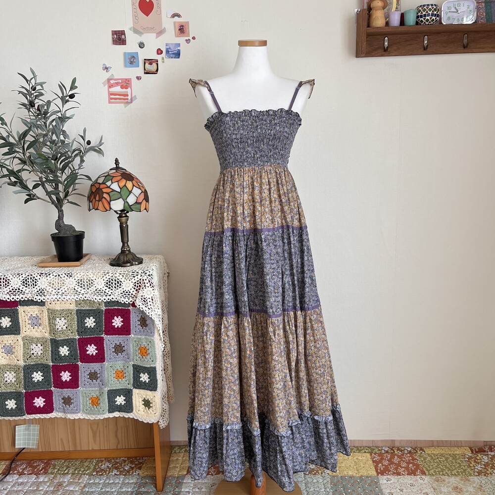 프릴 어깨 끈 포인트의 코튼 잔꽃 끈원피스예요