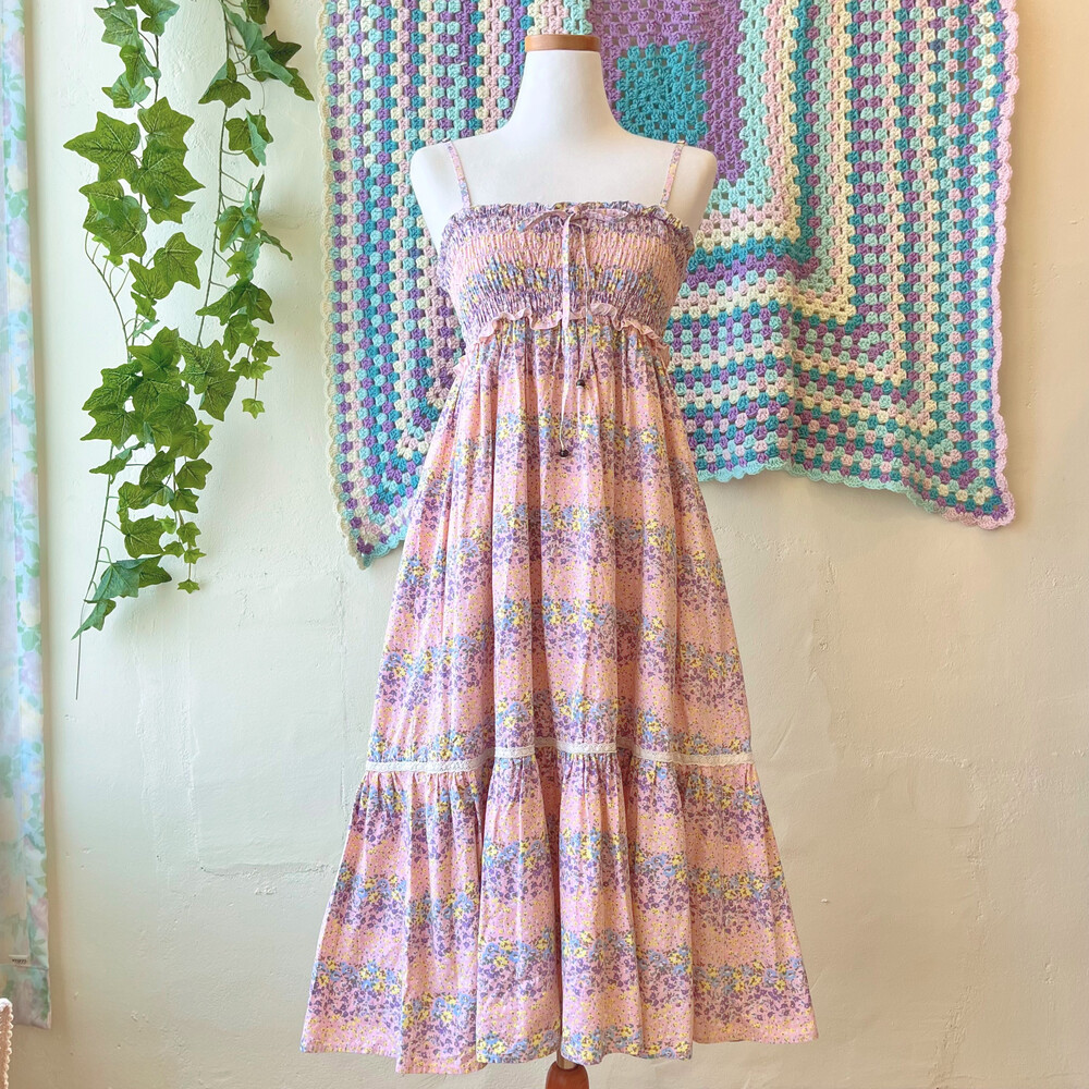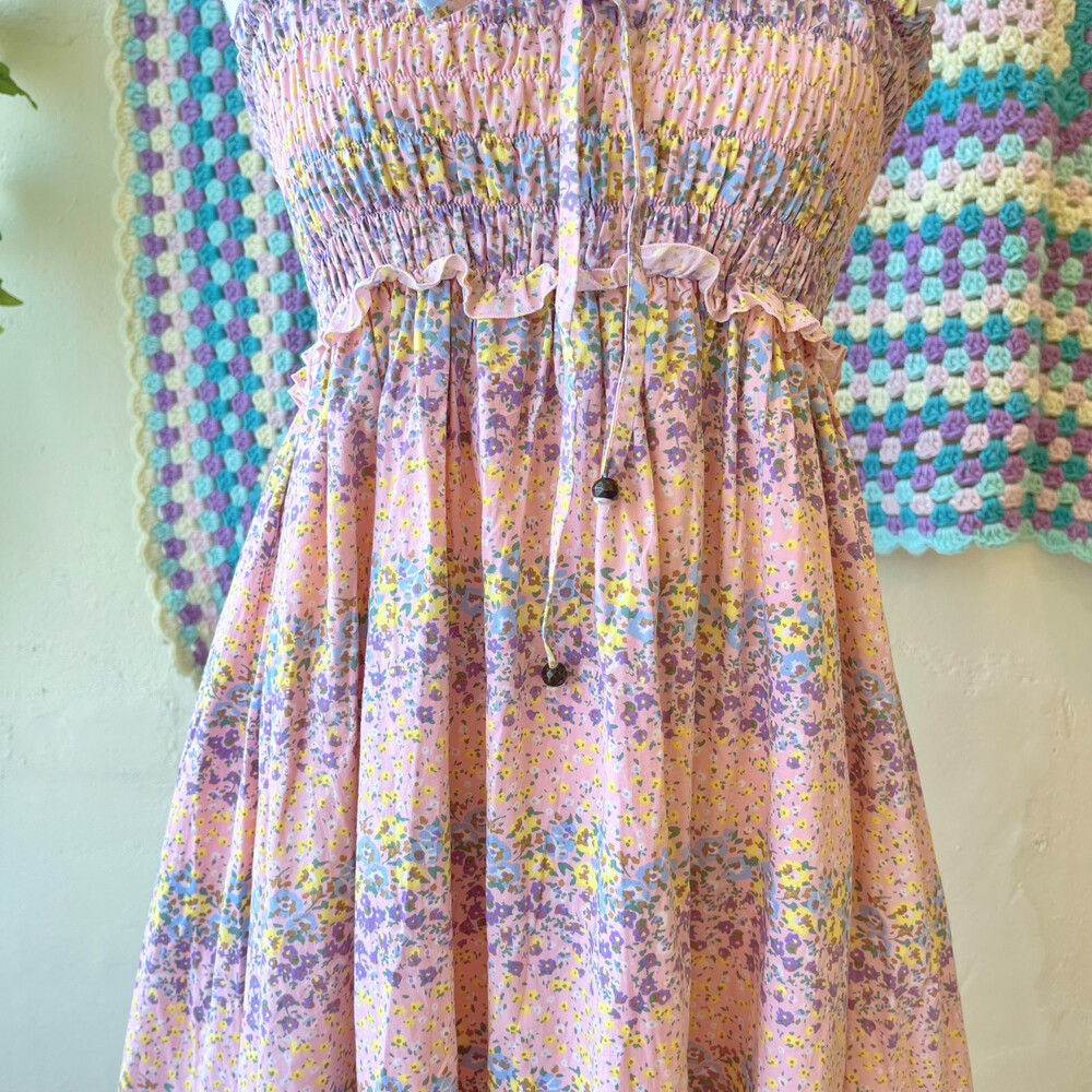 보라색감의 코튼 끈원피스예요