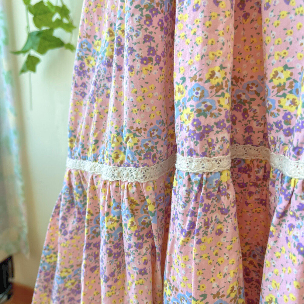 분홍색 바탕에 보랏빛 꽃무늬들이 가득한