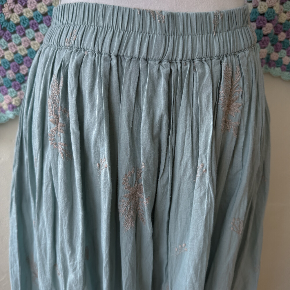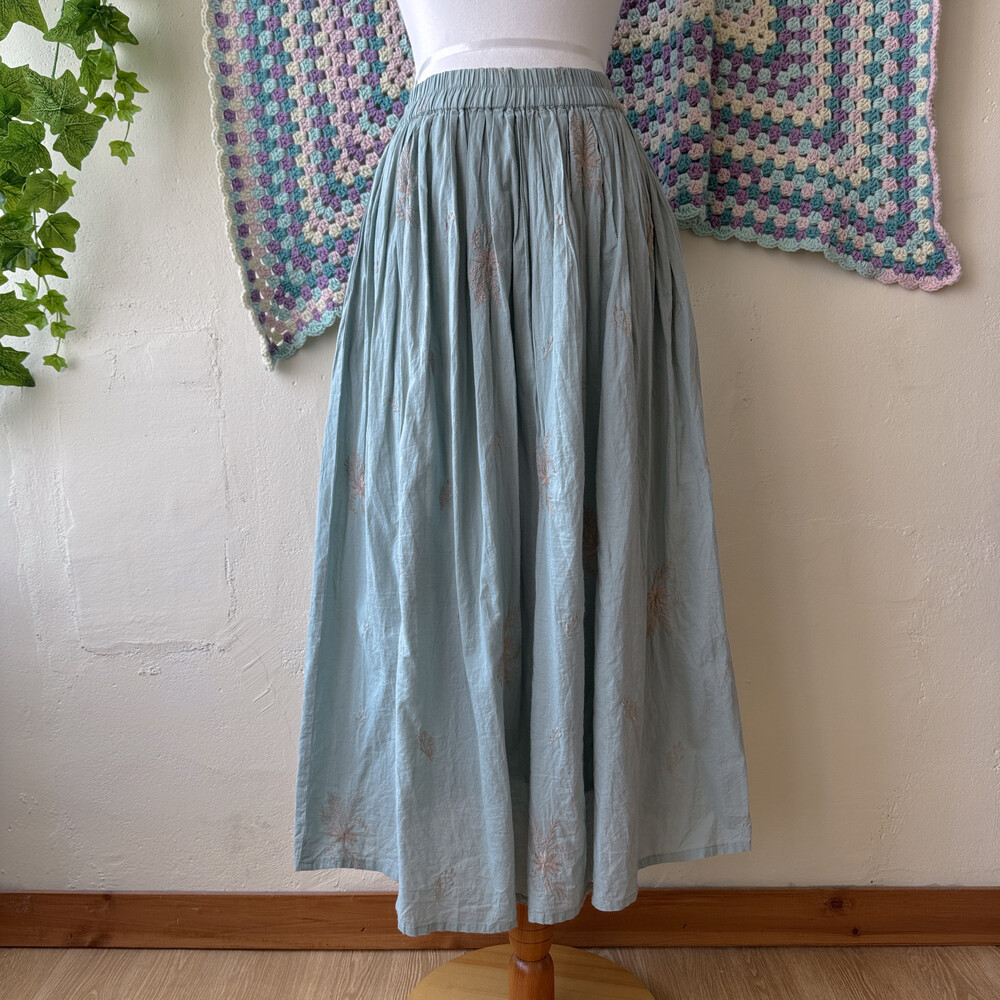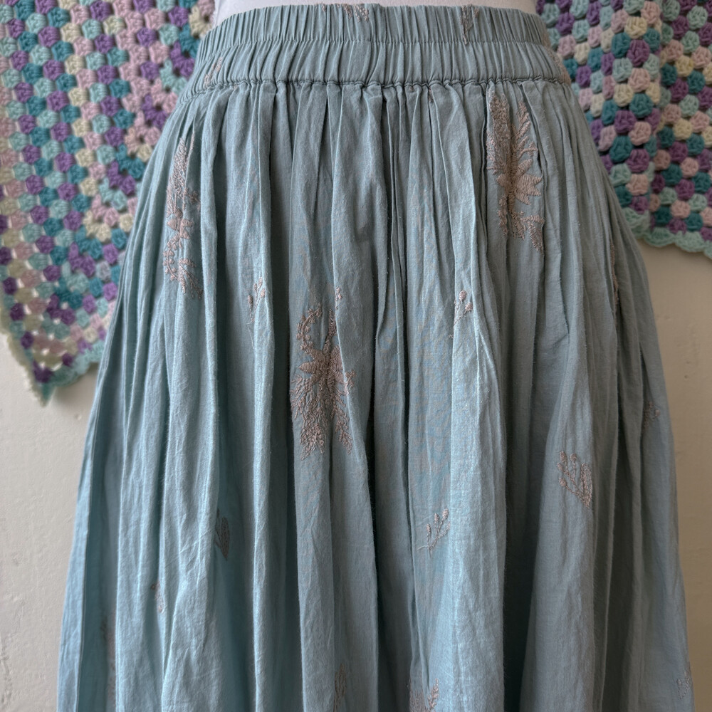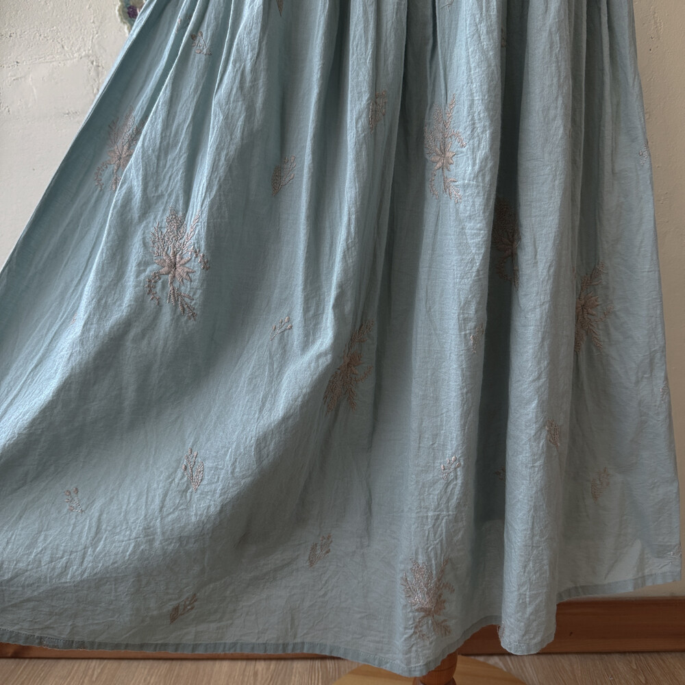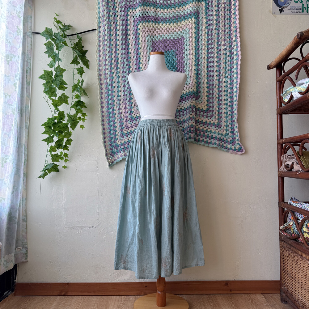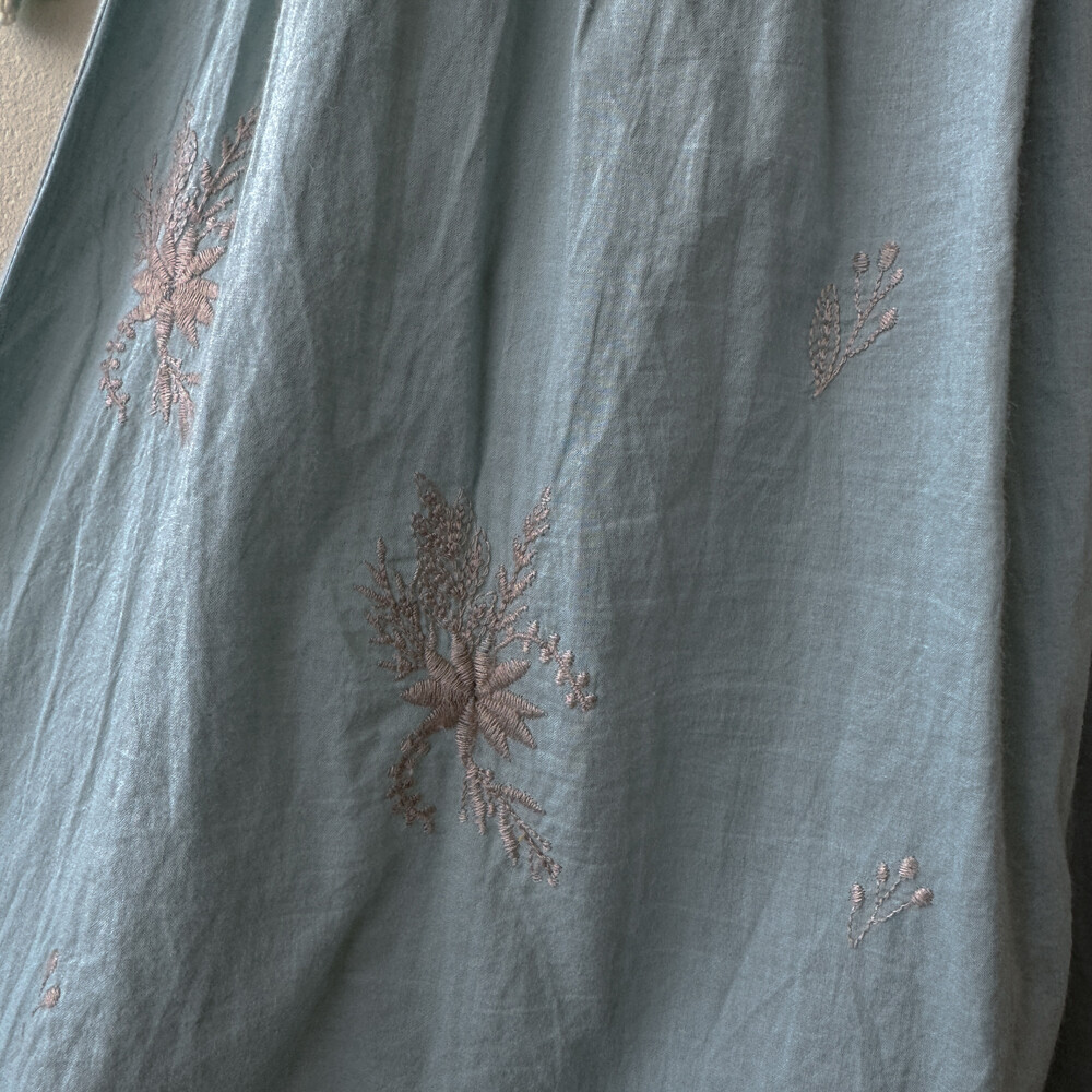 어두운 소라색감의 자수 스커트예요