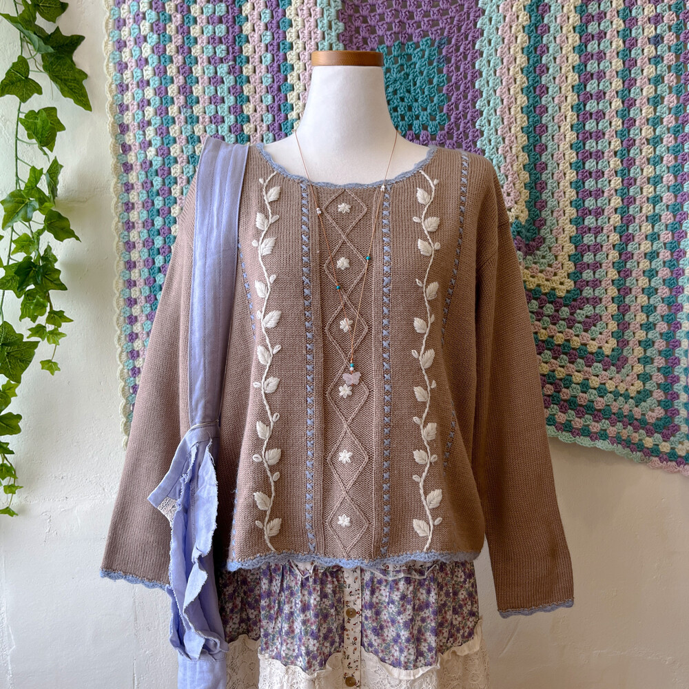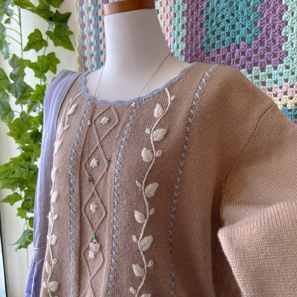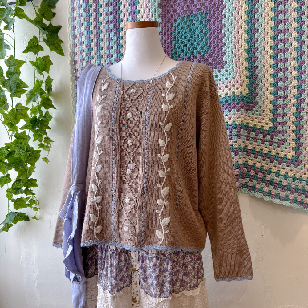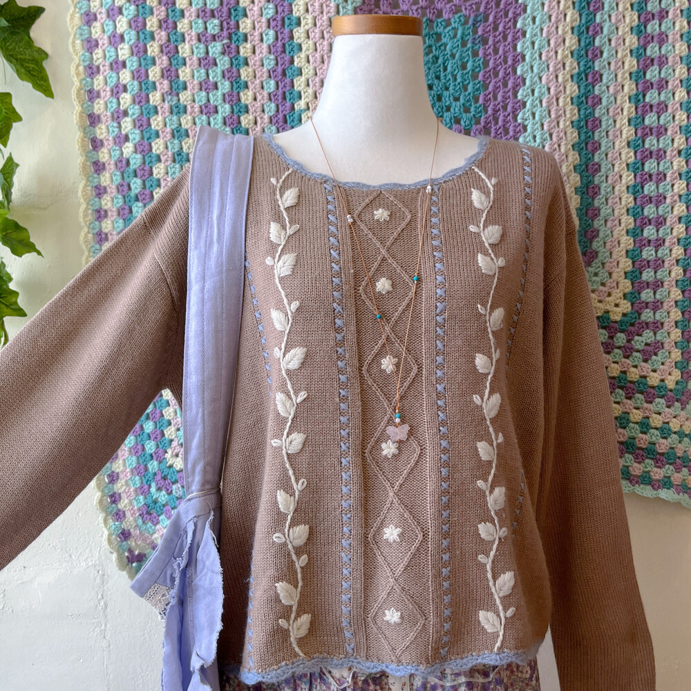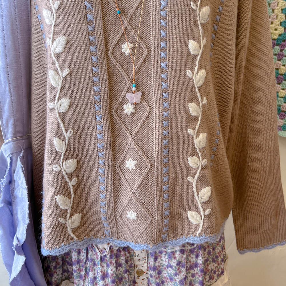 브라운 색감의 자수 니트에요