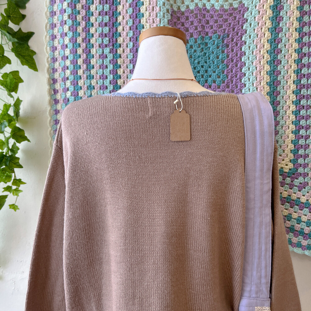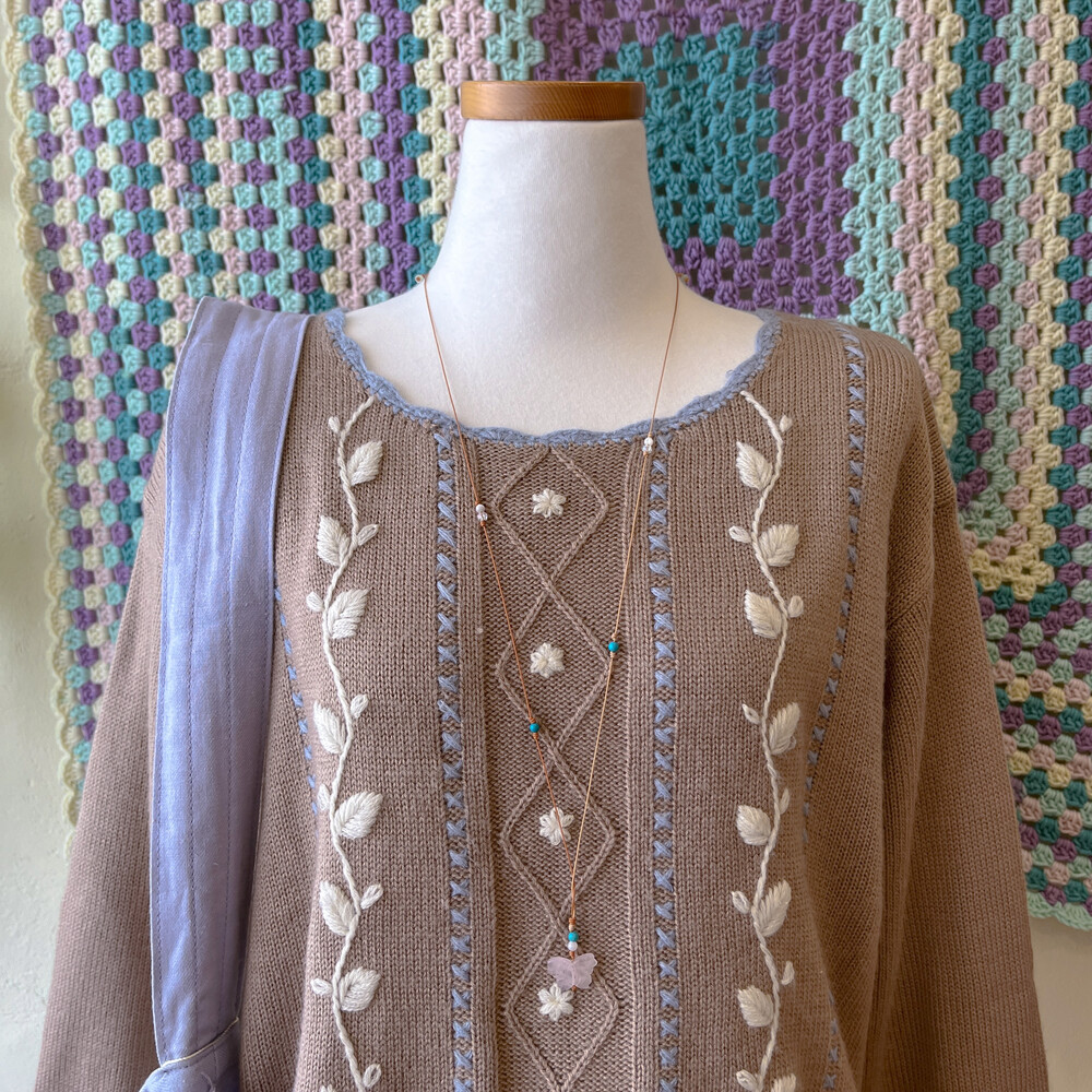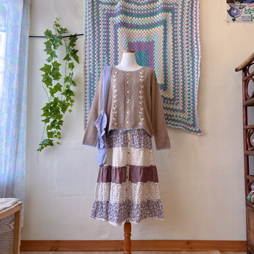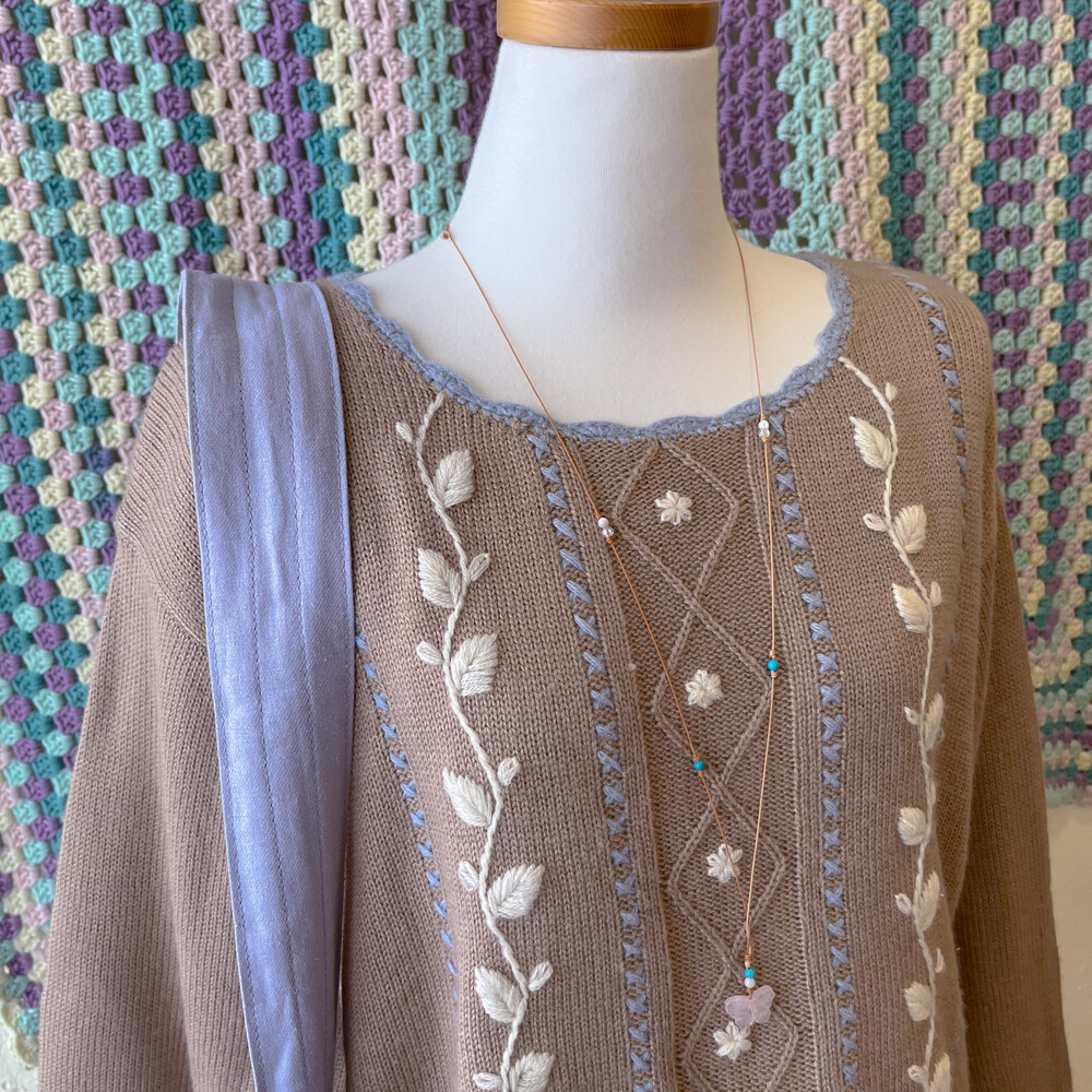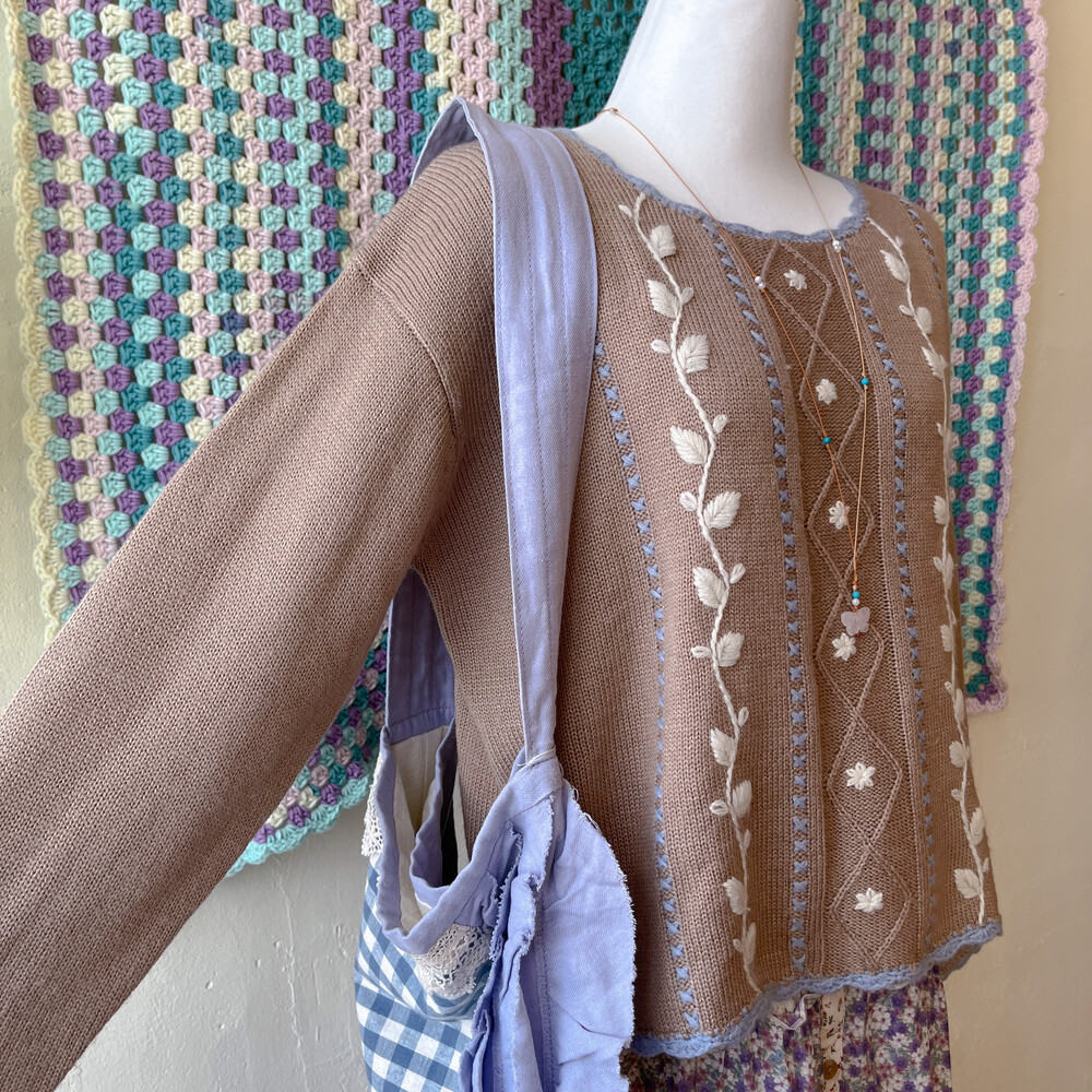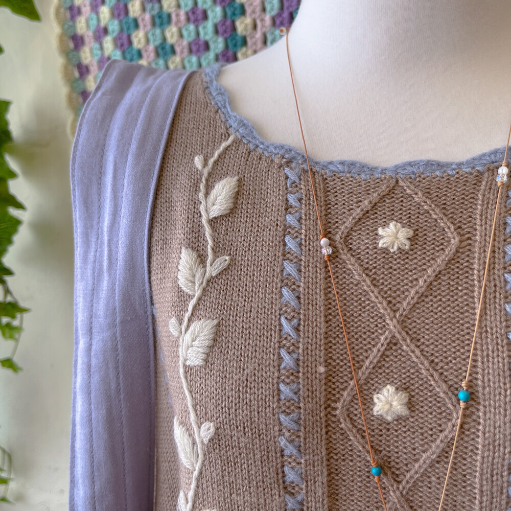 브라운 색감의 자수 니트에요