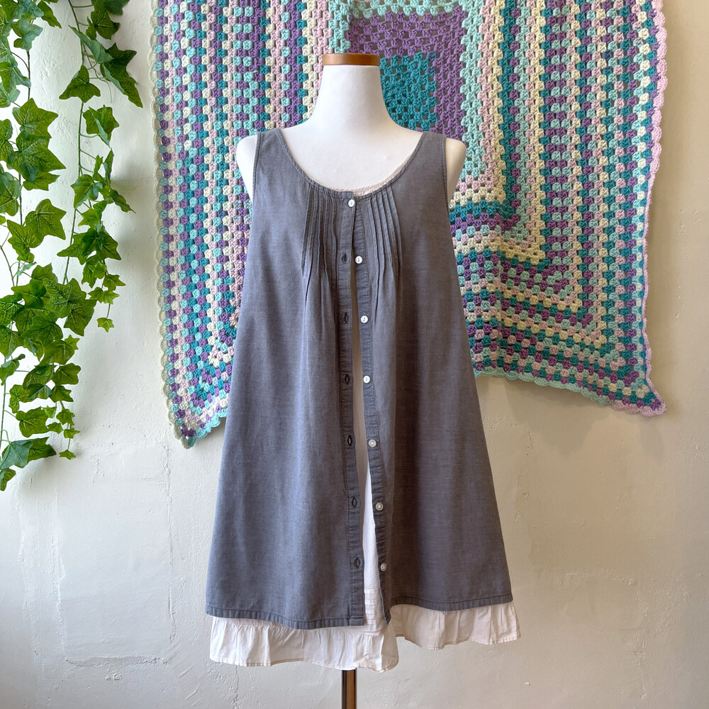 gray pintuck&frill layered tunic