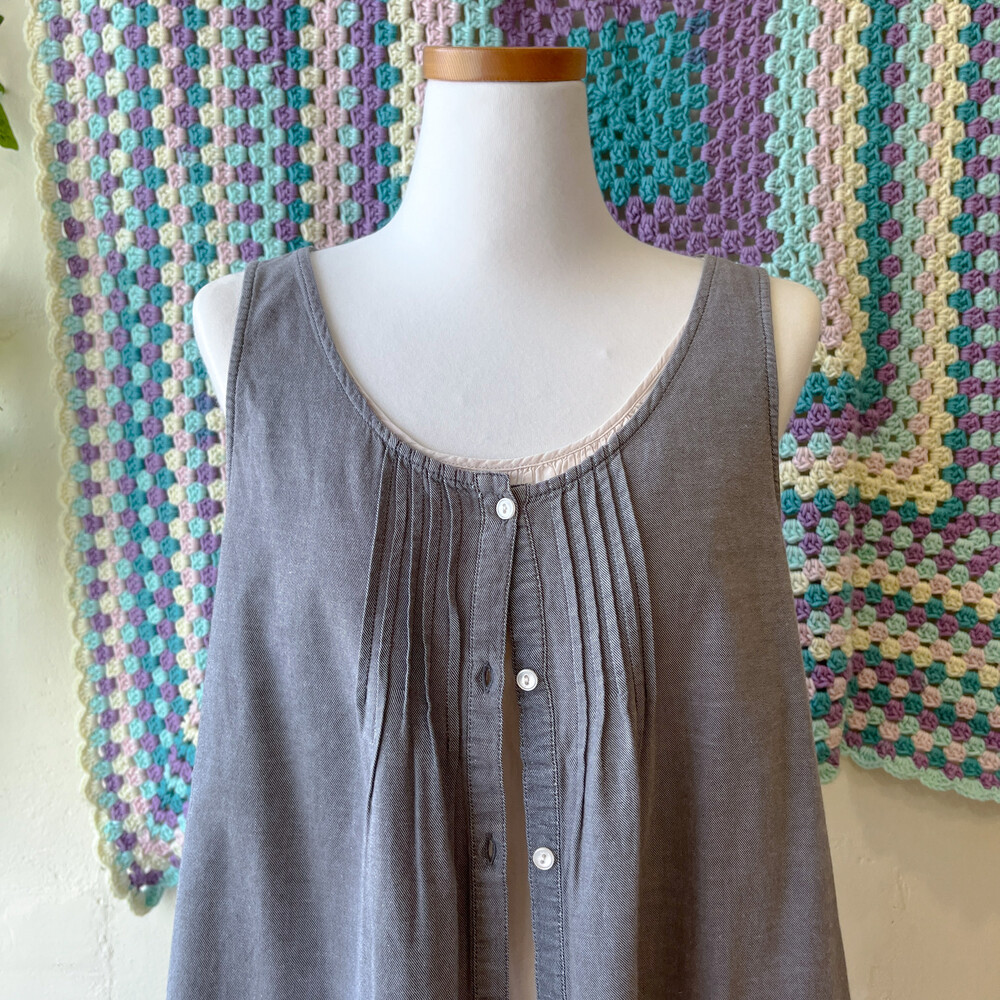회색의 민소매 바선생 튜닉이에요