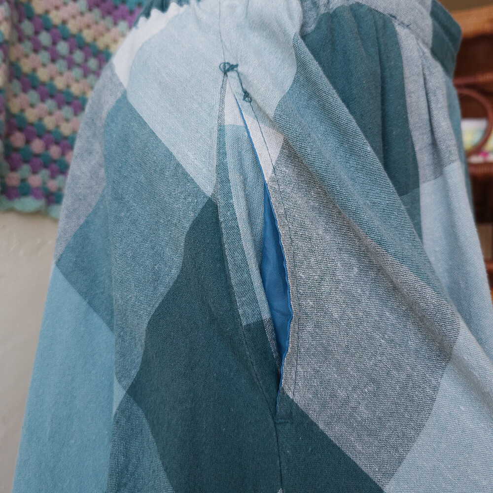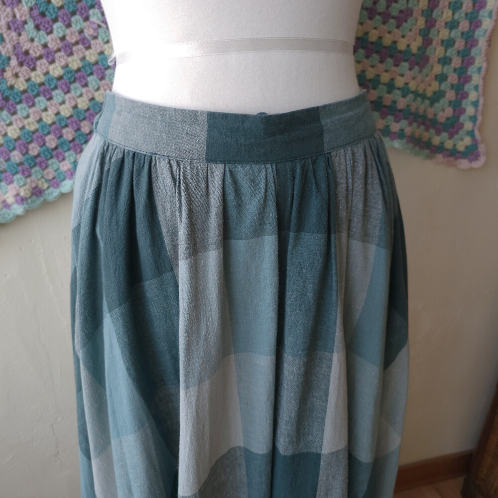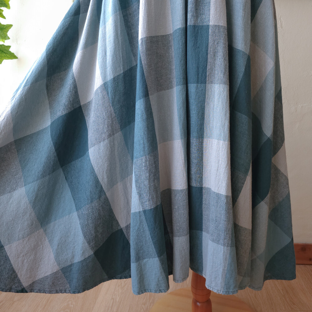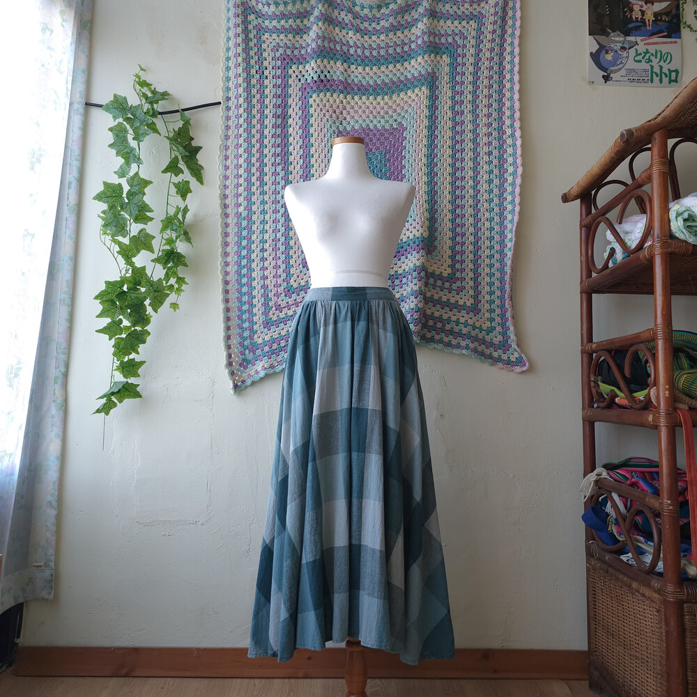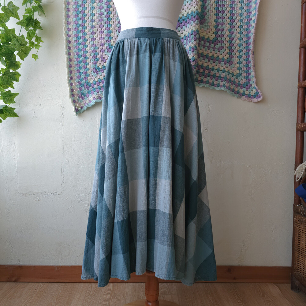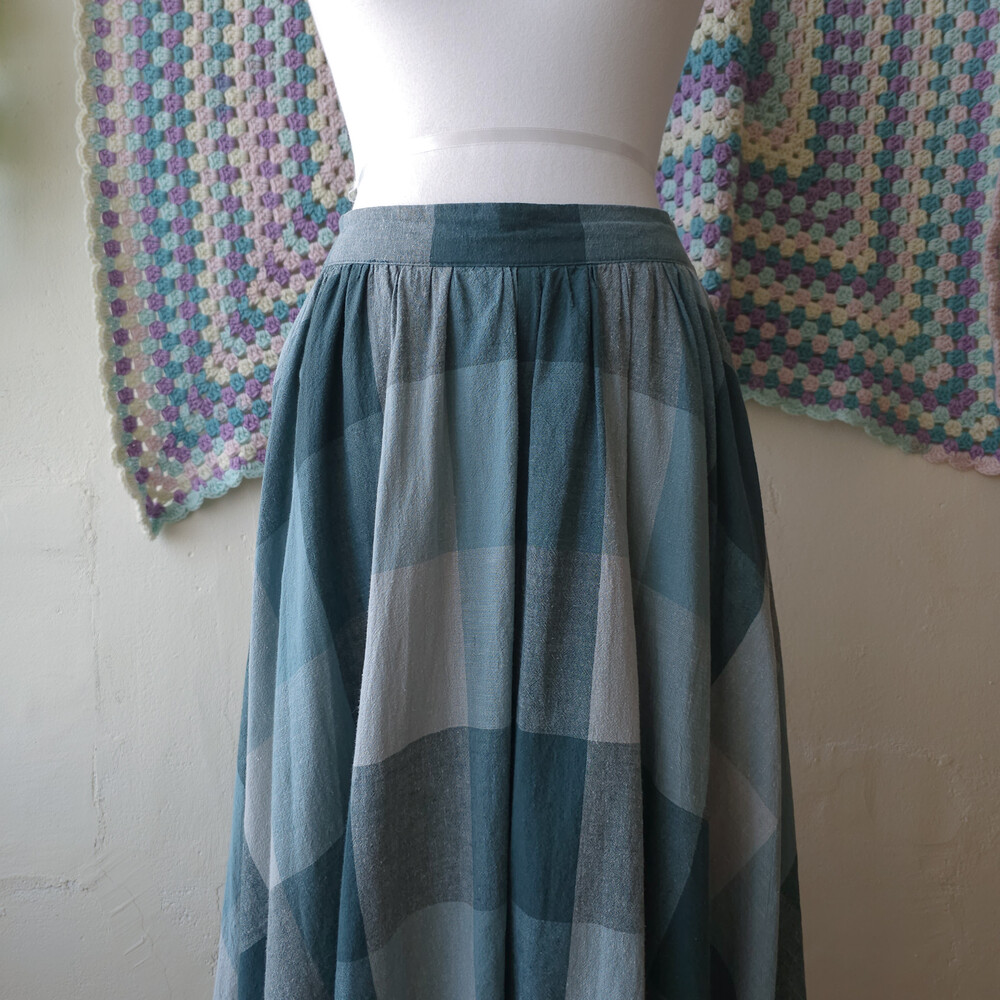 bluish green check A-line sk