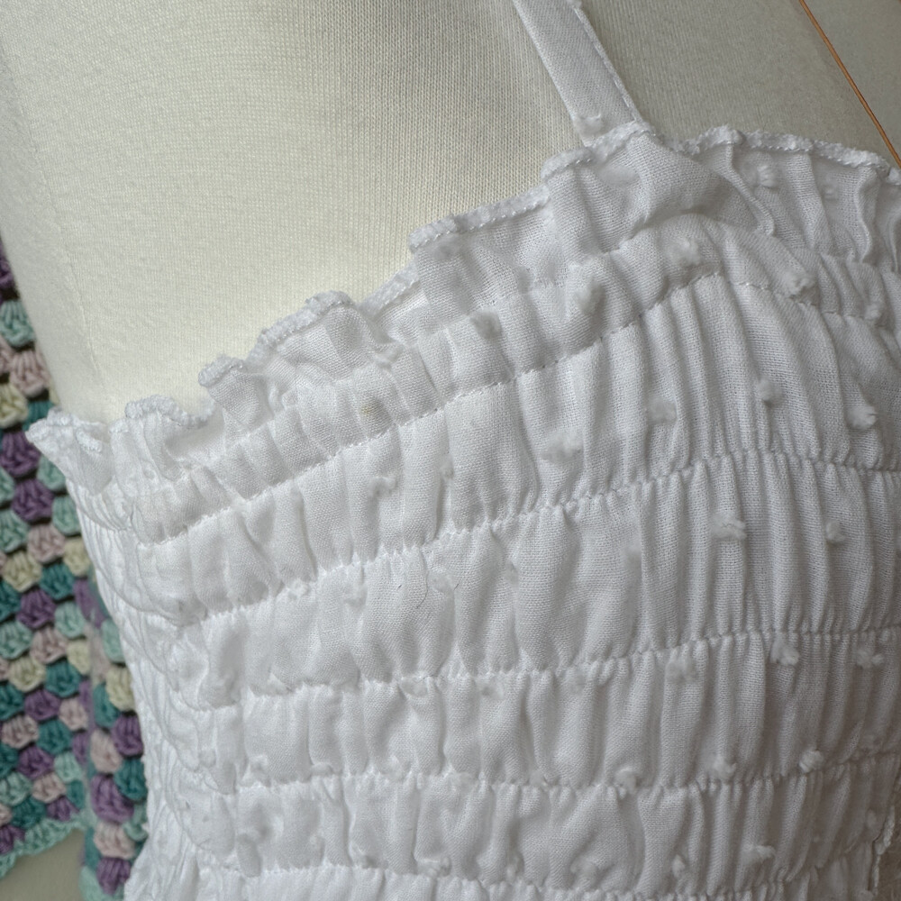 화이트 색감의 아일렛 끈원피스예요