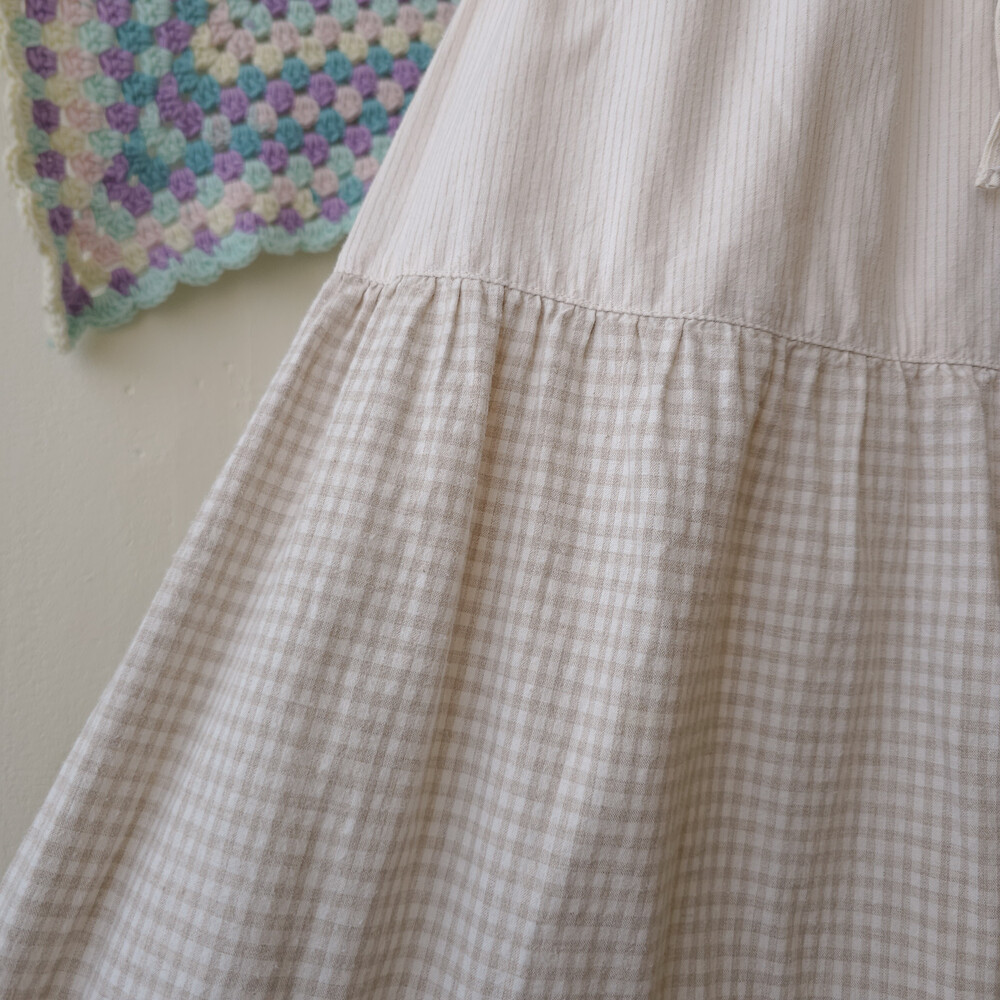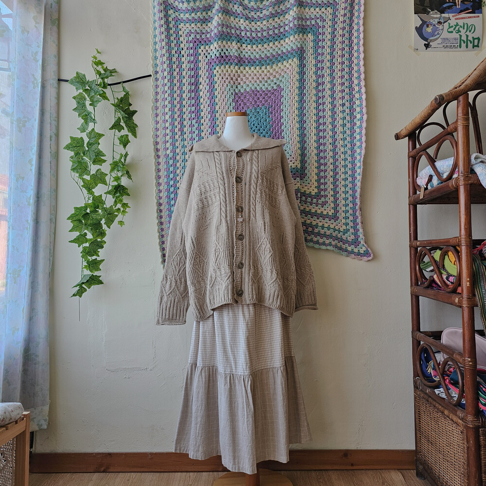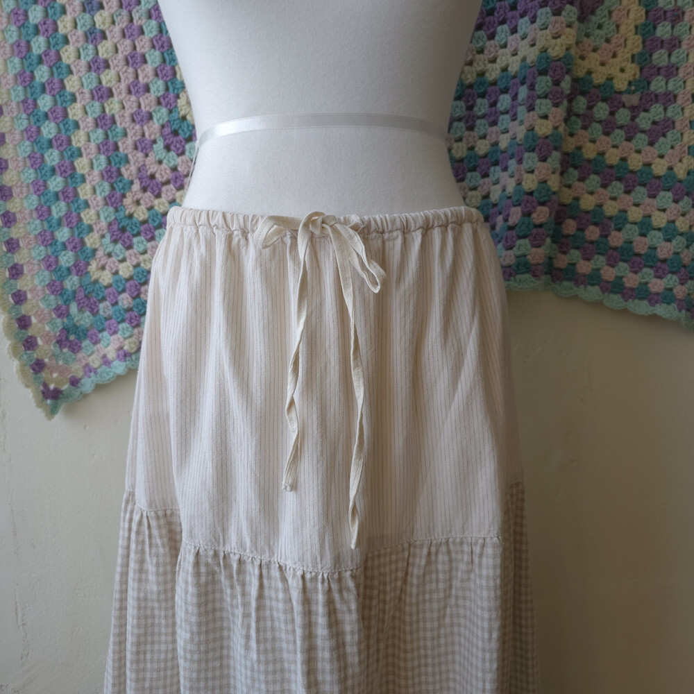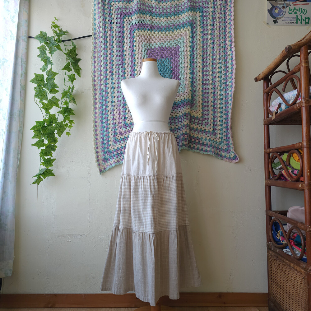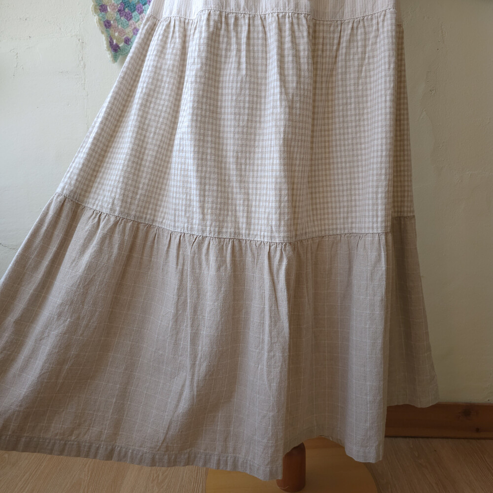 베이지, 오트밀 색감의 패치워크 스커트예요