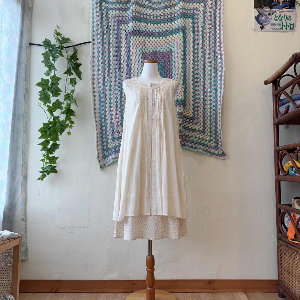 아이보리 색감의 민소매 코튼 튜닉원피스예요