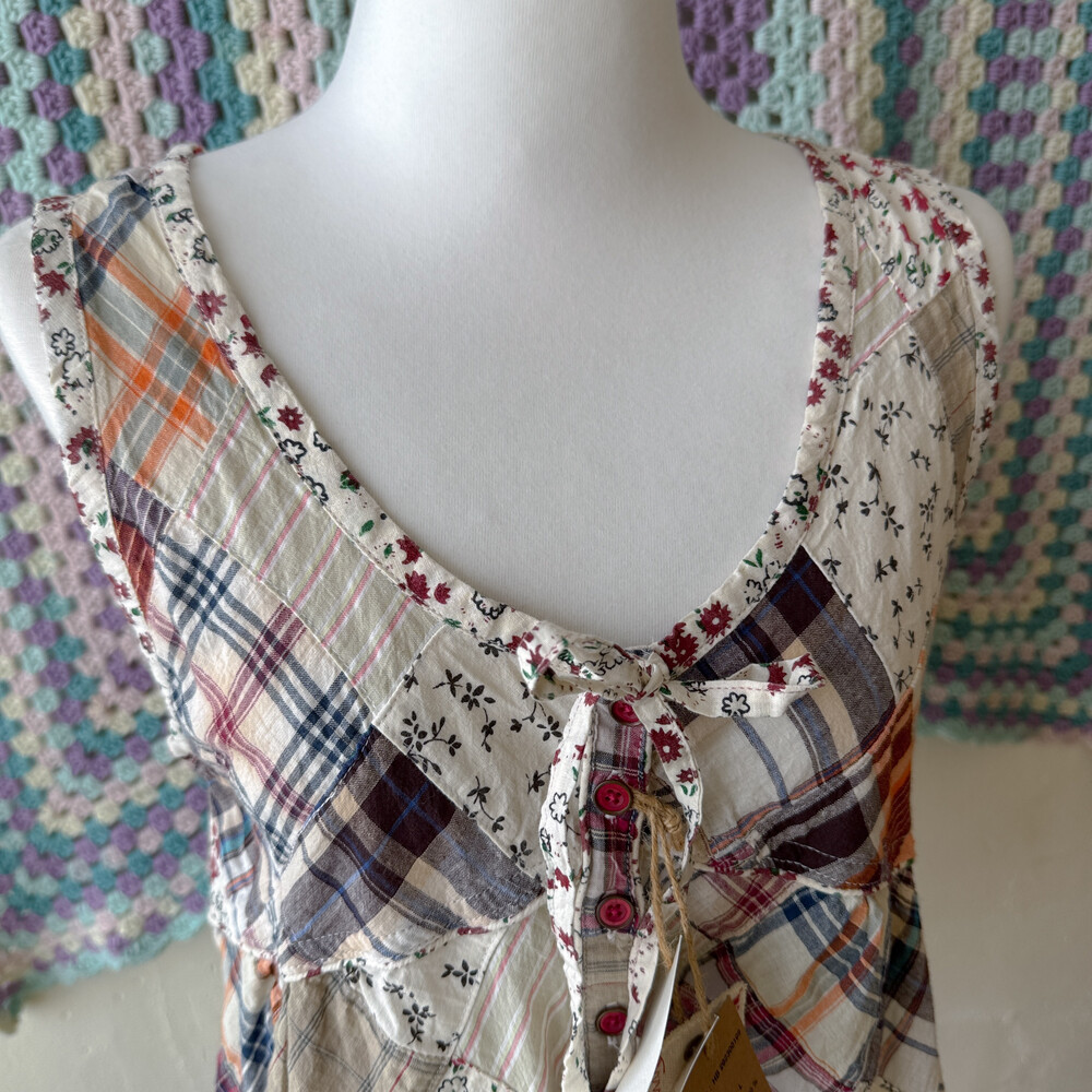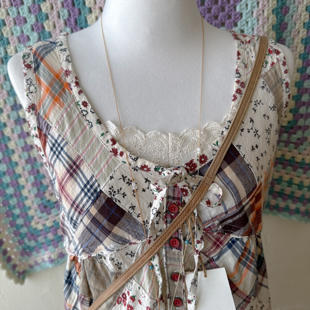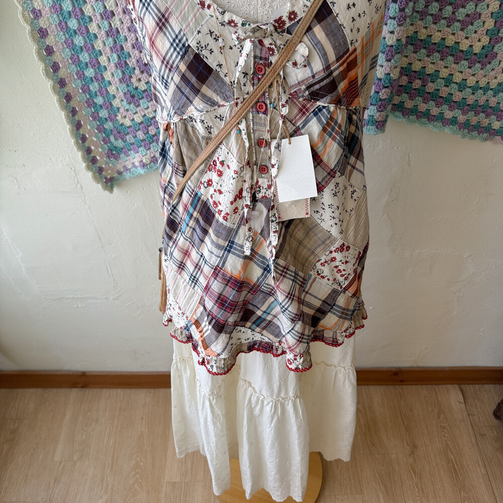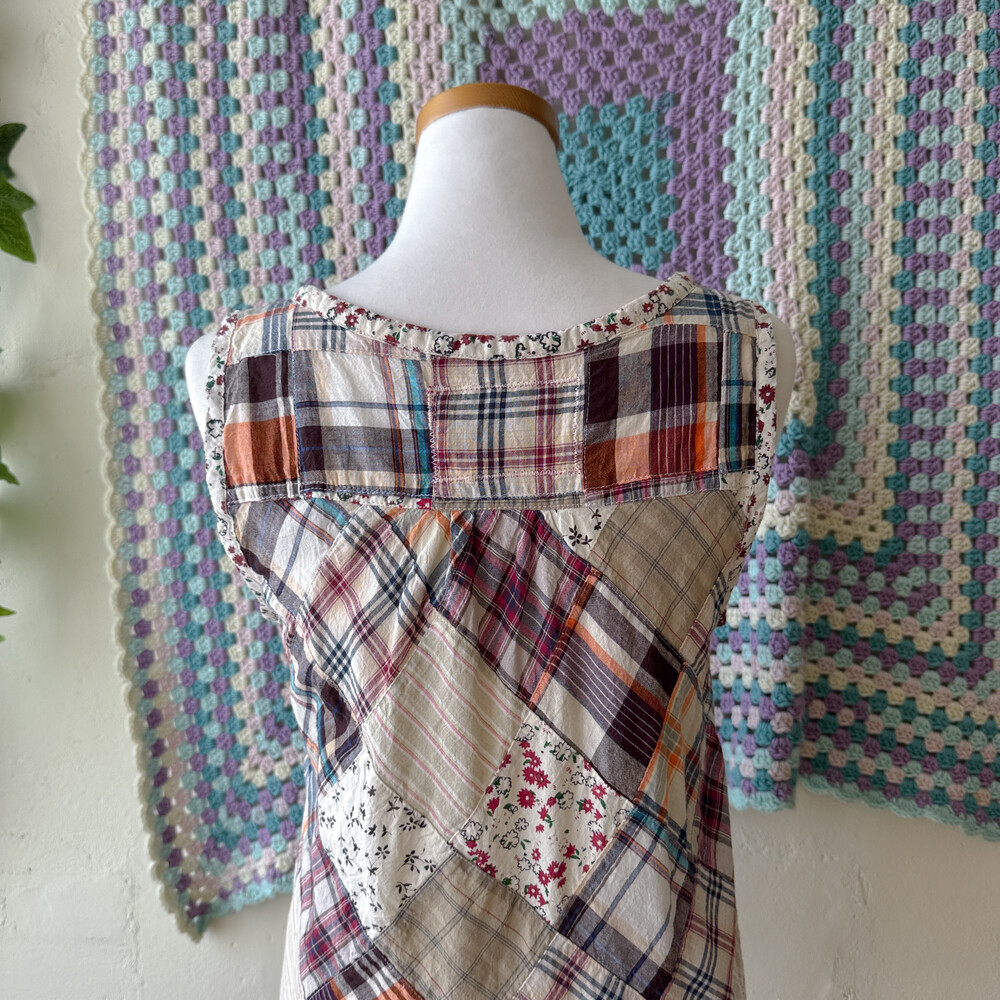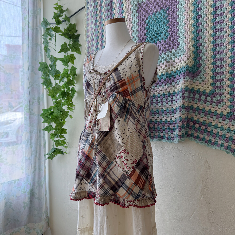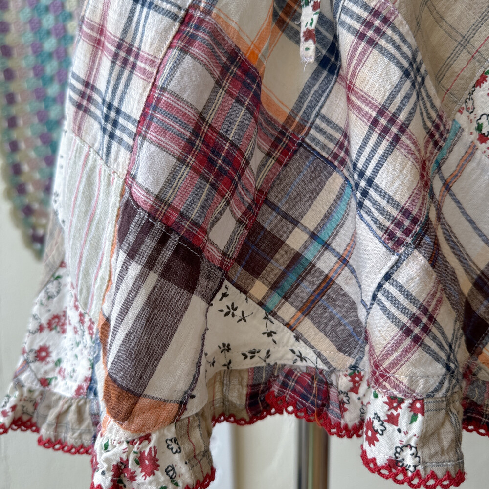 웜한 색감 조합의 패치워크 블라우스예요