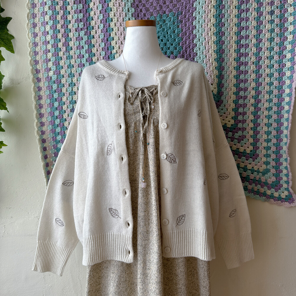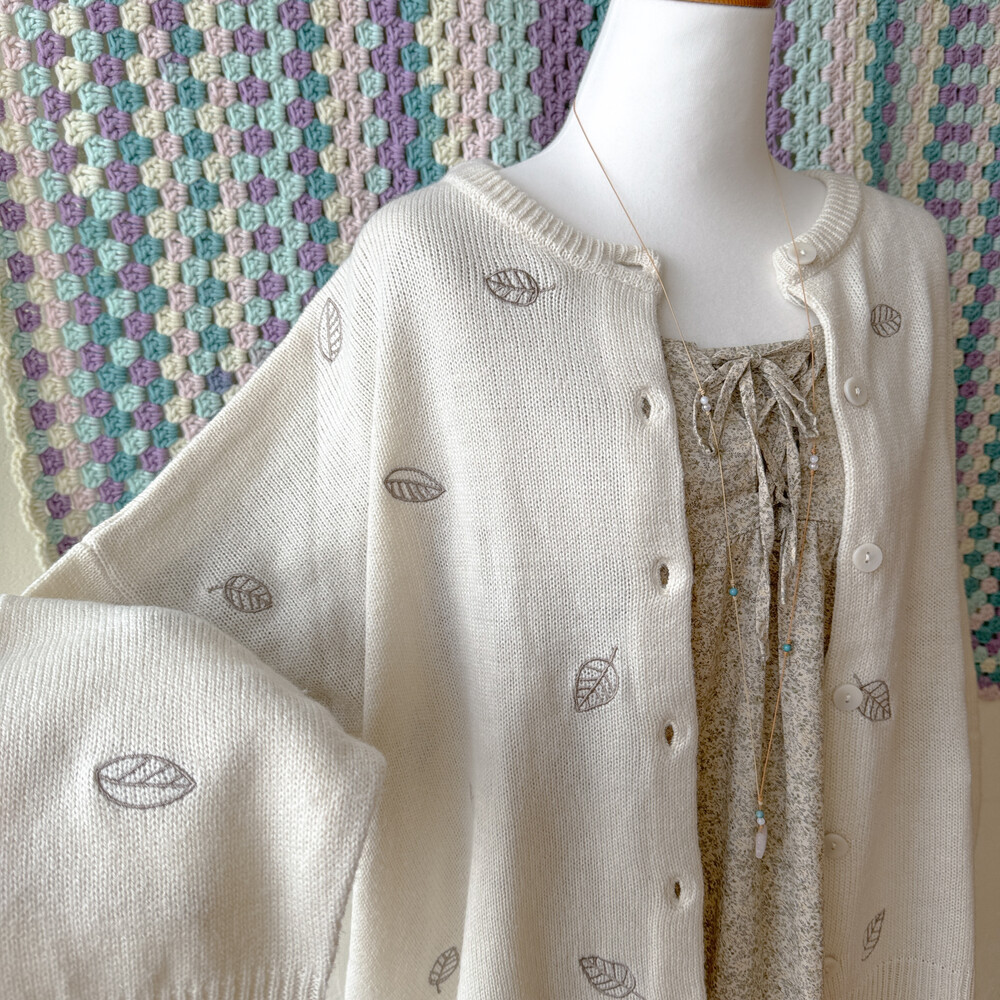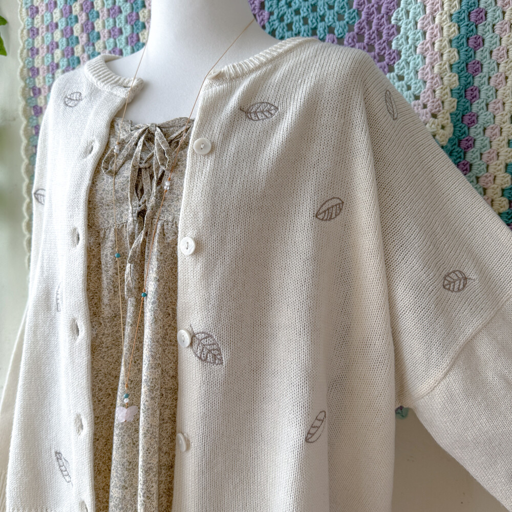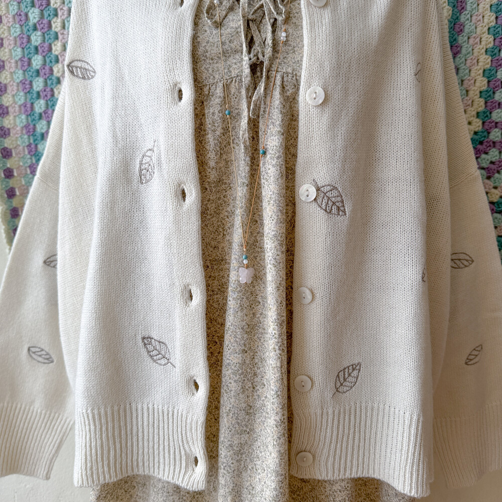 나뭇잎 자수가 들어간 아이보리 가디건이에요