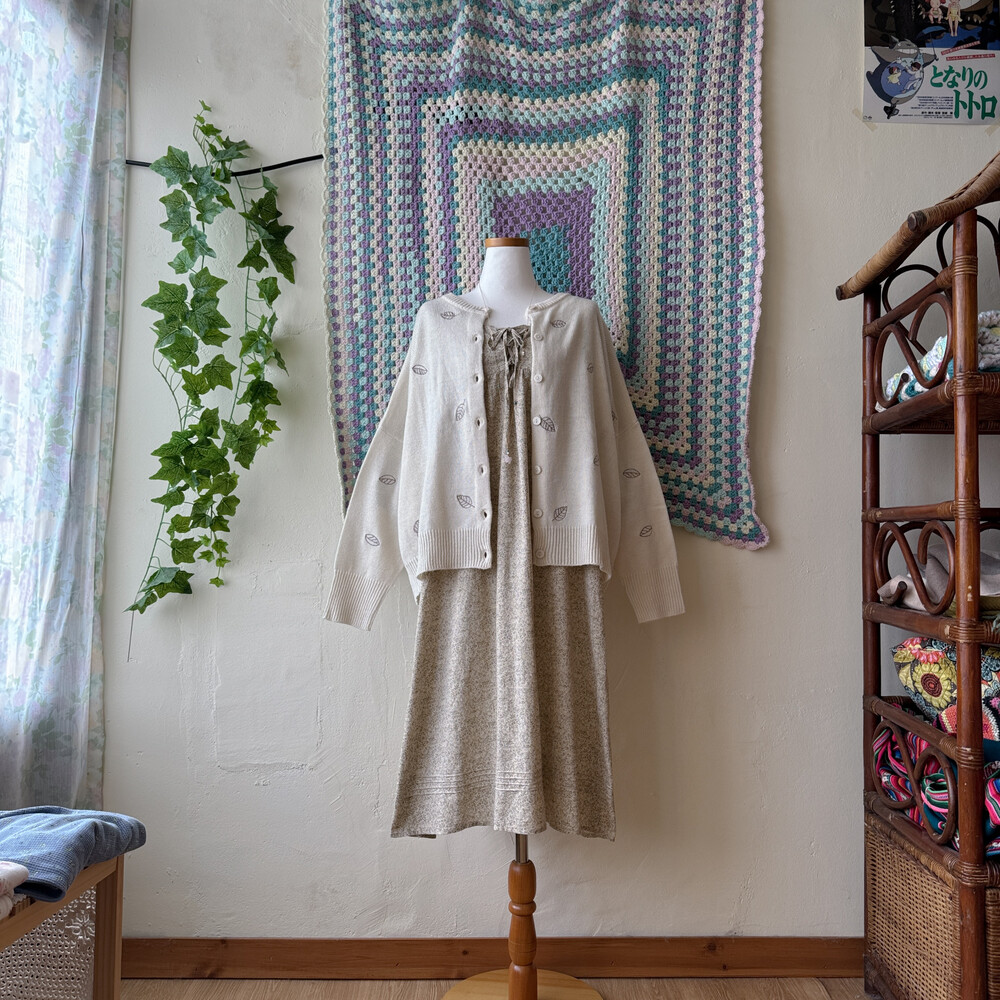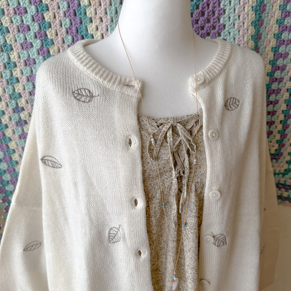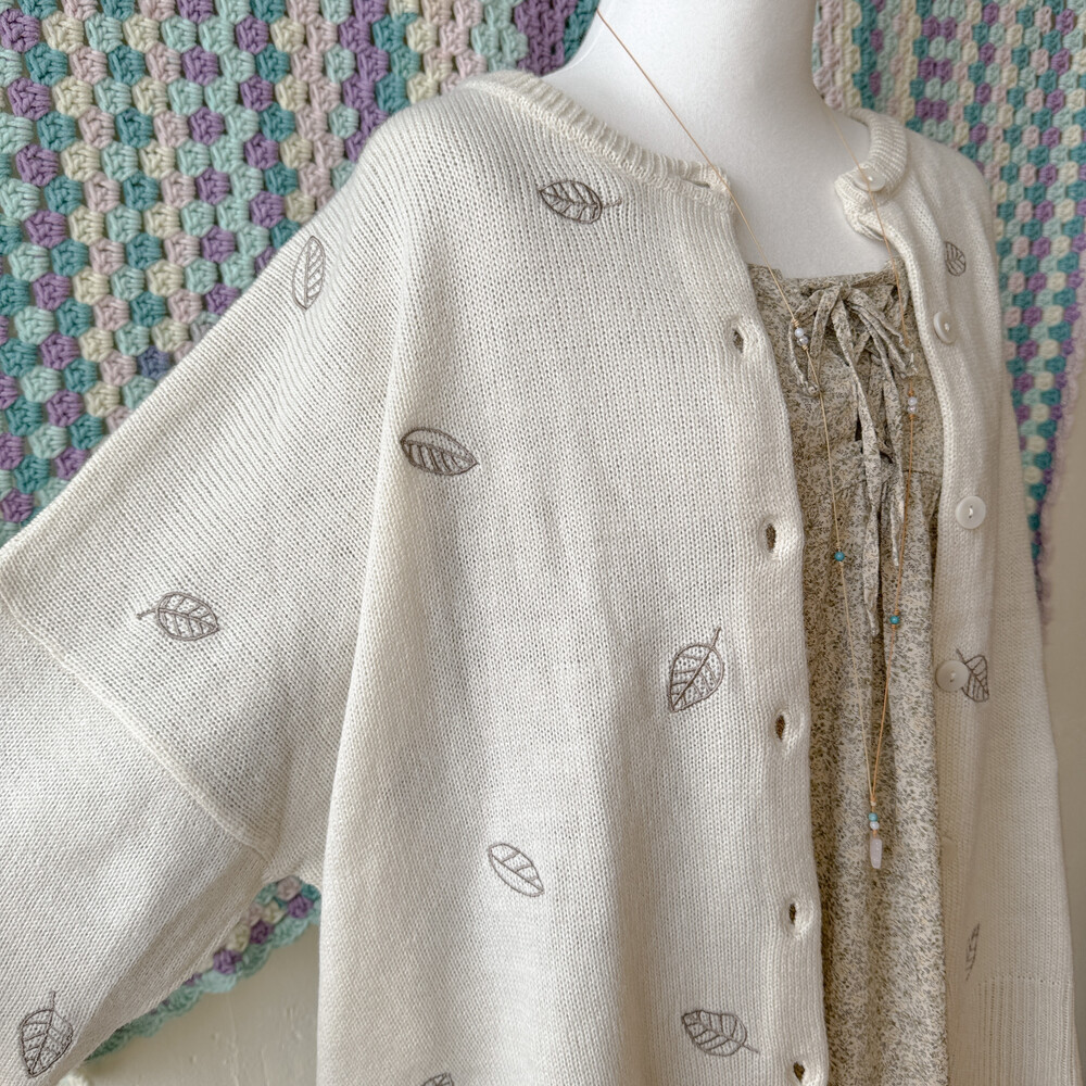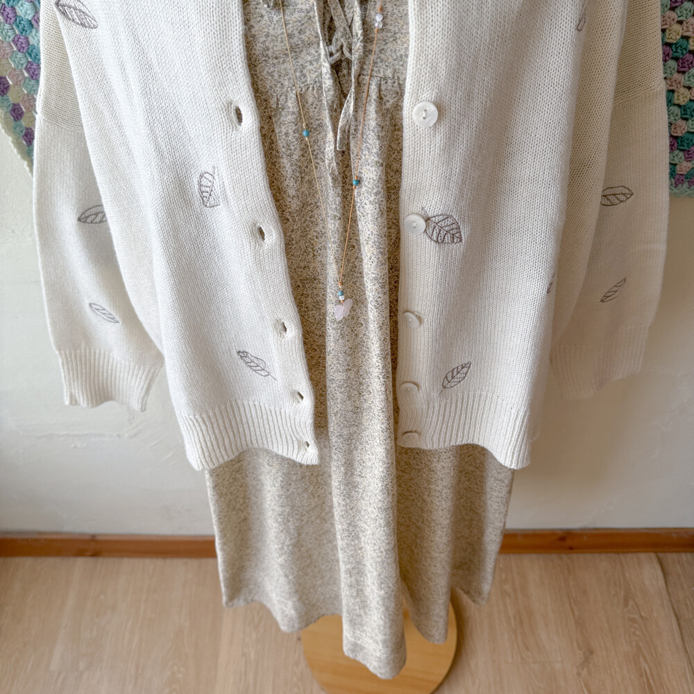 나뭇잎 자수가 들어간 아이보리 가디건이에요