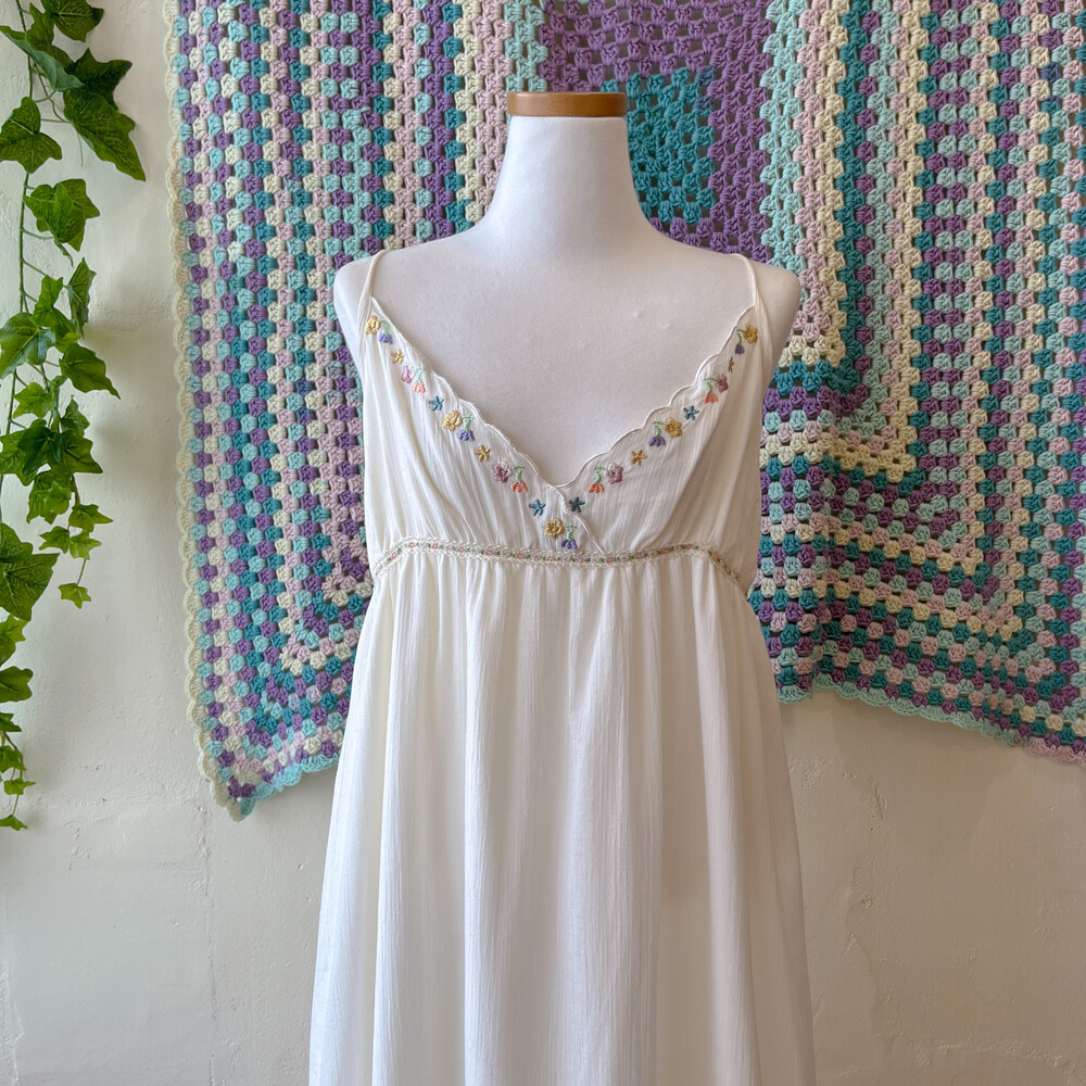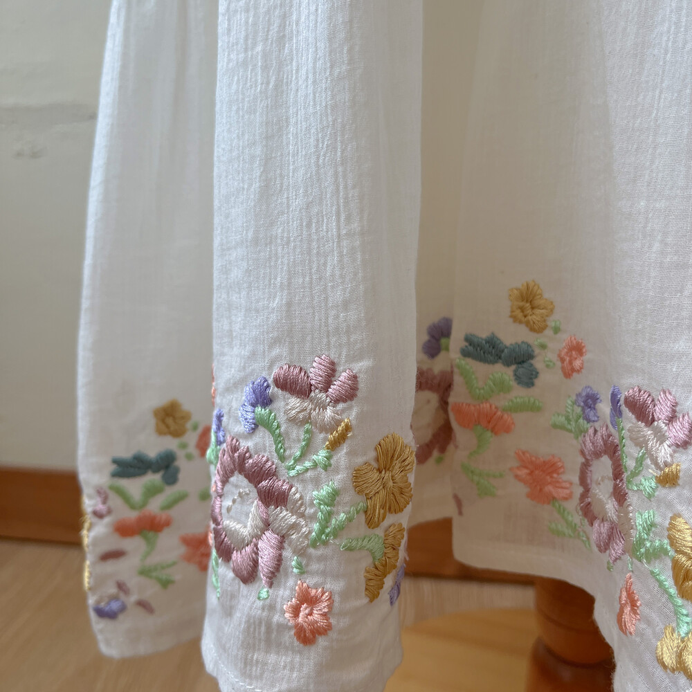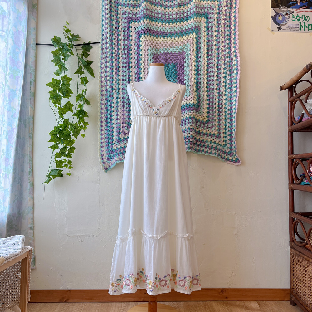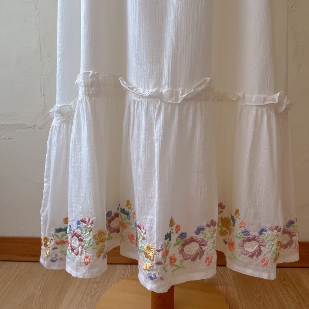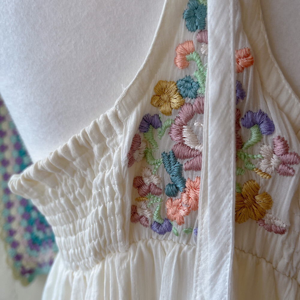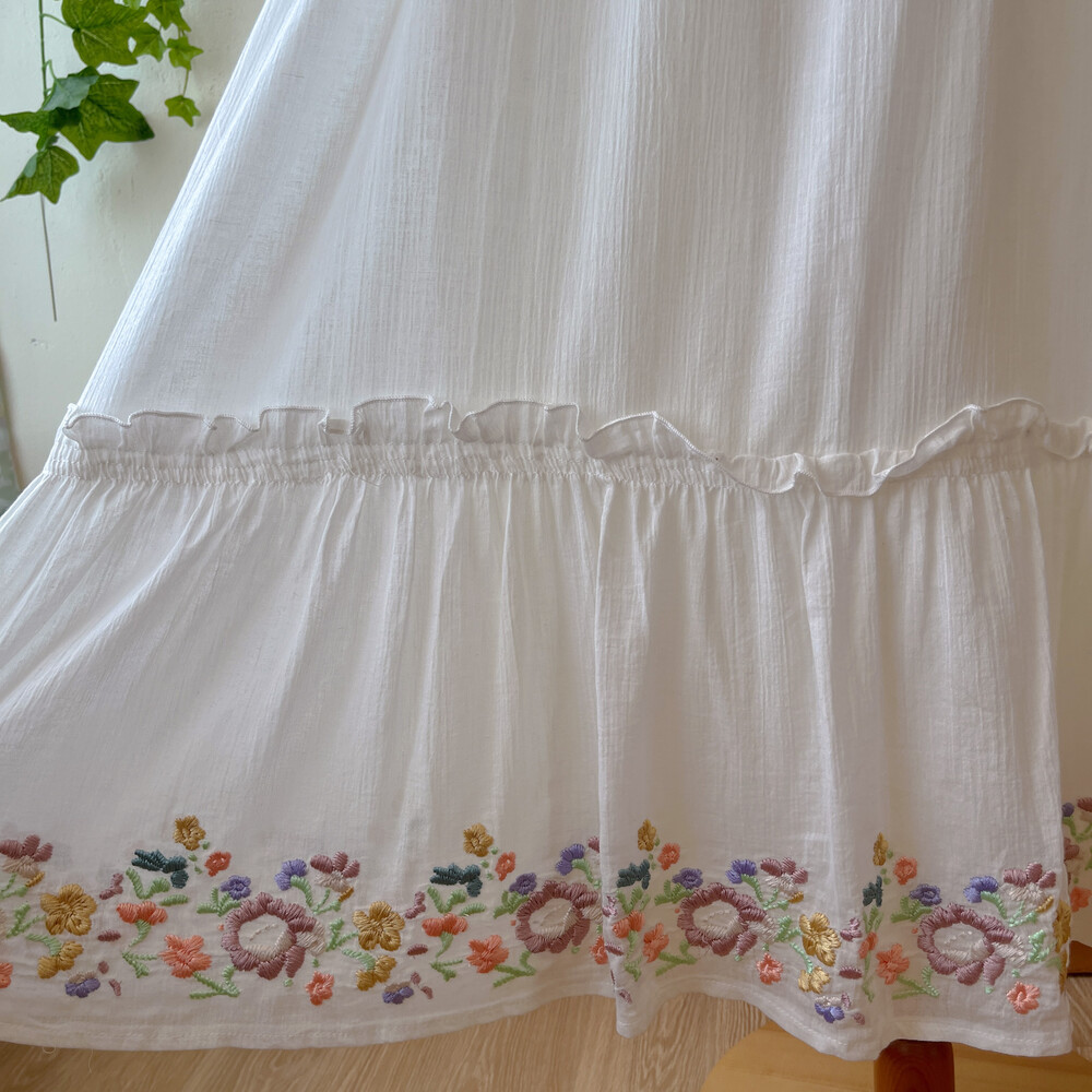 가슴 밑단 자수 포인트의 코튼 끈원피스예요