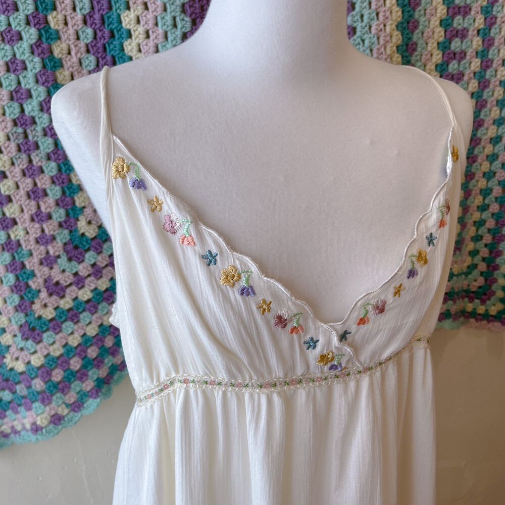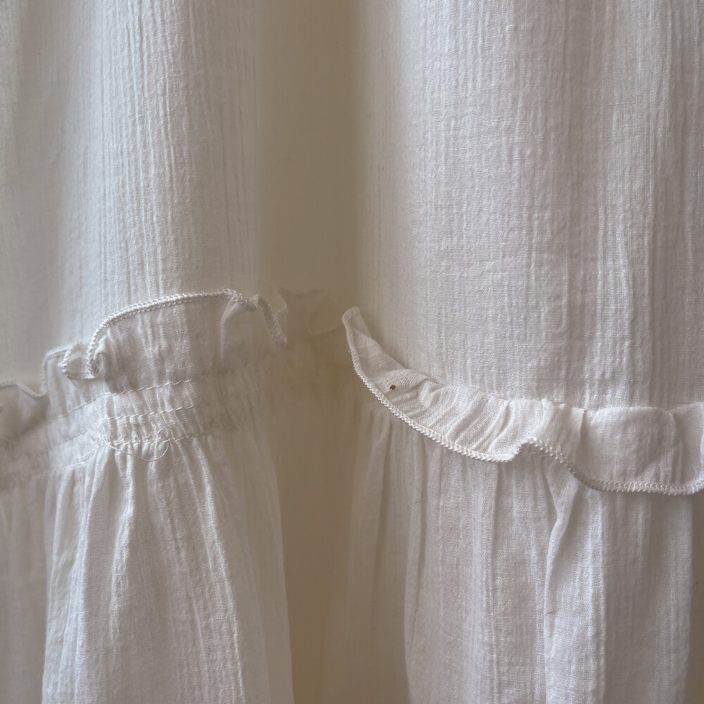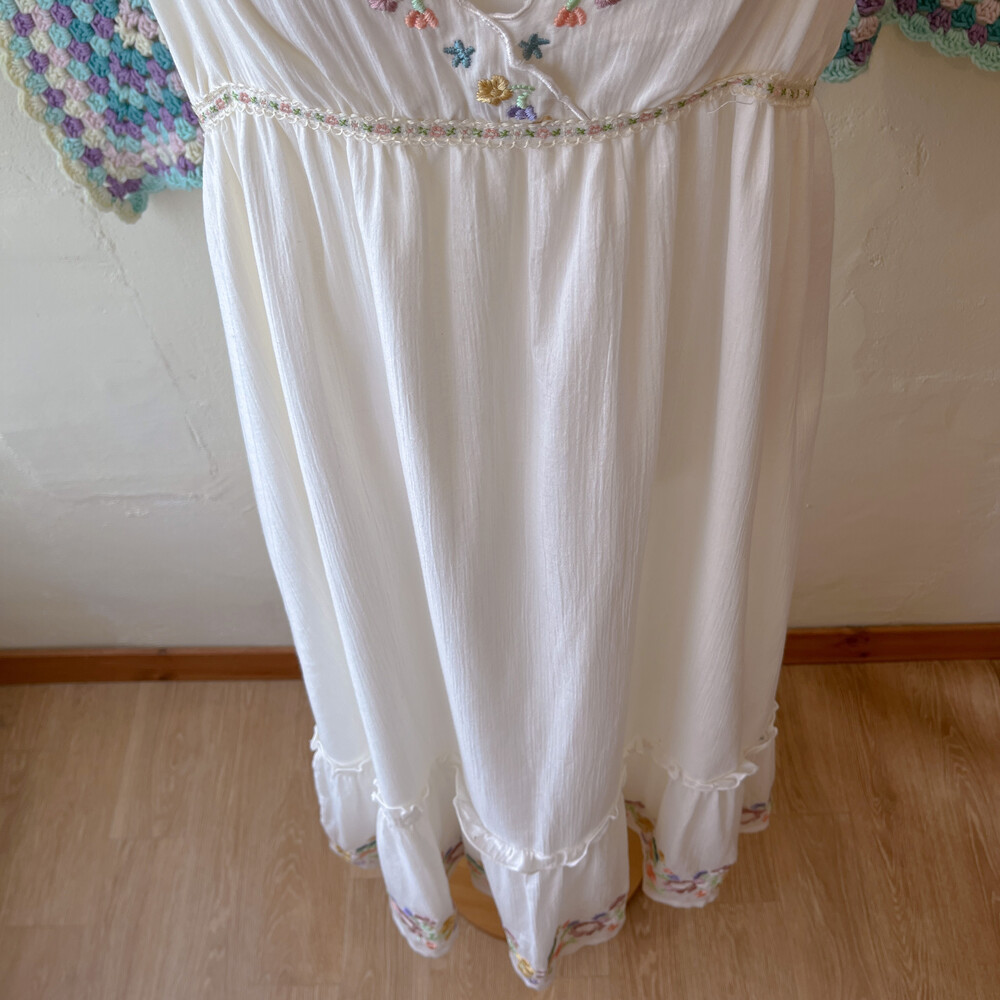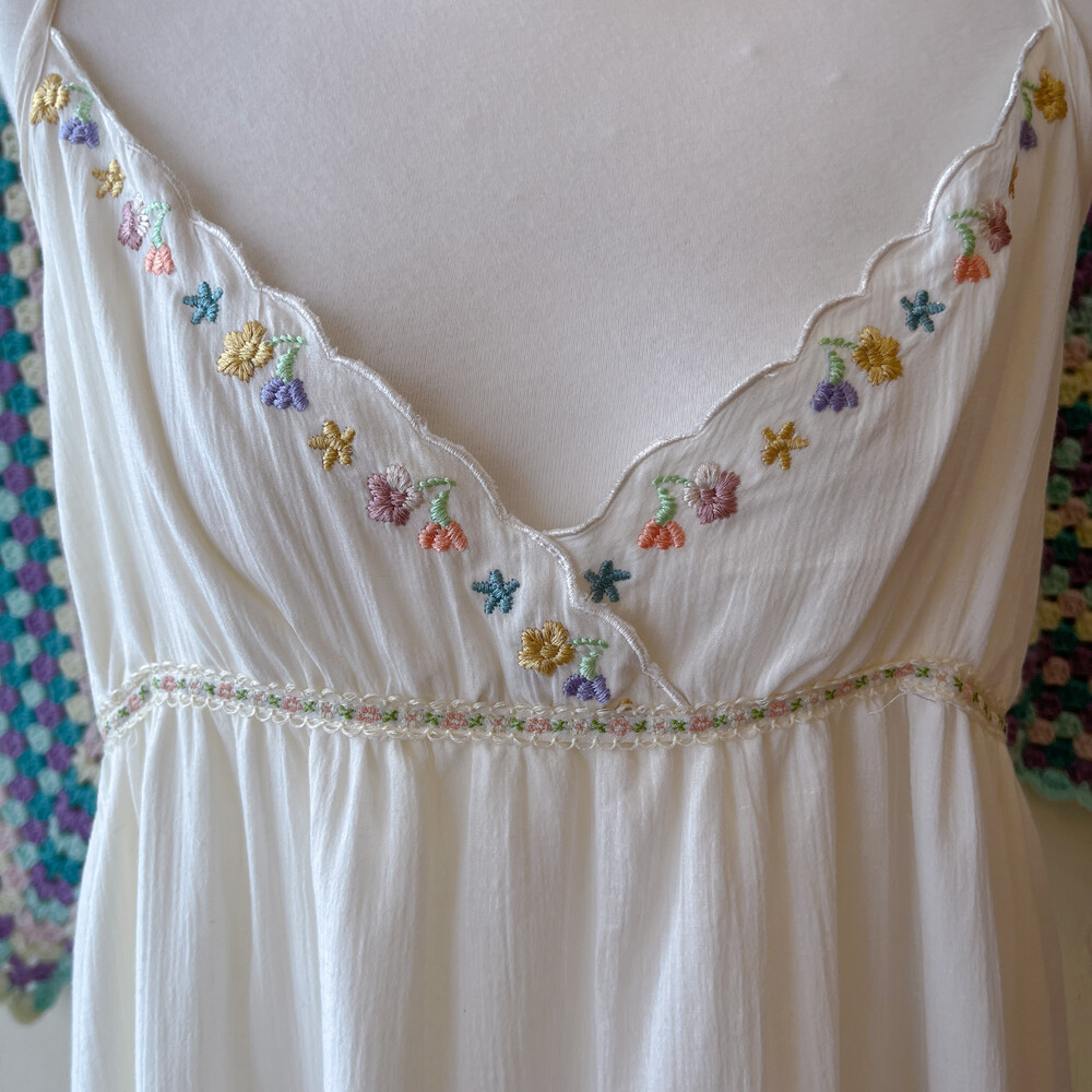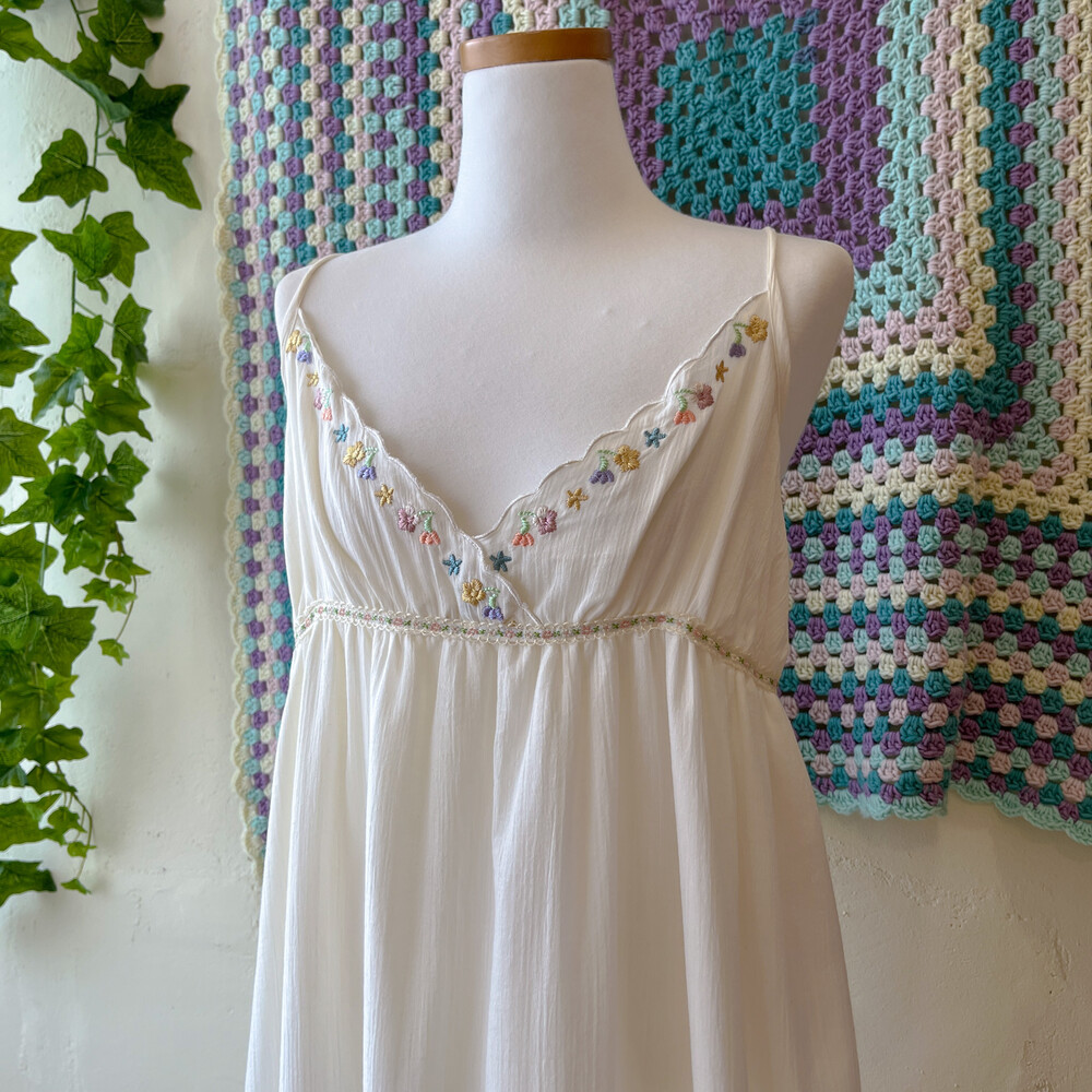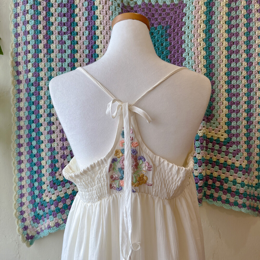 가슴 밑단 자수 포인트의 코튼 끈원피스예요
