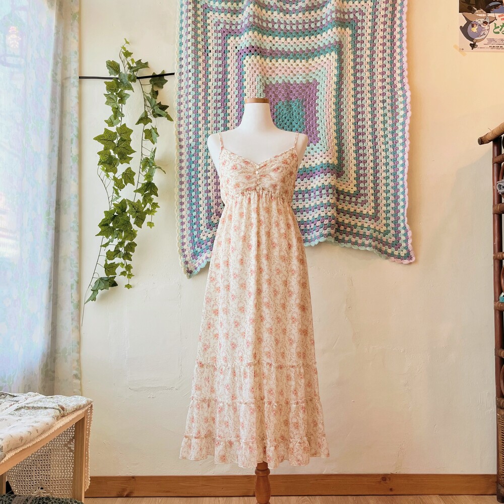 레스트 로즈의 잔꽃 쉬폰 끈원피스예요