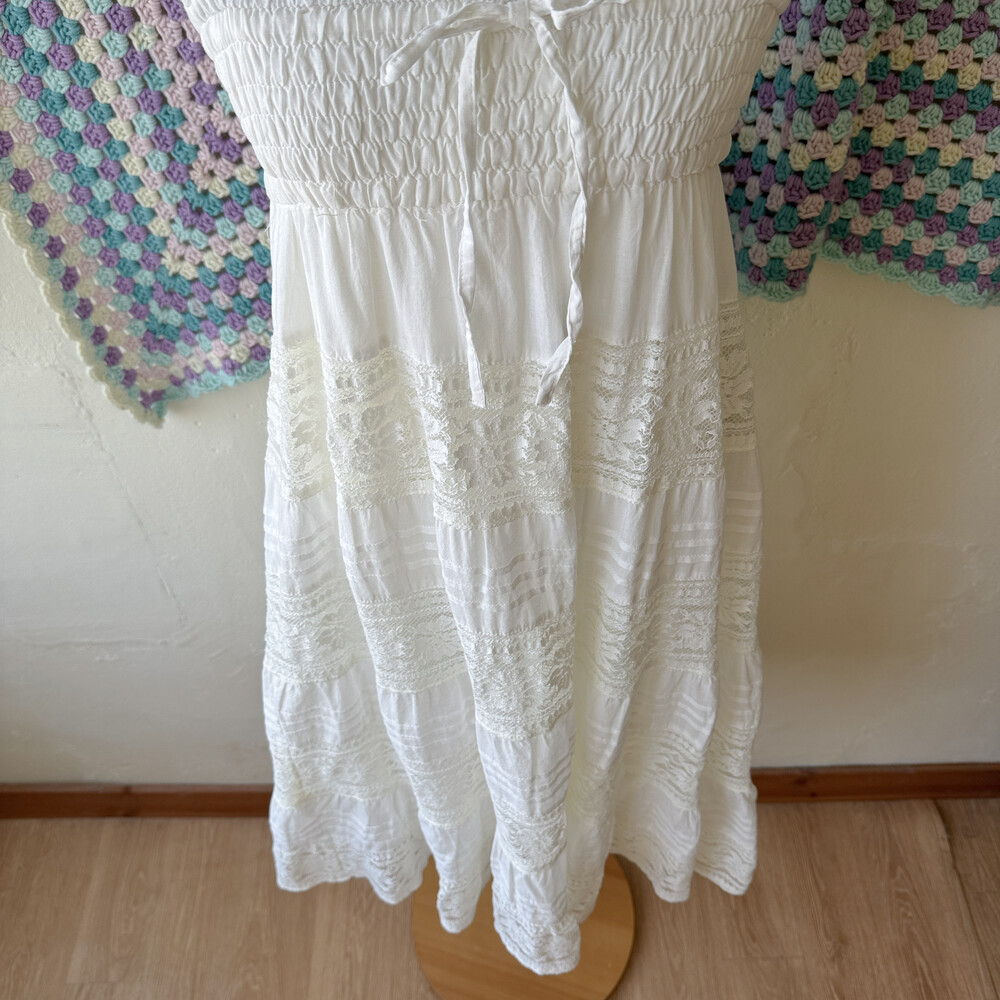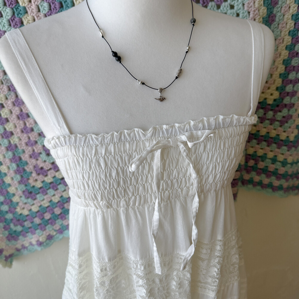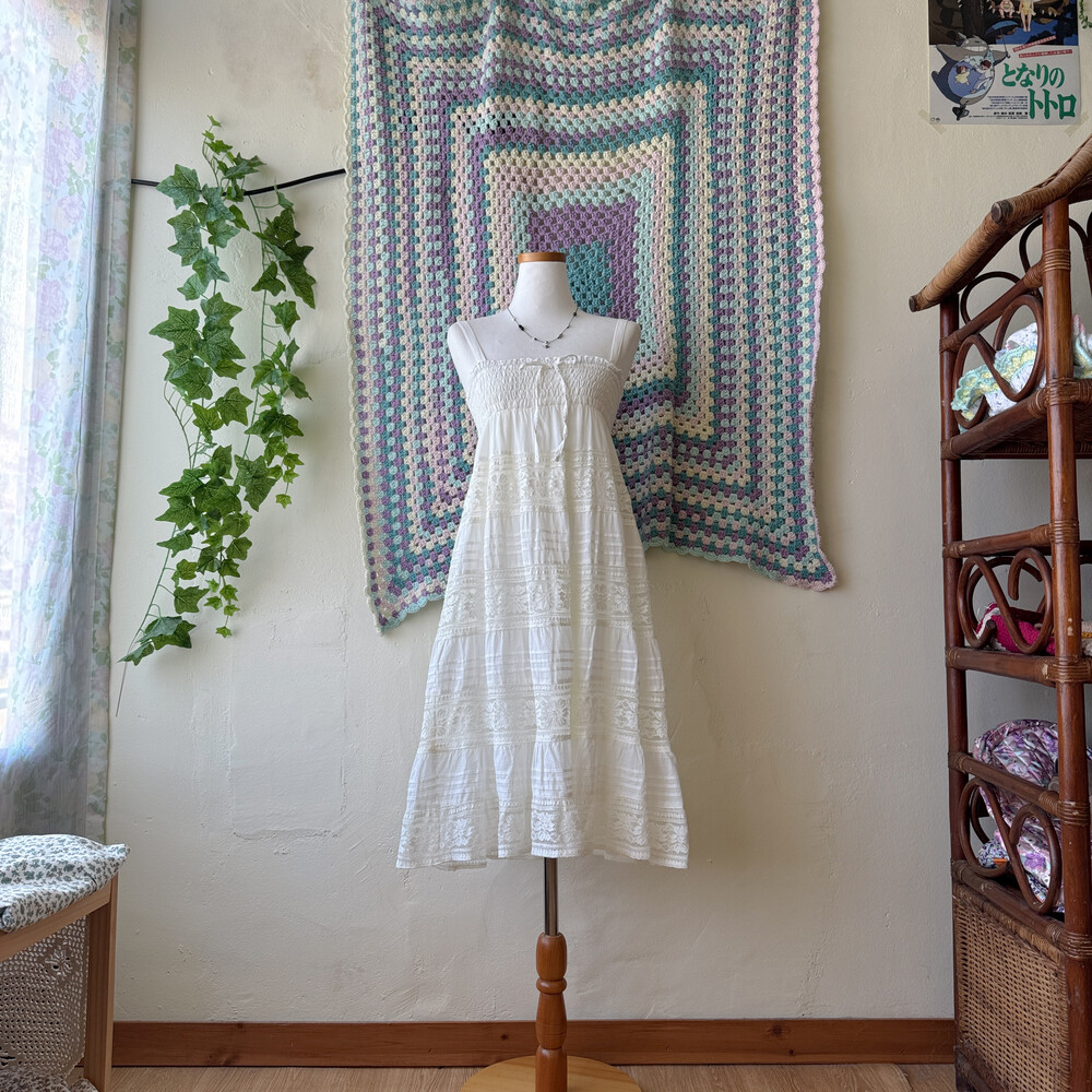 아이보리와 화이트 중간 정도 색감의 끈원피스예요