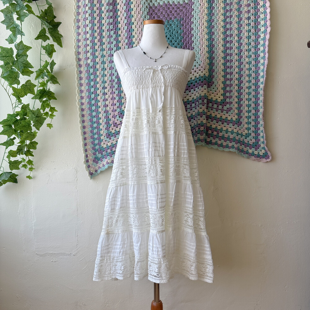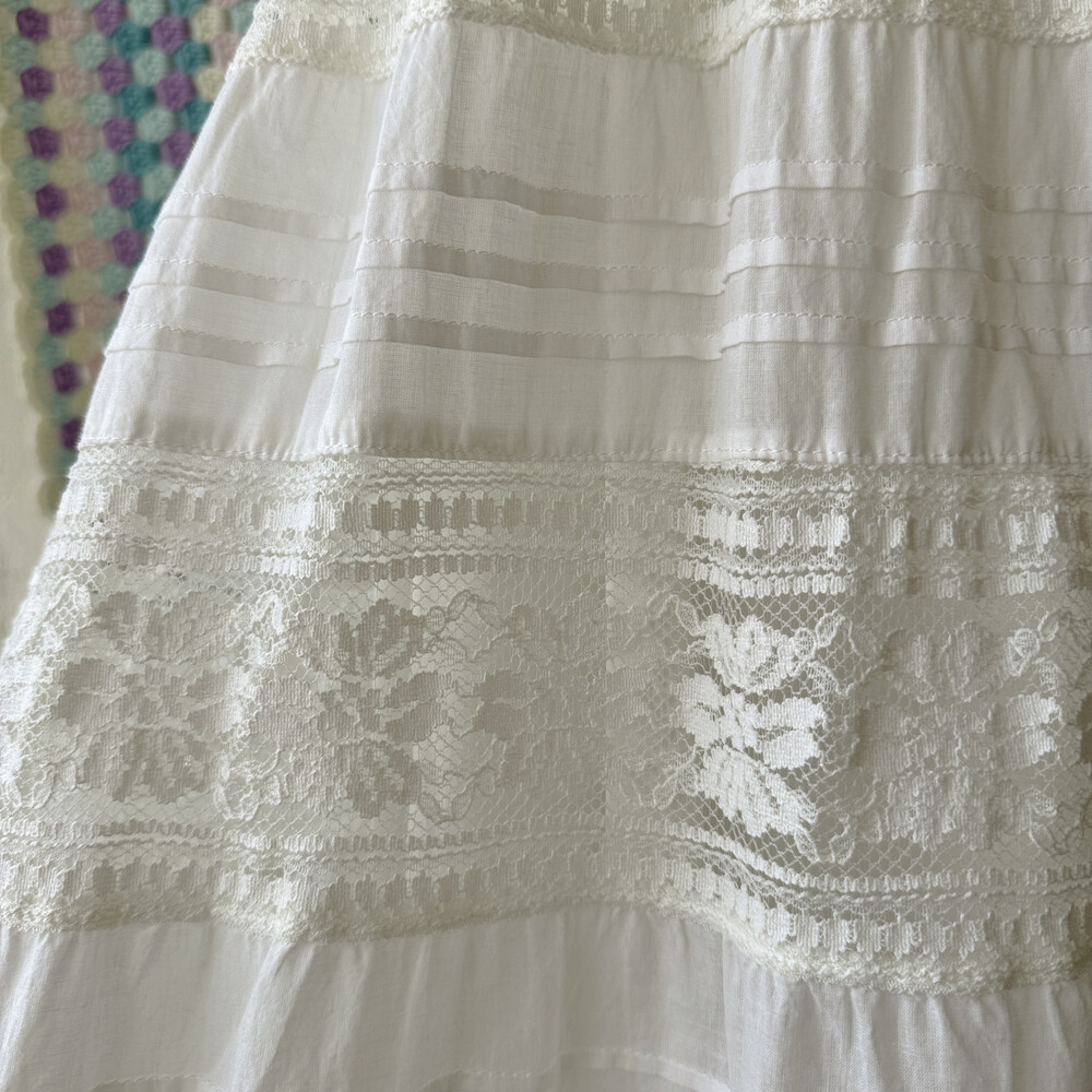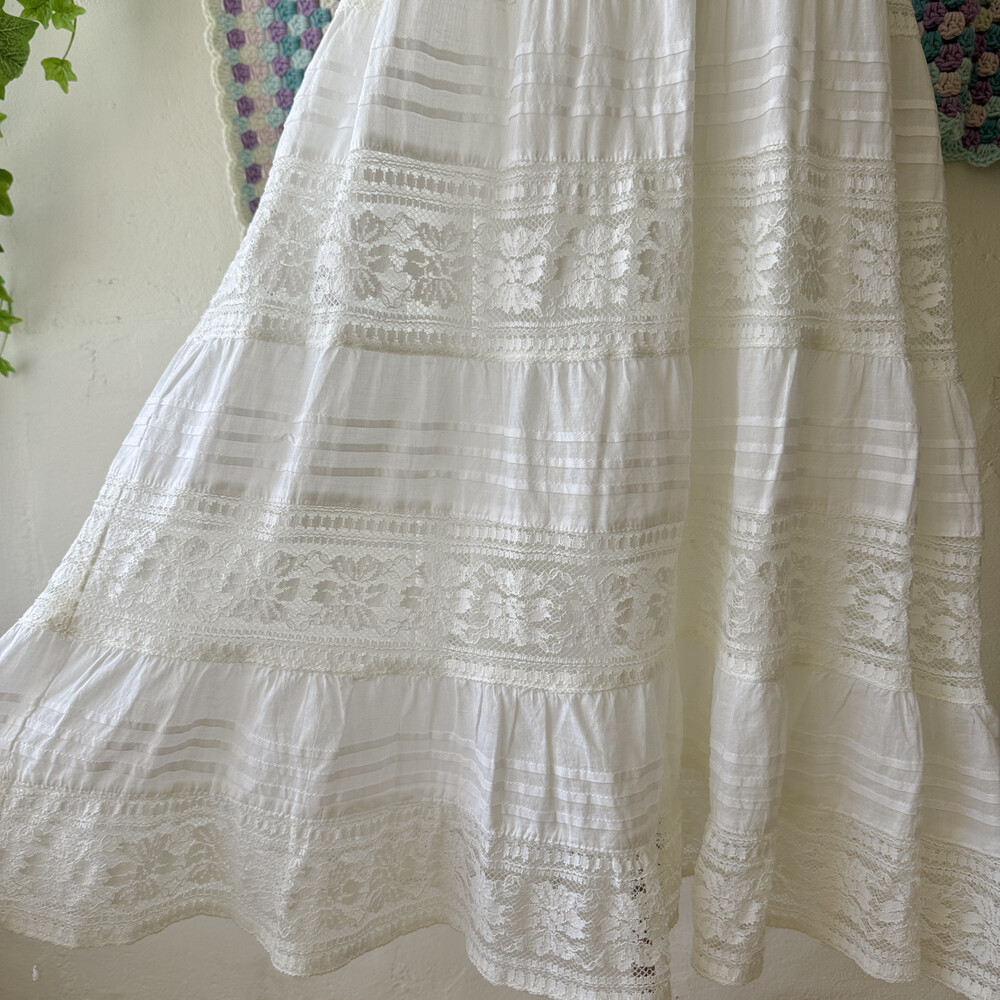 코튼 소재구요, 레이스와 핀턱 패치가 교차로 조합되어 있어요