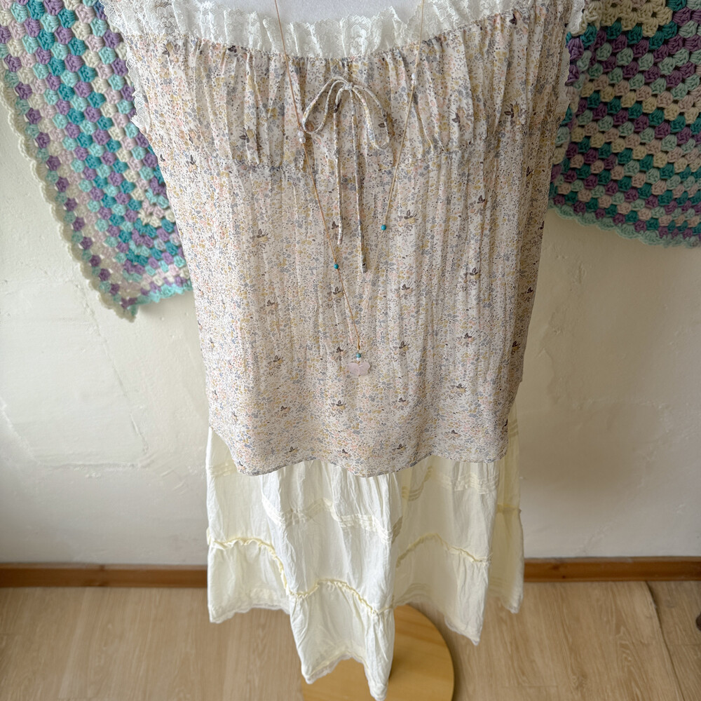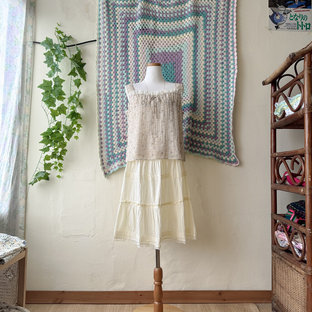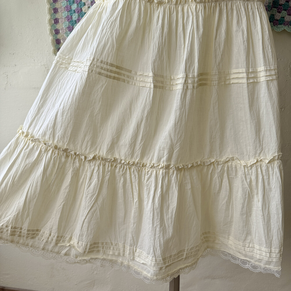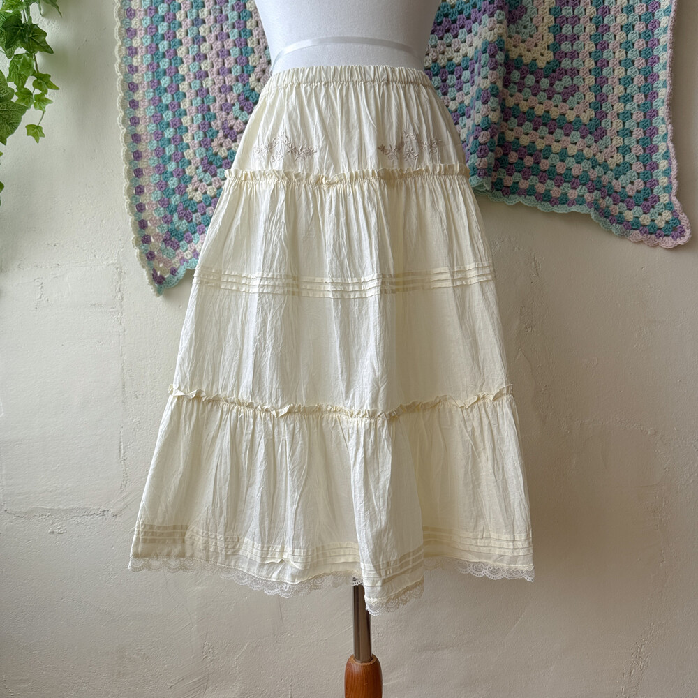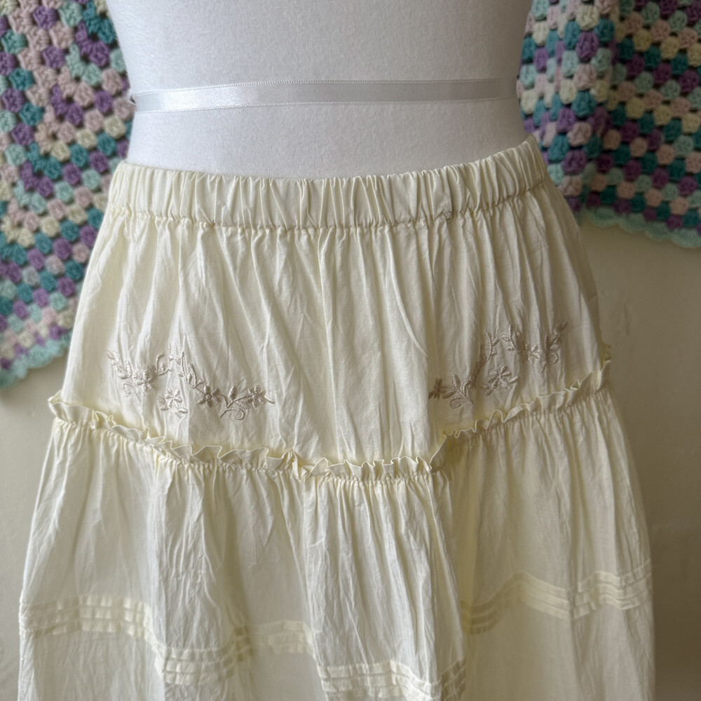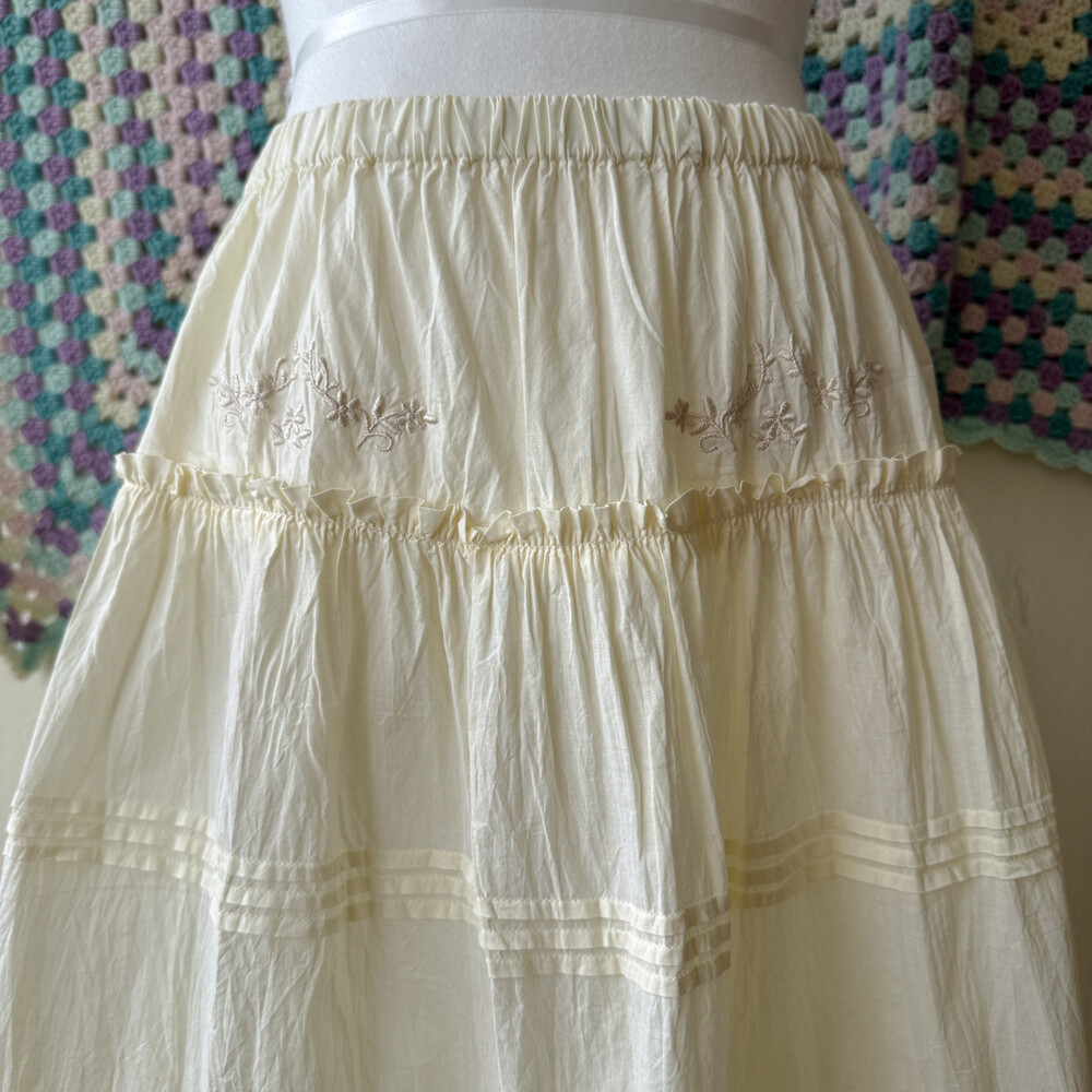 밝은 연버터 색감의 코튼 미디 스커트예요