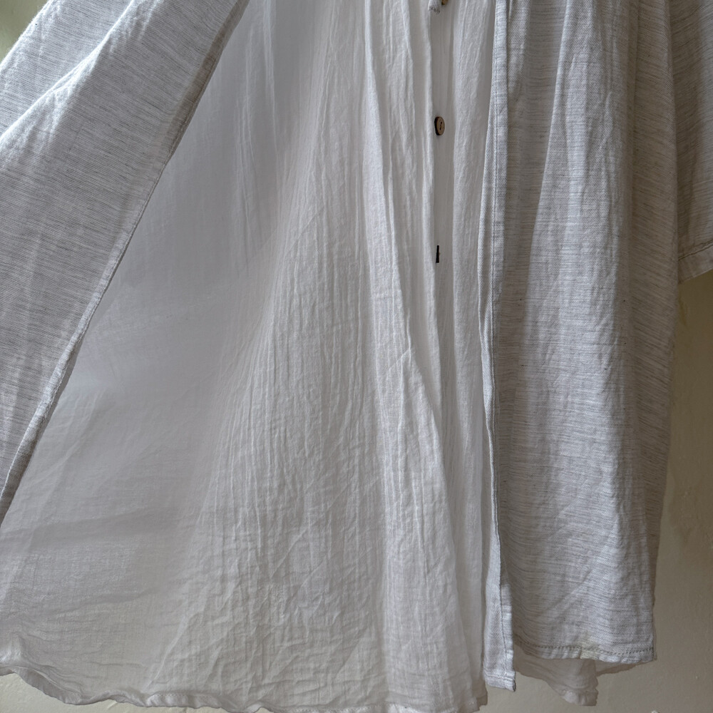코튼 소재고, 단추도 우드 단추라 더 코지한 분위기가 나요