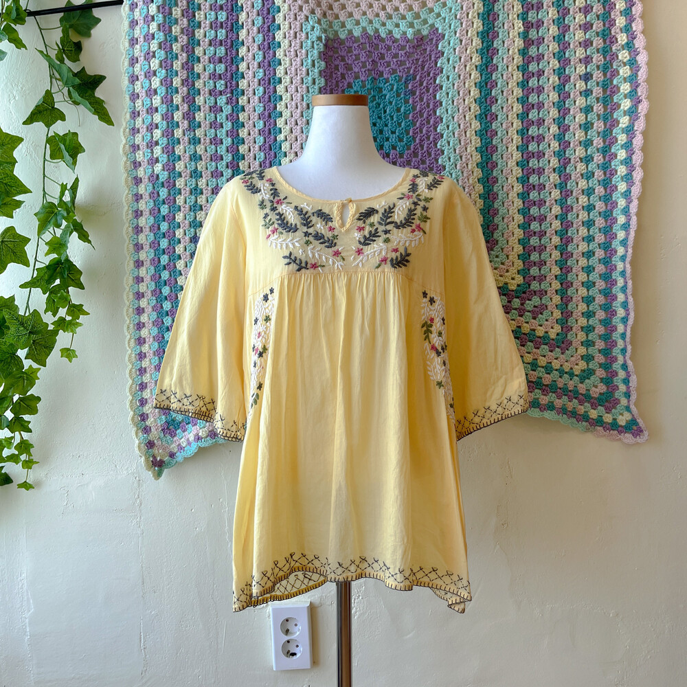 레몬 노랑 색감의 자수 블라우스예요