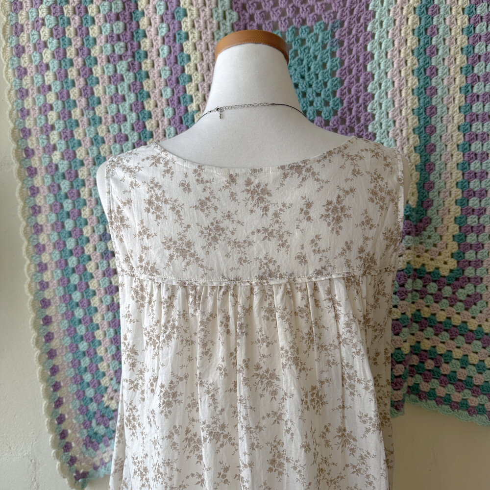 brown flower pintuck sleeveless ops
