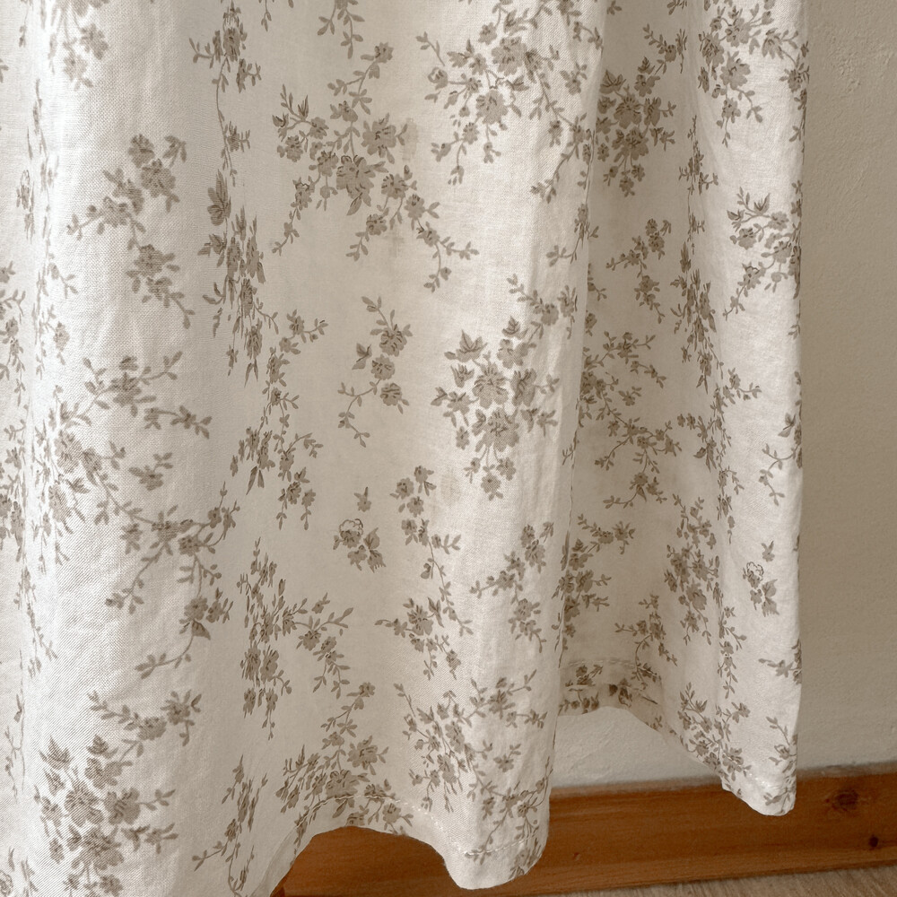 브라운 꽃무늬 패턴의 민소매 원피스예요