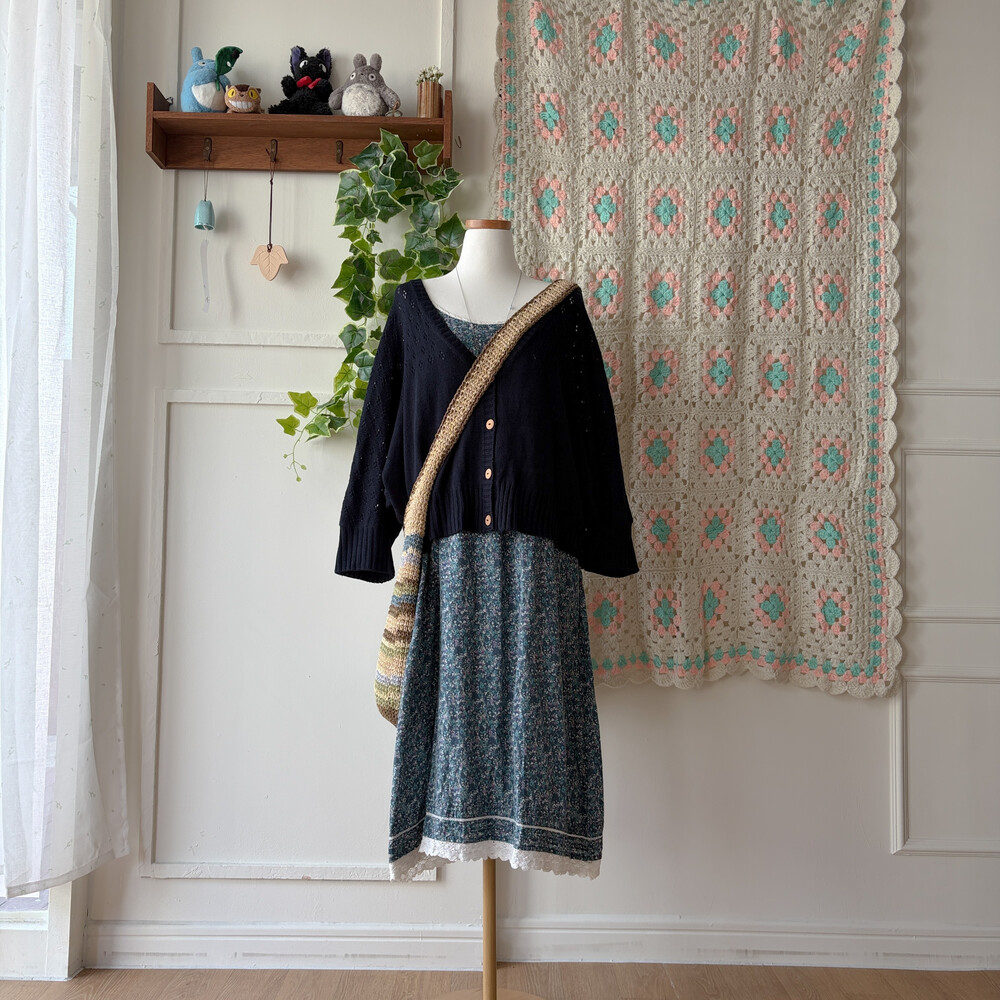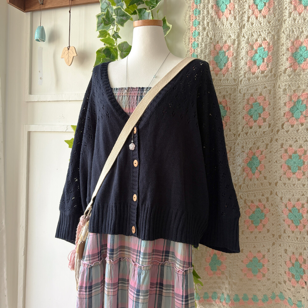 네이비 색감의 봄 펀칭 가디건이에요