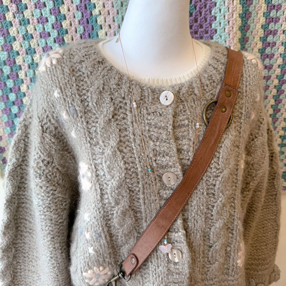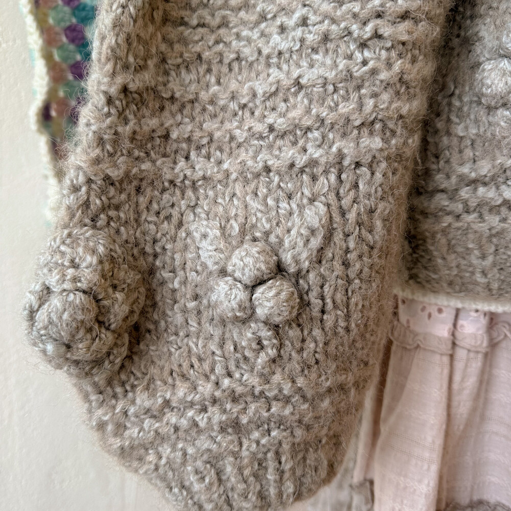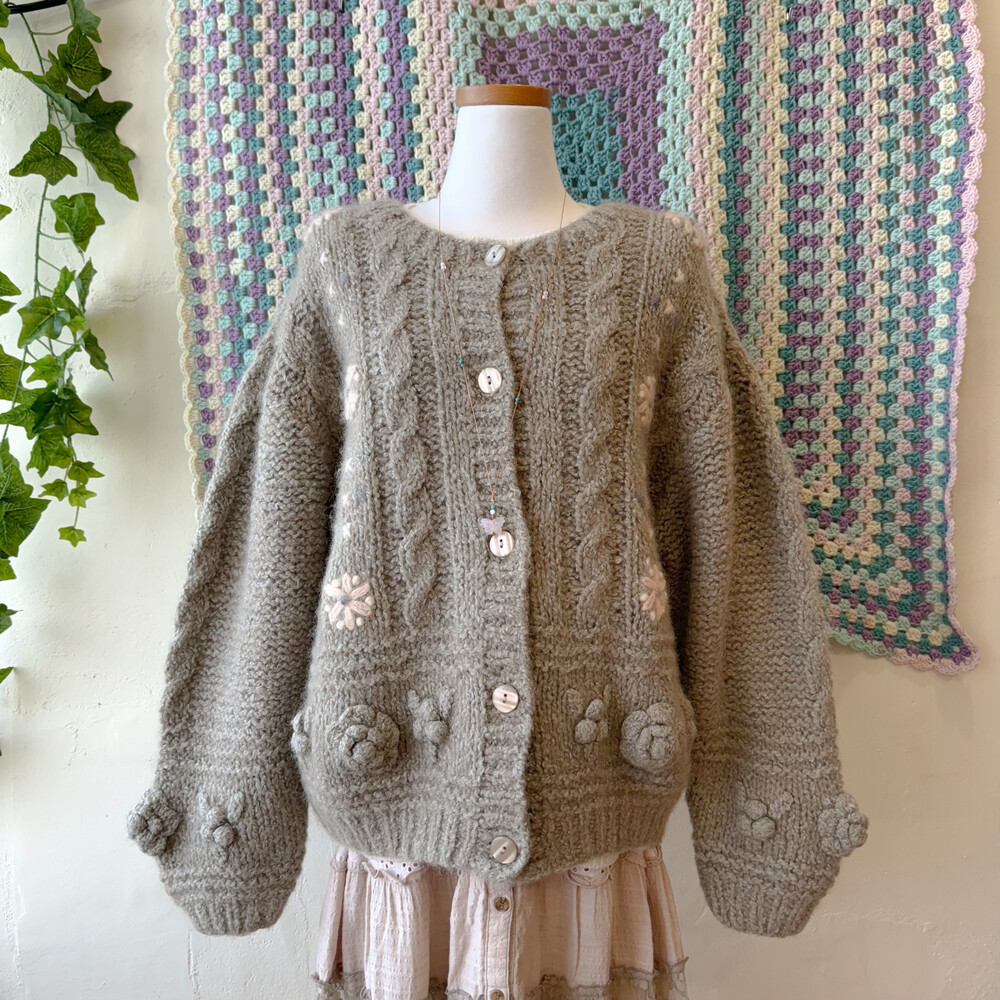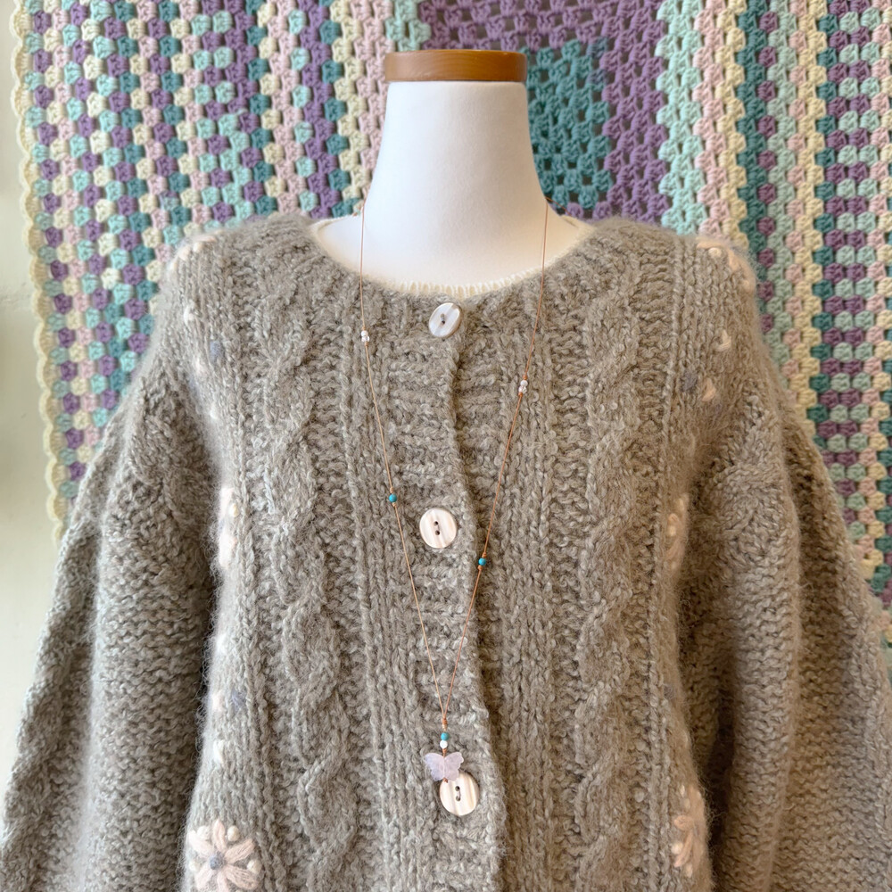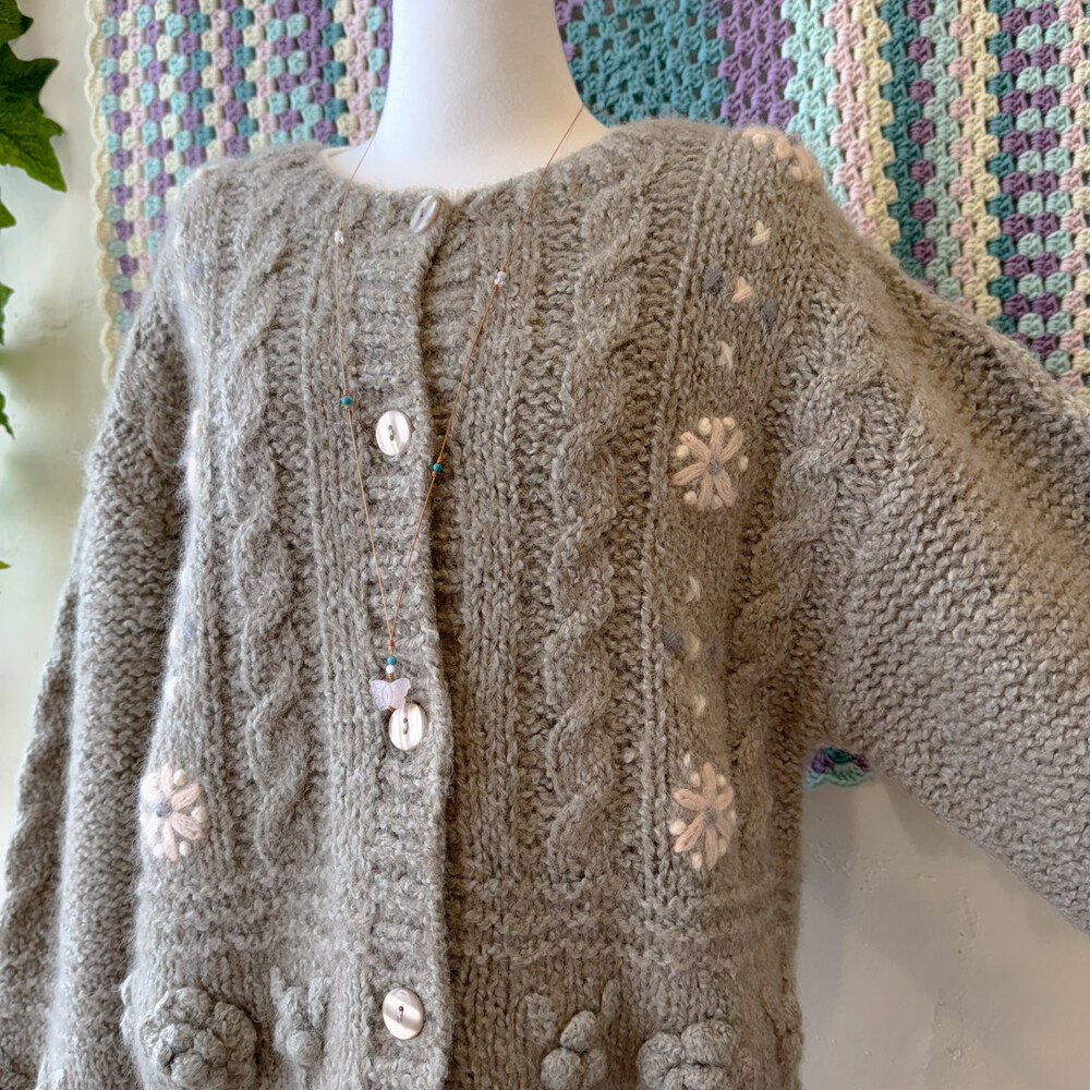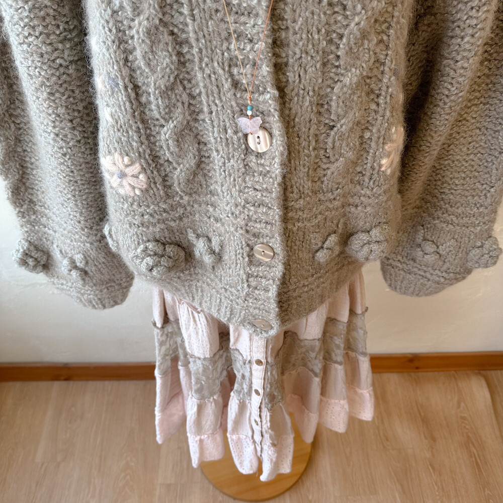 베이지+오트밀 색감 베이스의 자수 모티브 가디건이에요
