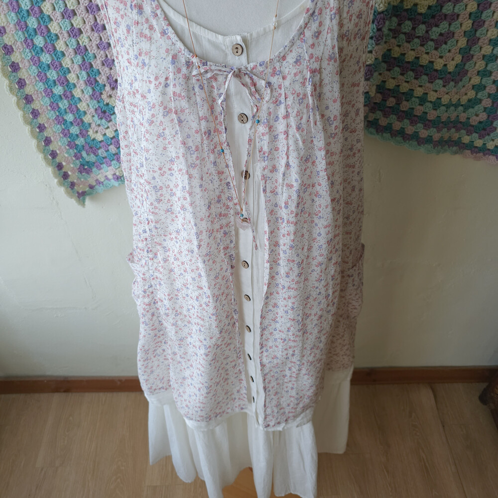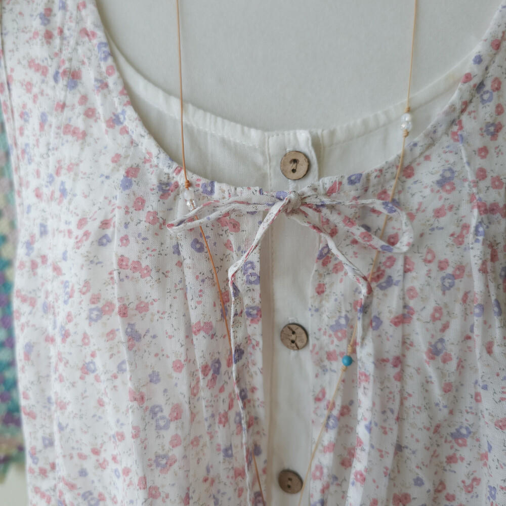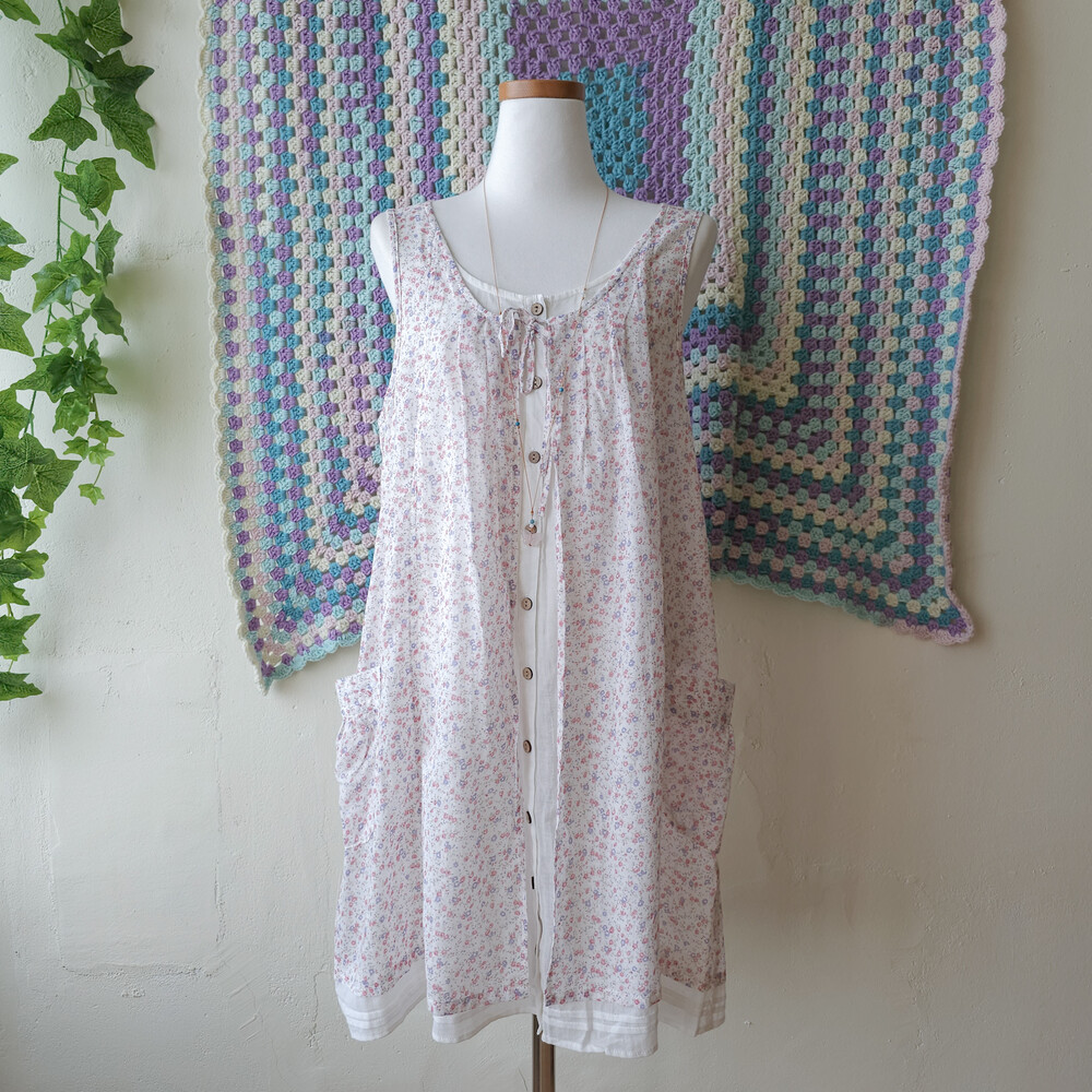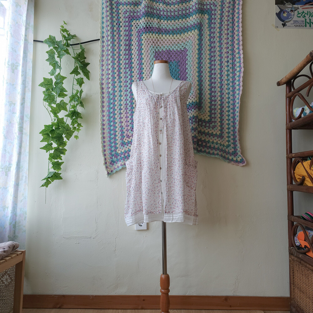핑크 잔꽃 패턴의 바선생 코튼 튜닉 원피스예요