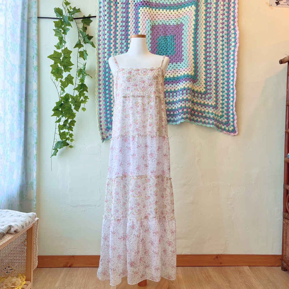 쉬폰 소재의 핑크 플라워 끈원피스예요