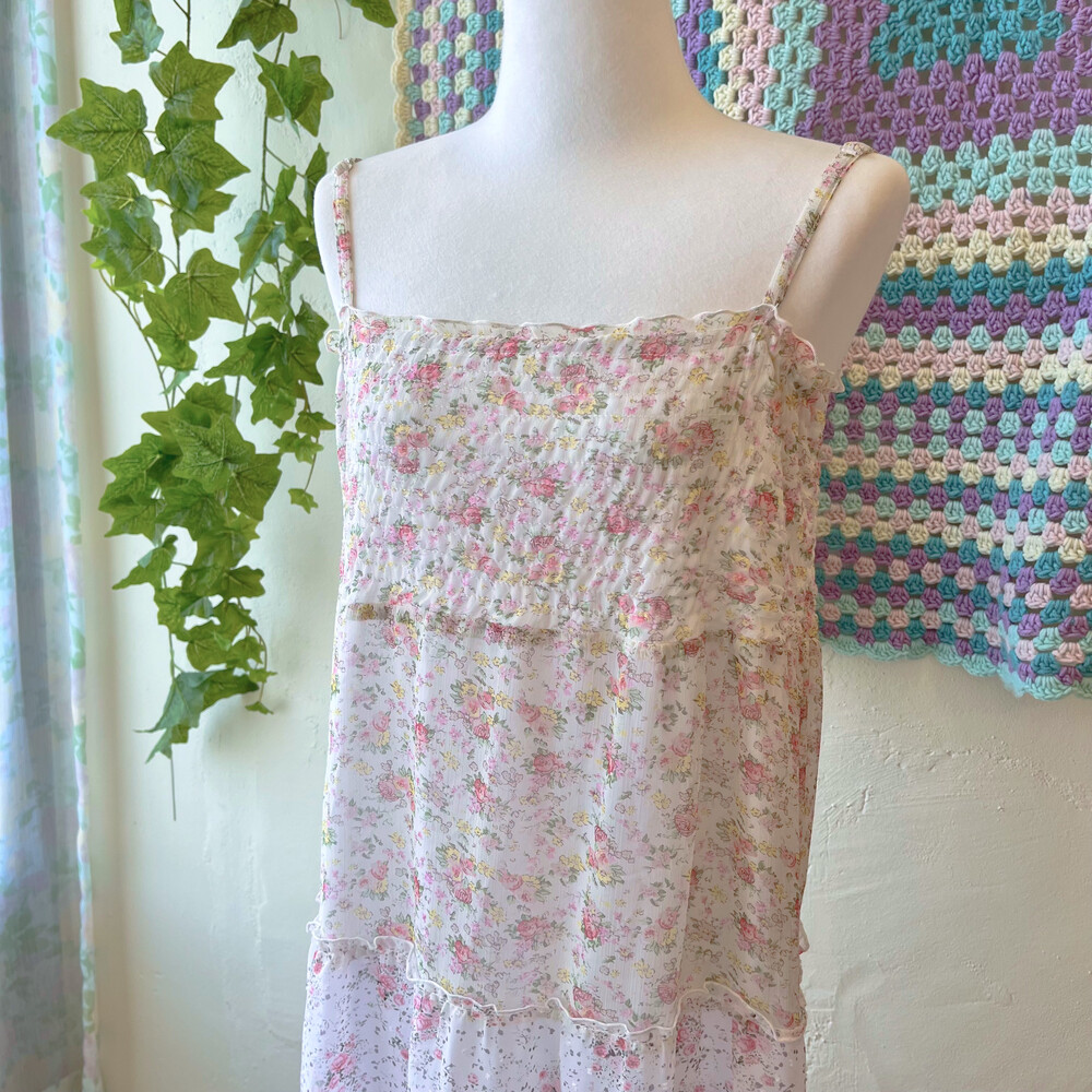 chiffon pink flower spring frill ops