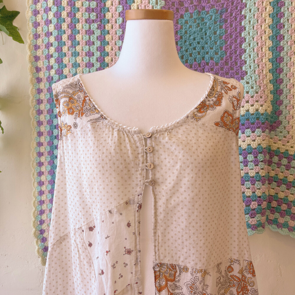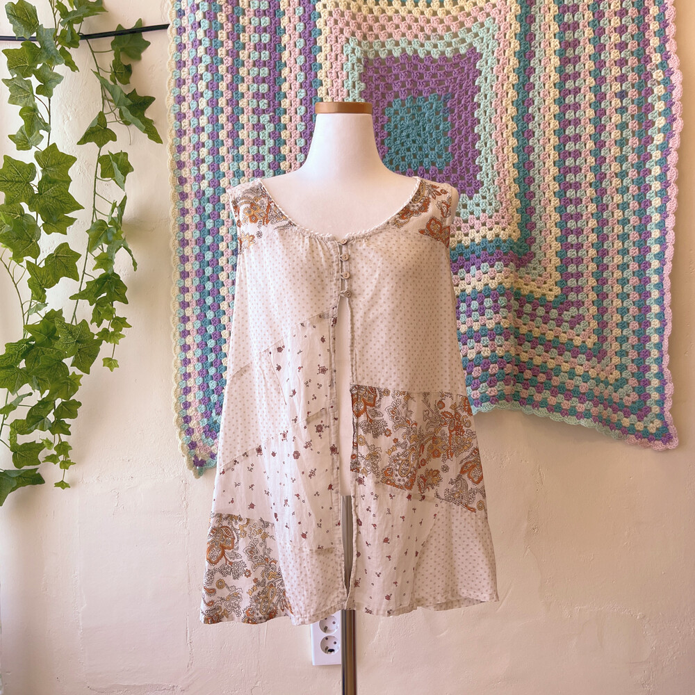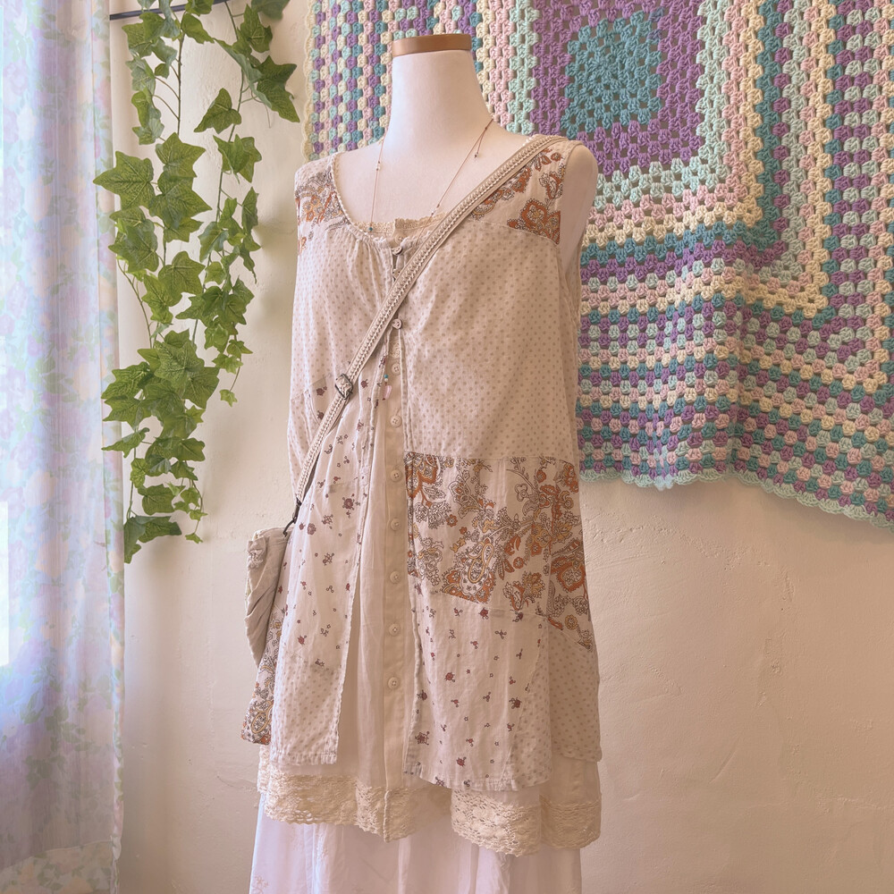 코지한 분위기의 패치 민소매 레이어드 블라우스예요