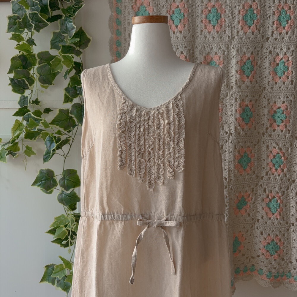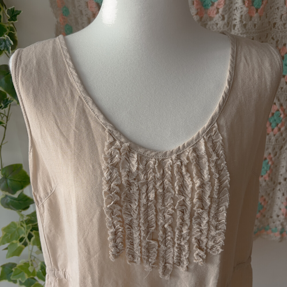 beige frill shirring point sleeveless ops