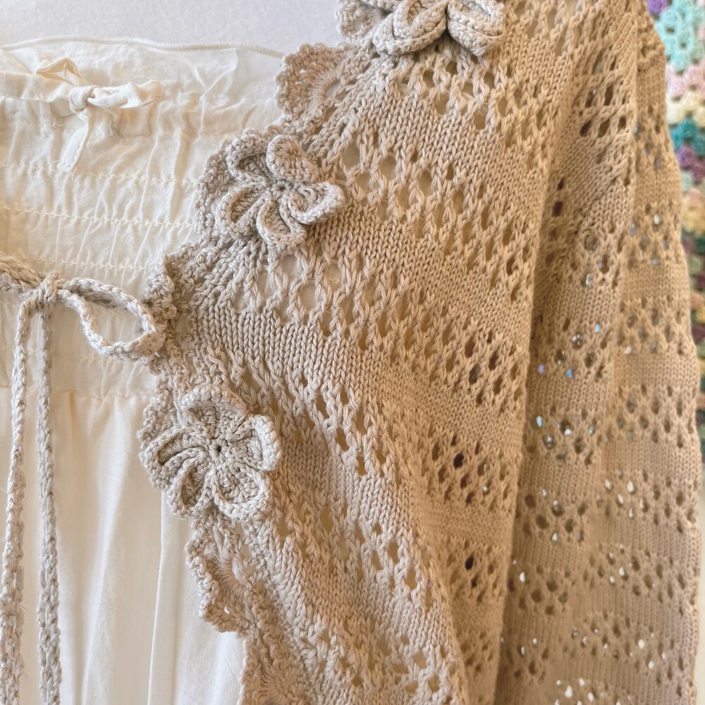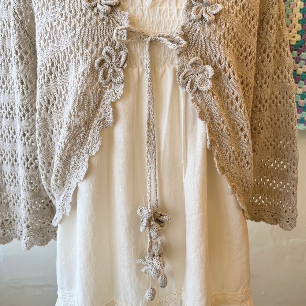 오트밀 색감의 모티브 펀칭 가디건이에요!
