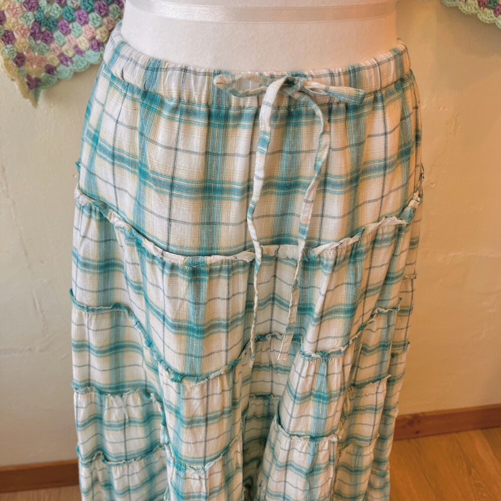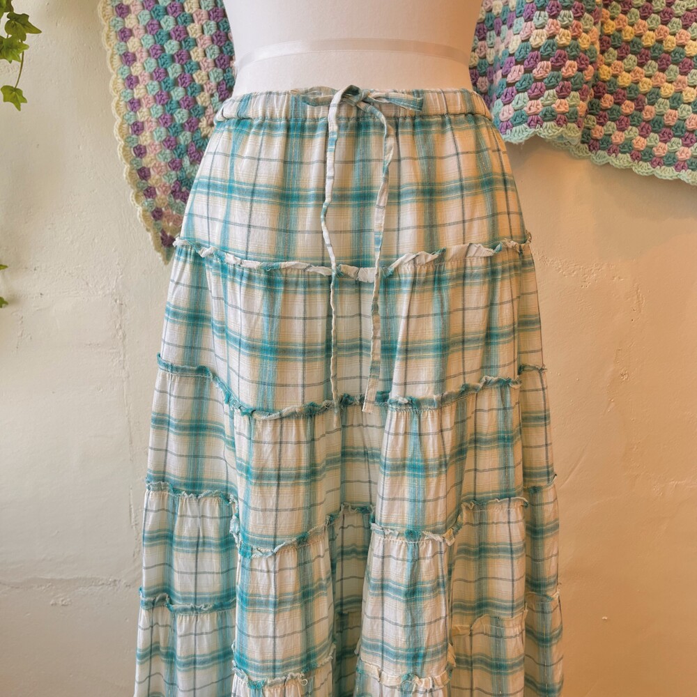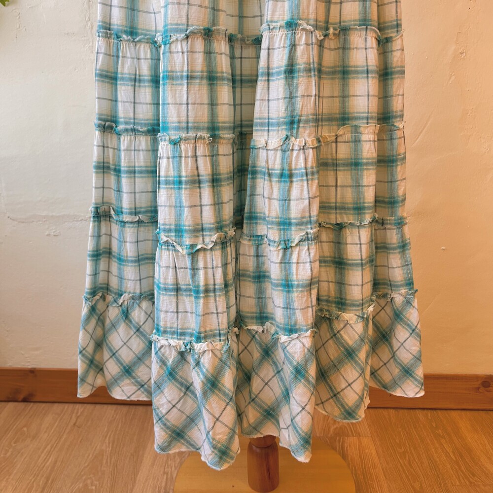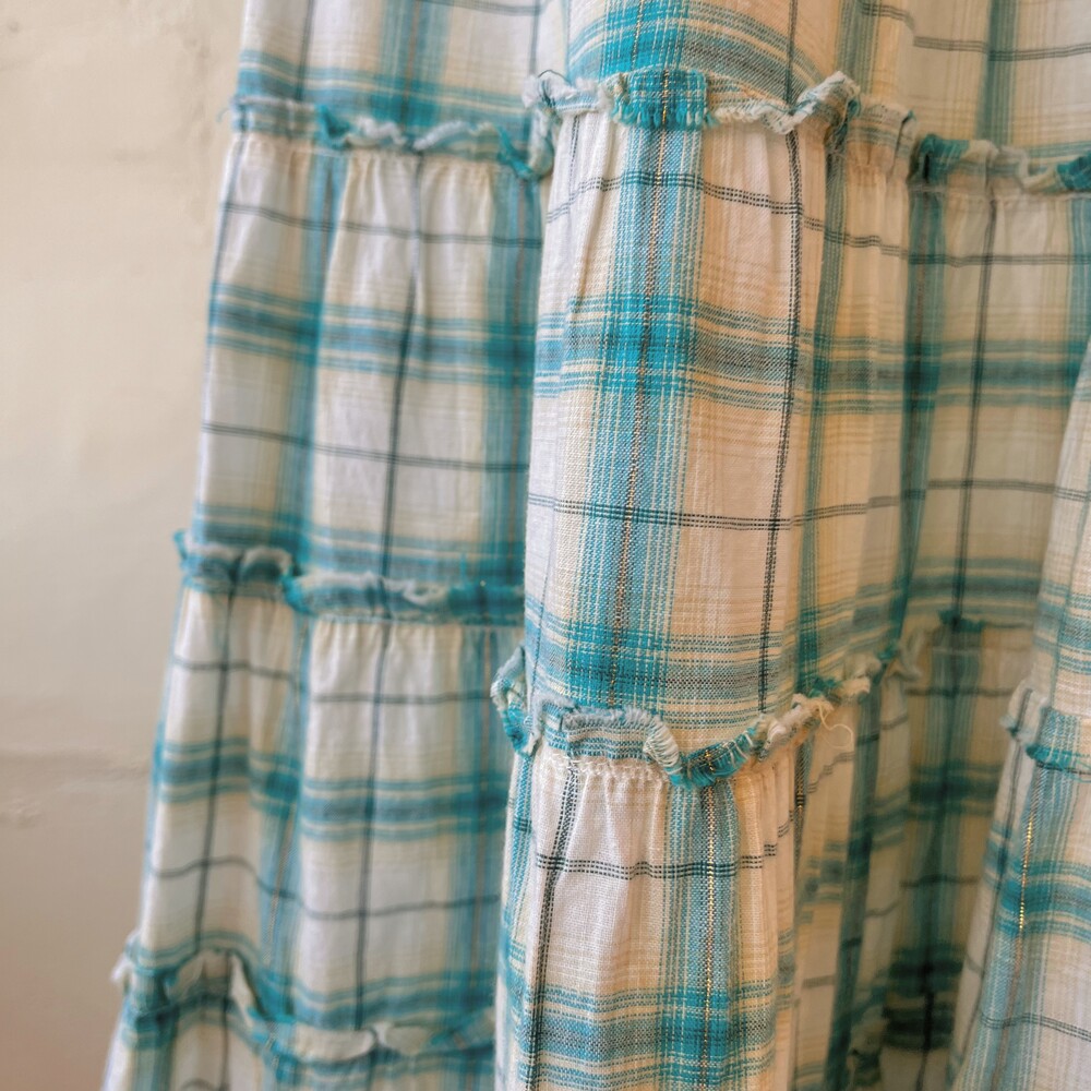 water blue check frill tiered sk