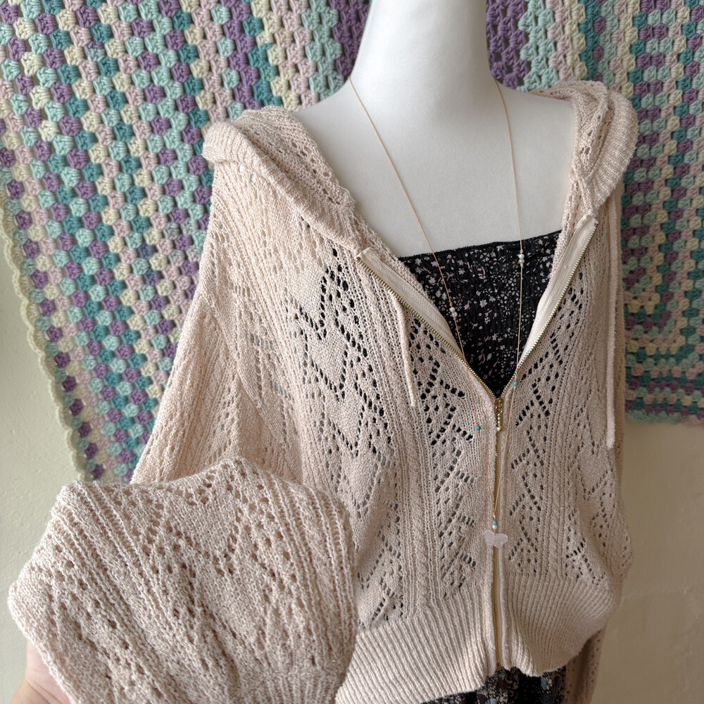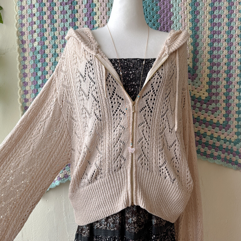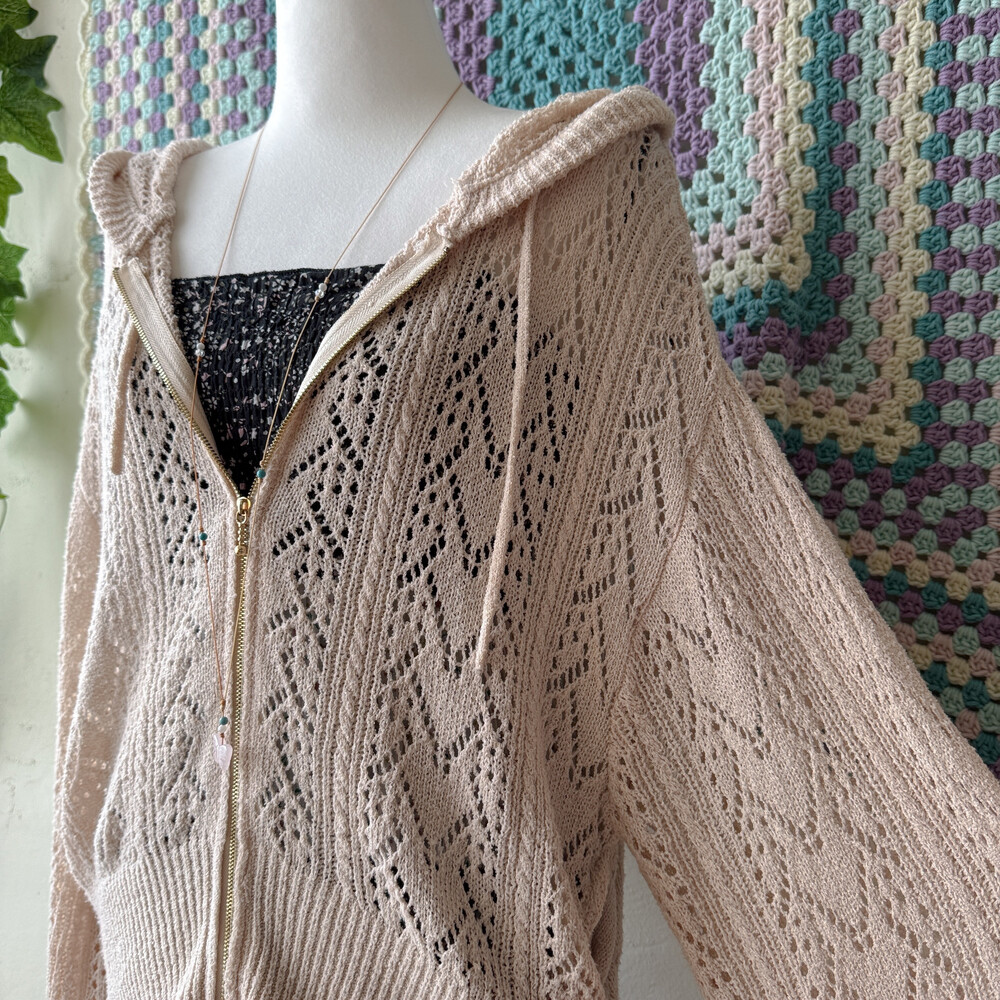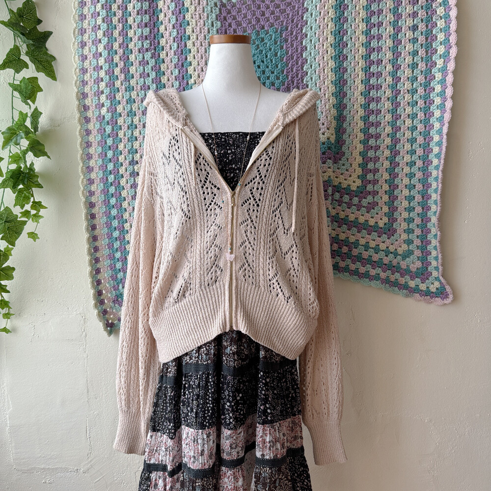 bright beige hood crochet zipup cd