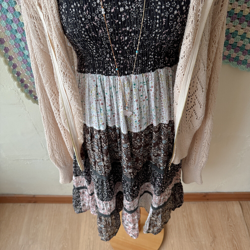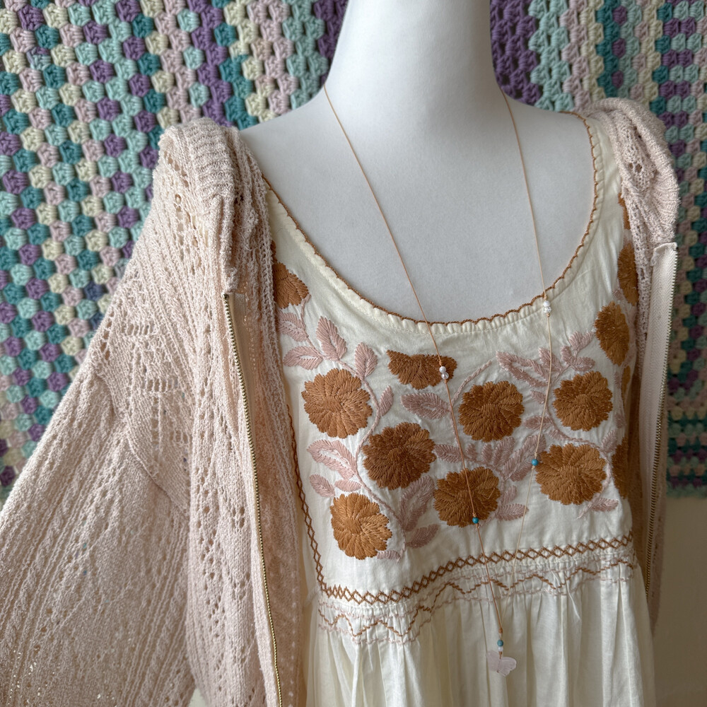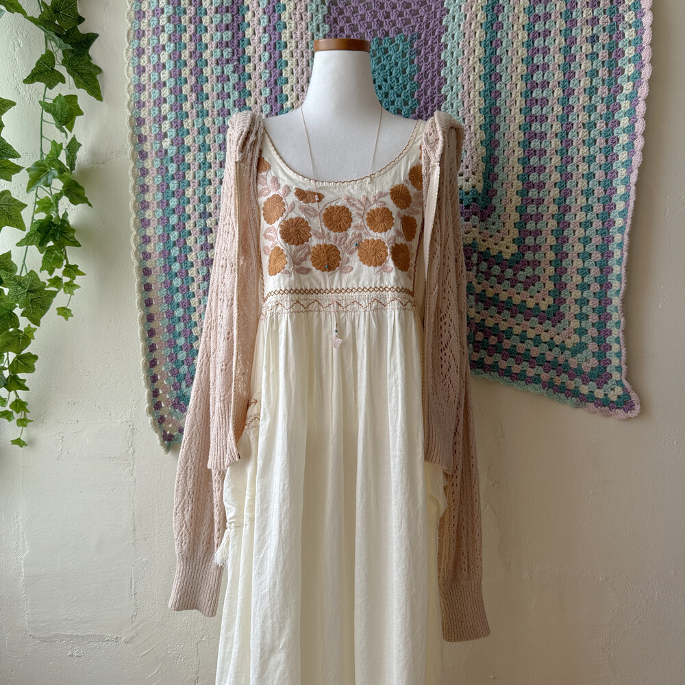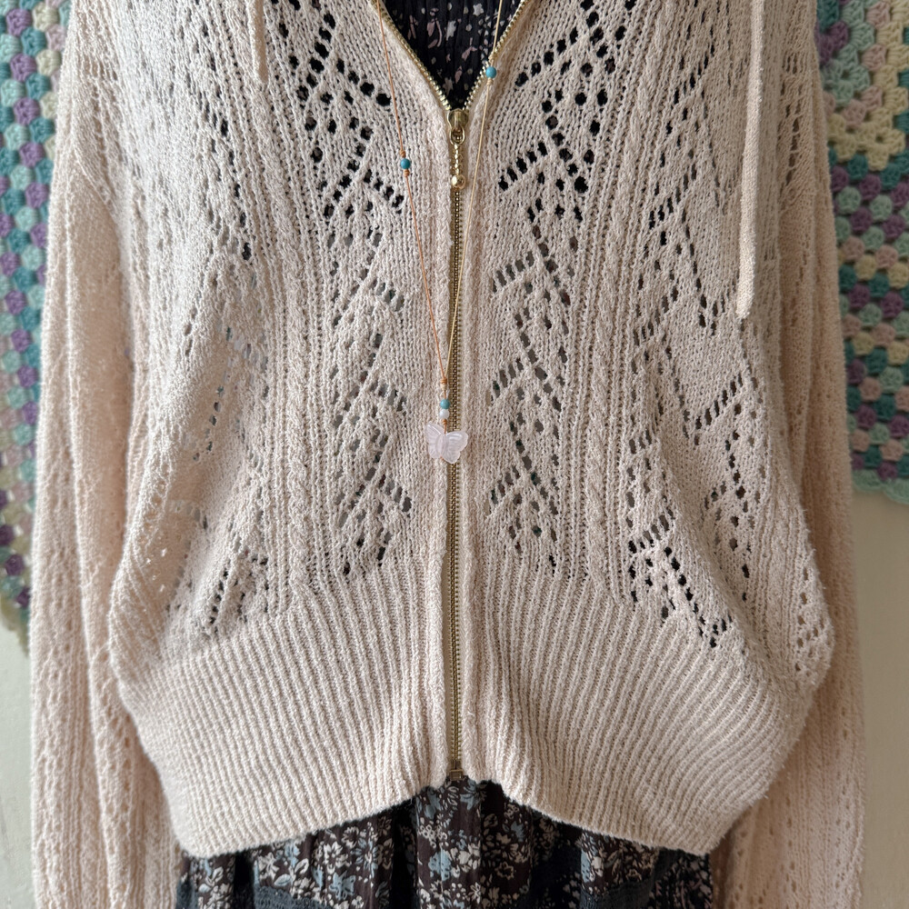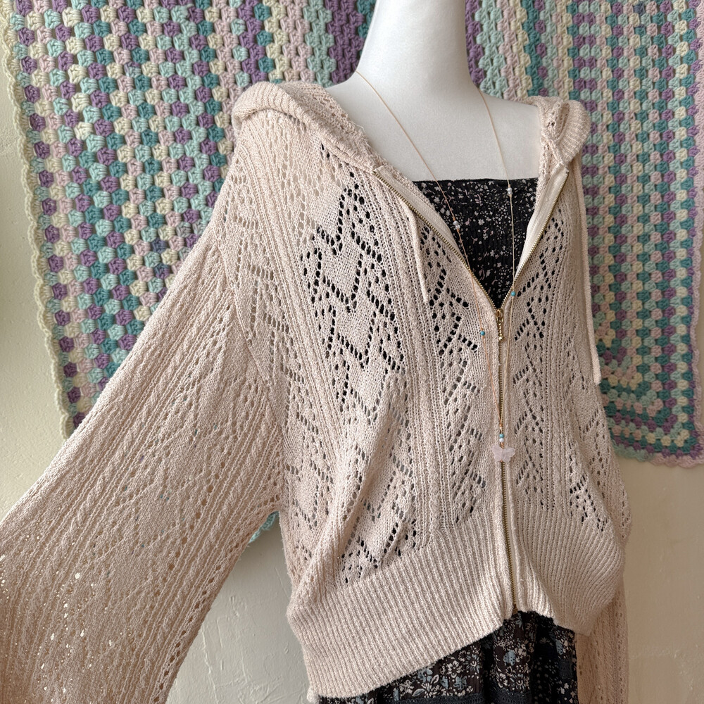 bright beige hood crochet zipup cd