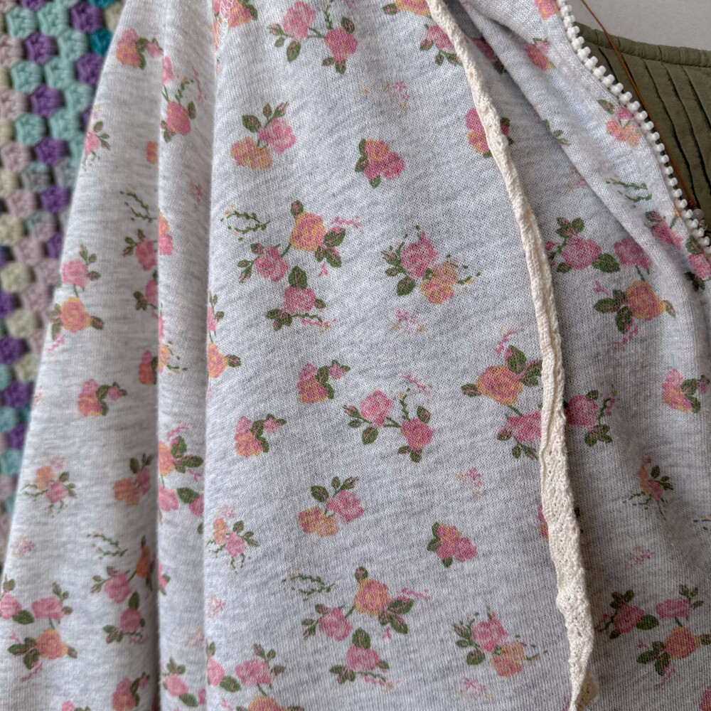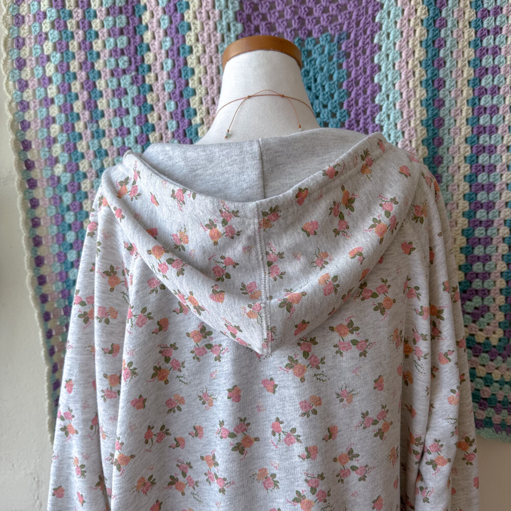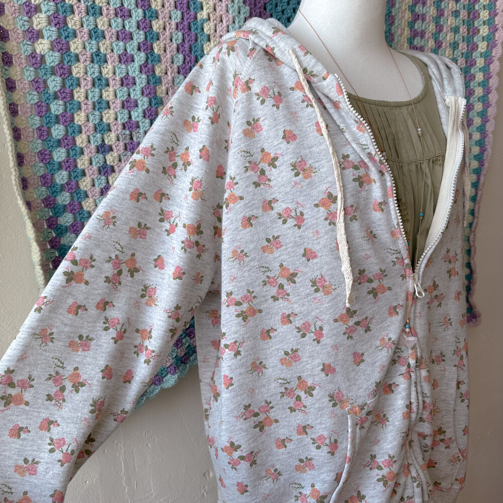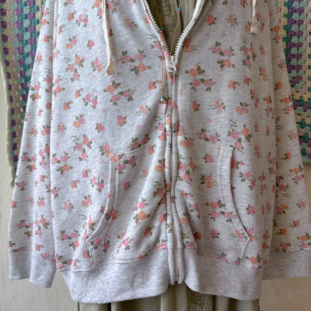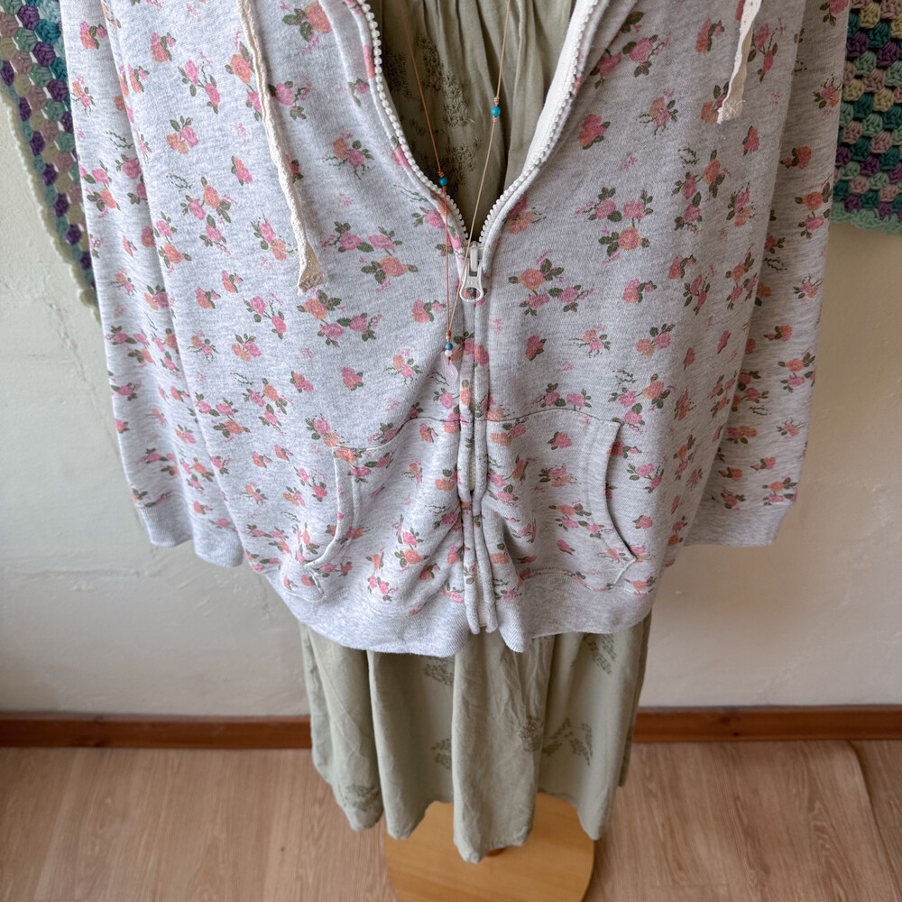 그레이 색감 바탕의 꽃무늬 후드집업이에요