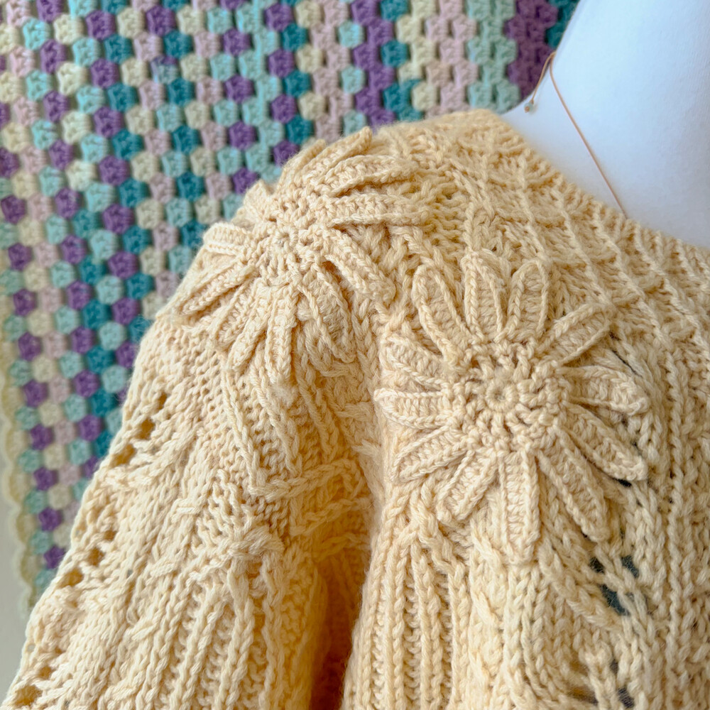 어깨 쪽에 모티브한 왕꽃 패치가 붙어있는 사랑스러운 가디건이랍니다