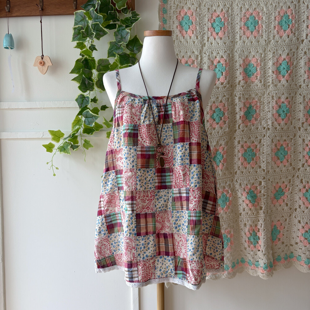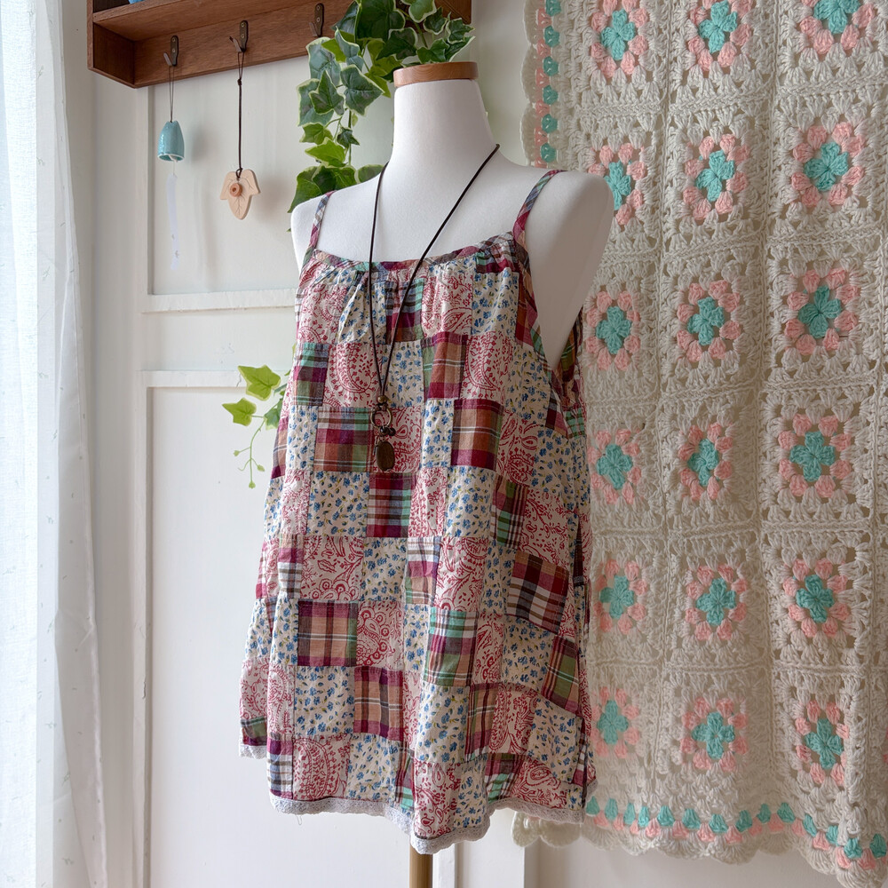 mori check&flower patch sleeveless bl