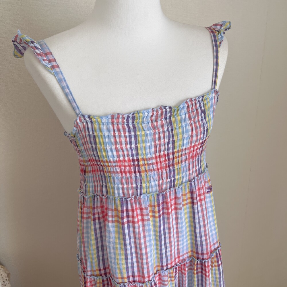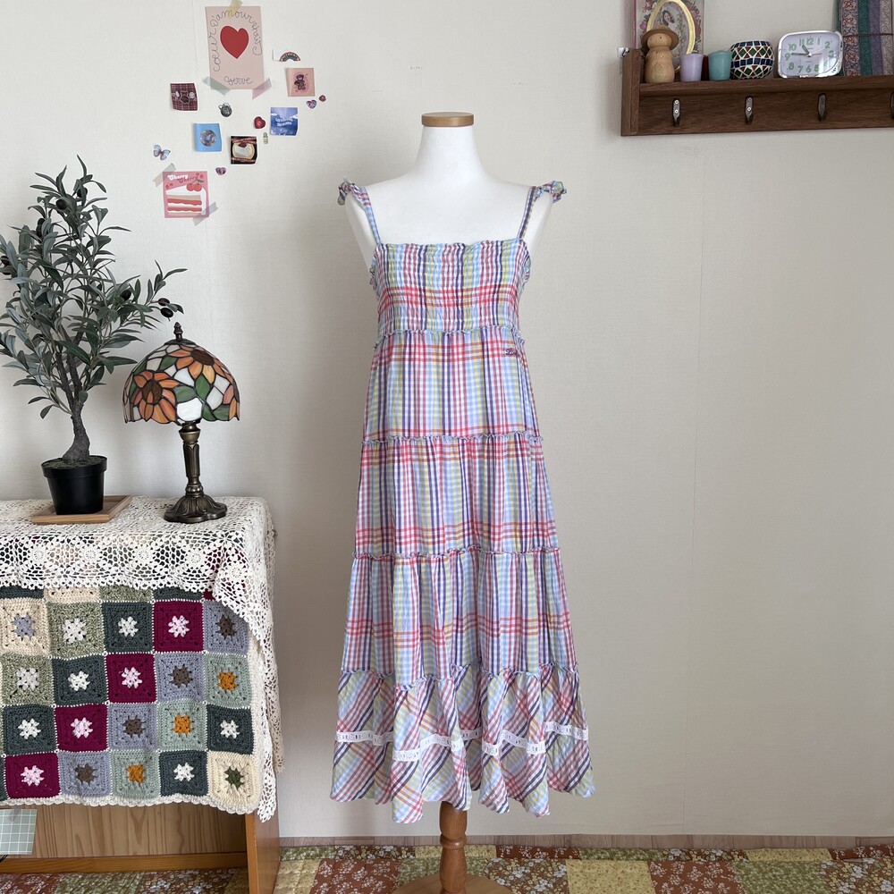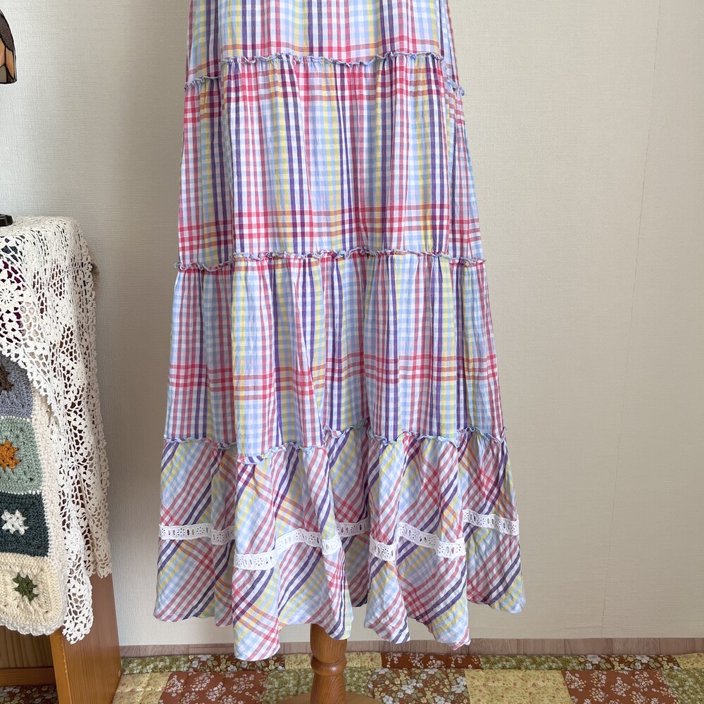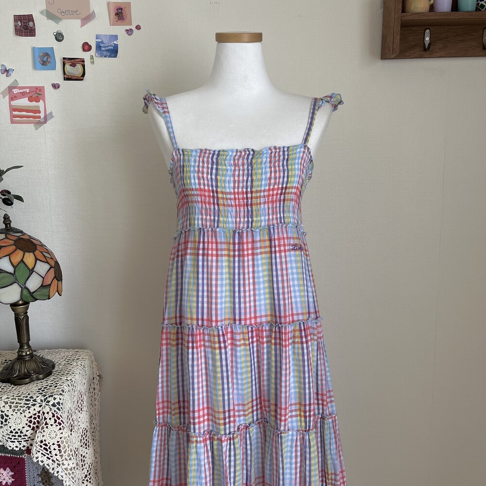 purple&blue check frill strap ops