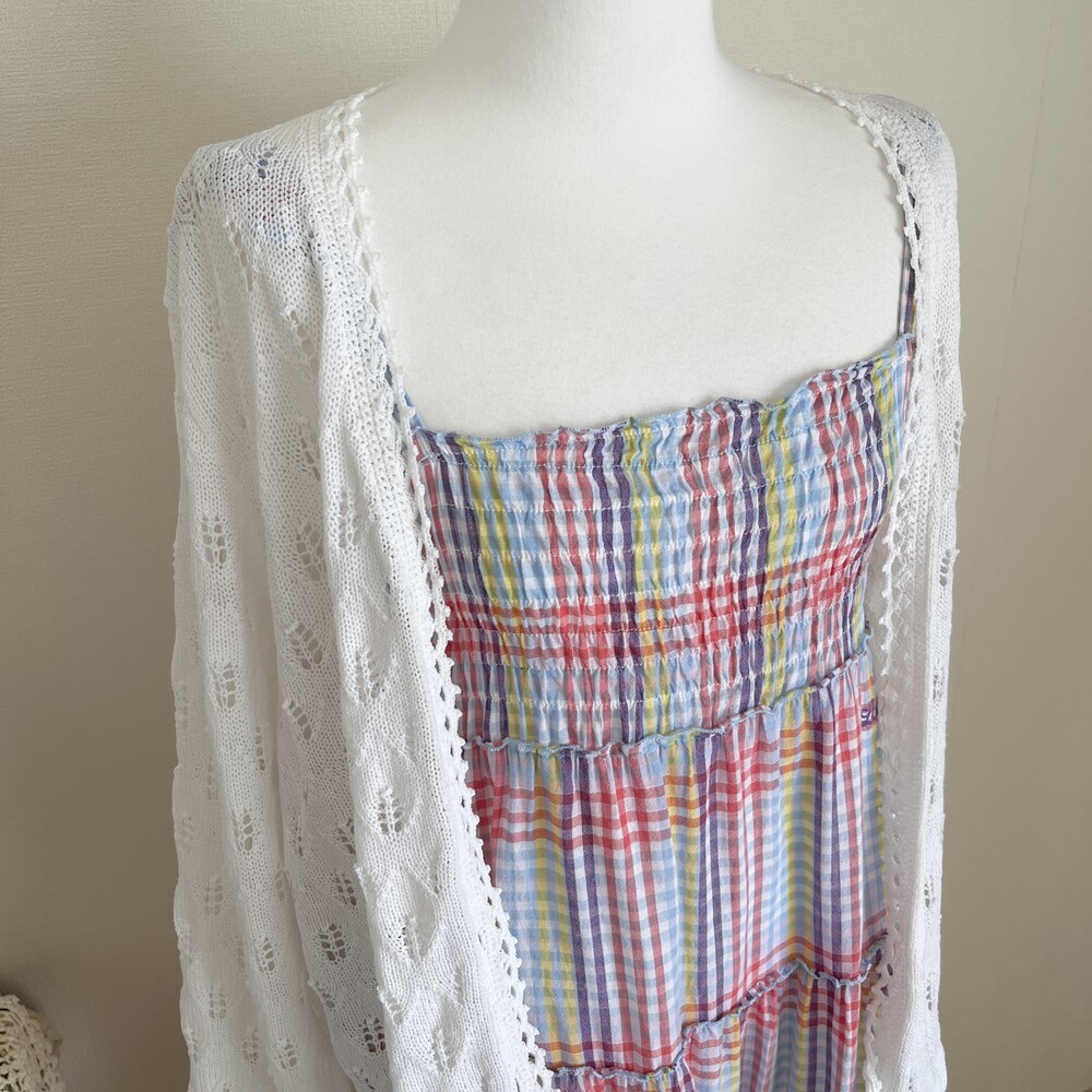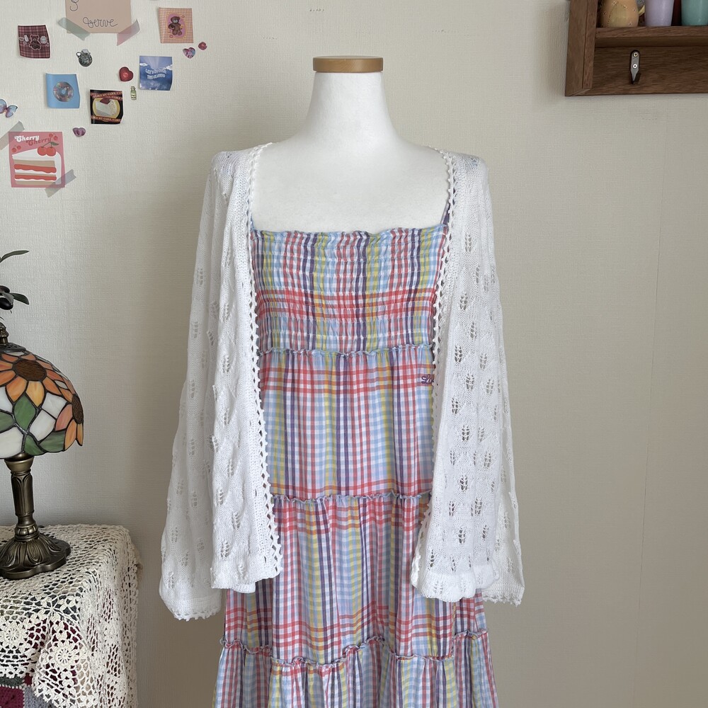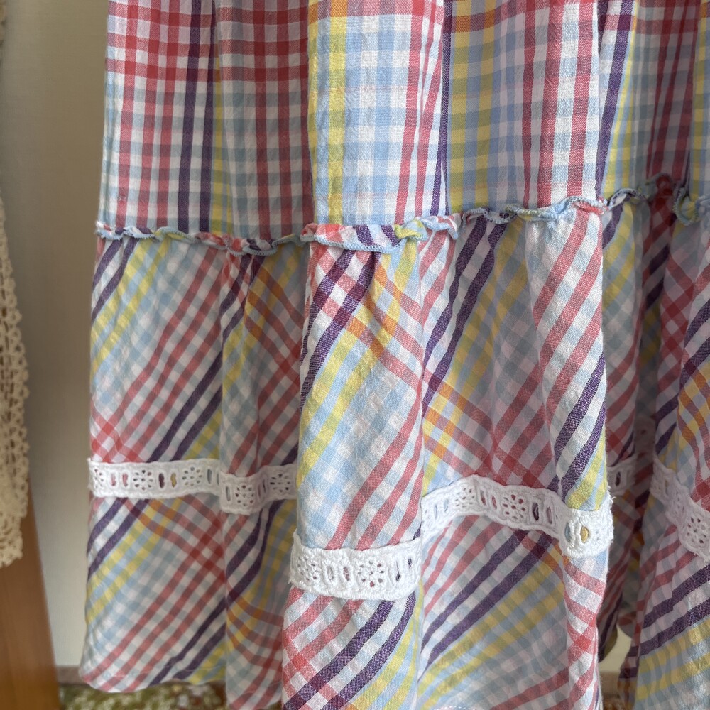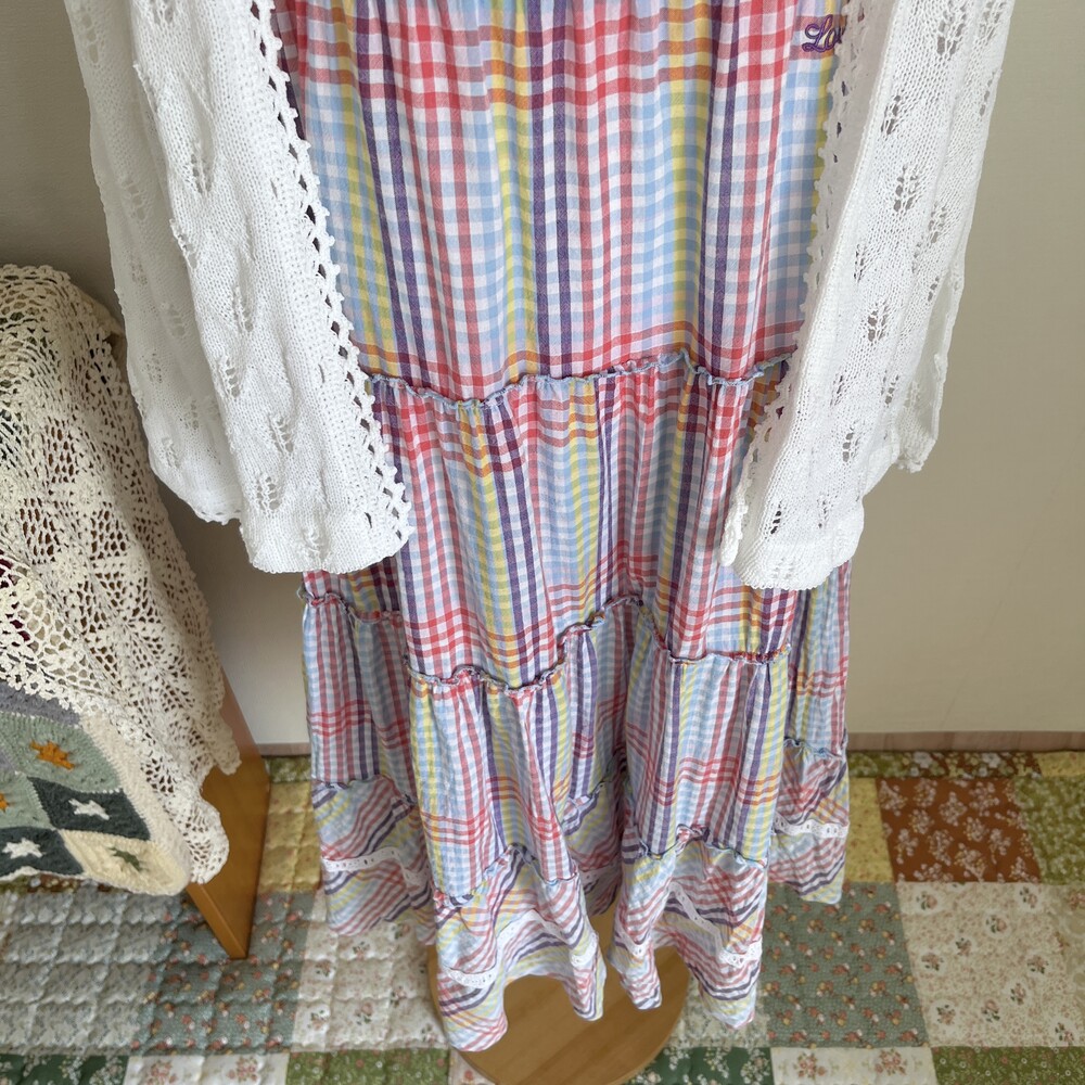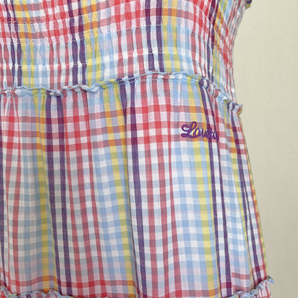 purple&blue check frill strap ops