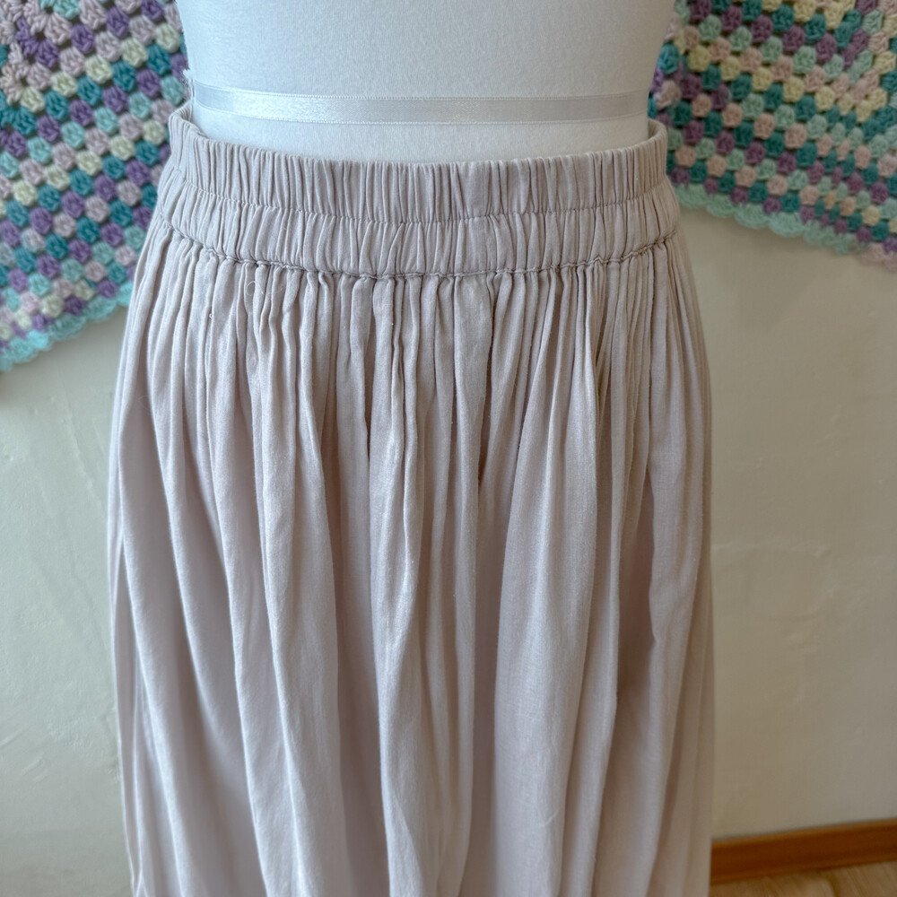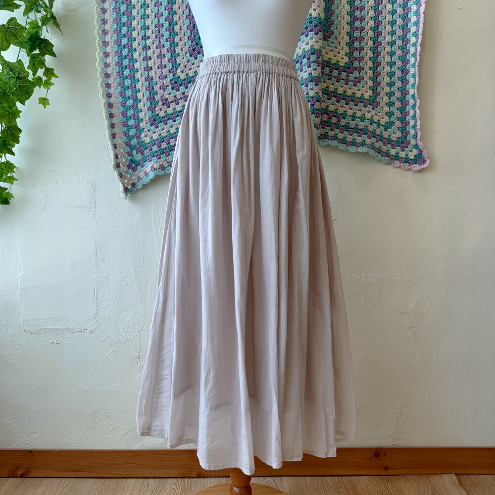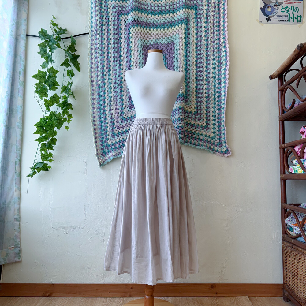 옅은 보라,그레이가 오묘히 섞인 색의 코튼 스커트예요