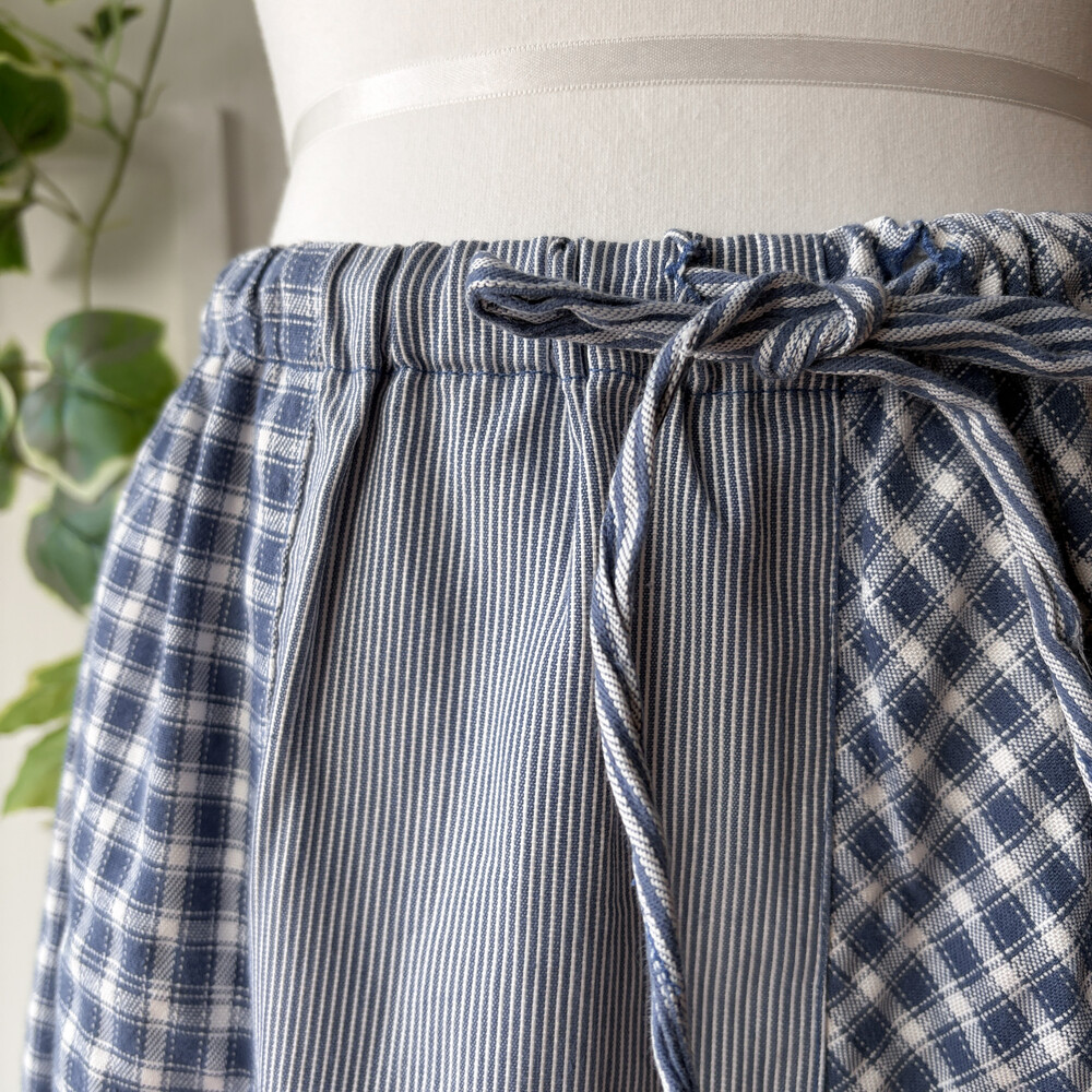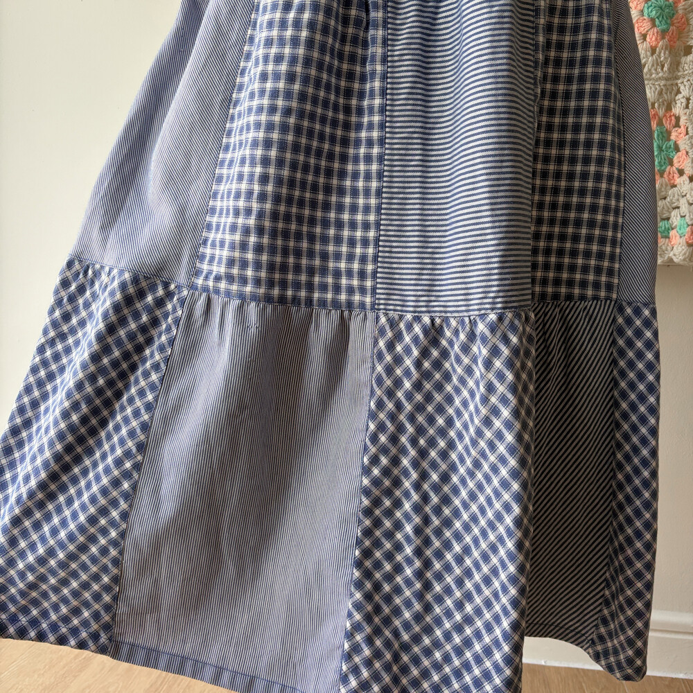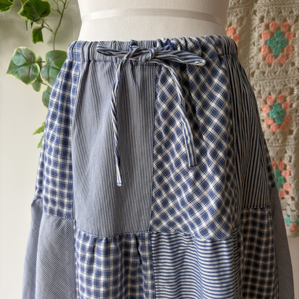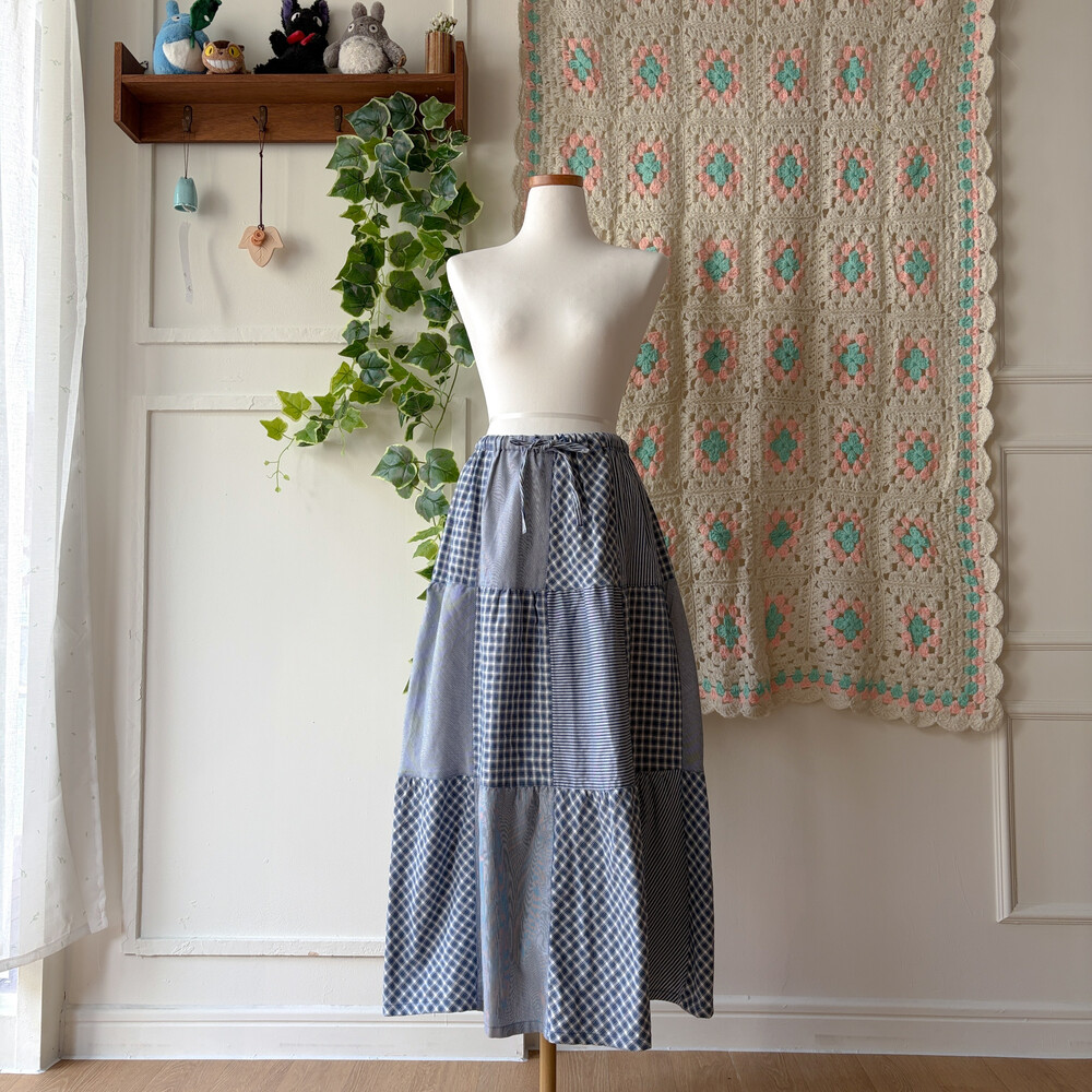 블루 색감의 패치워크 롱스커트예요