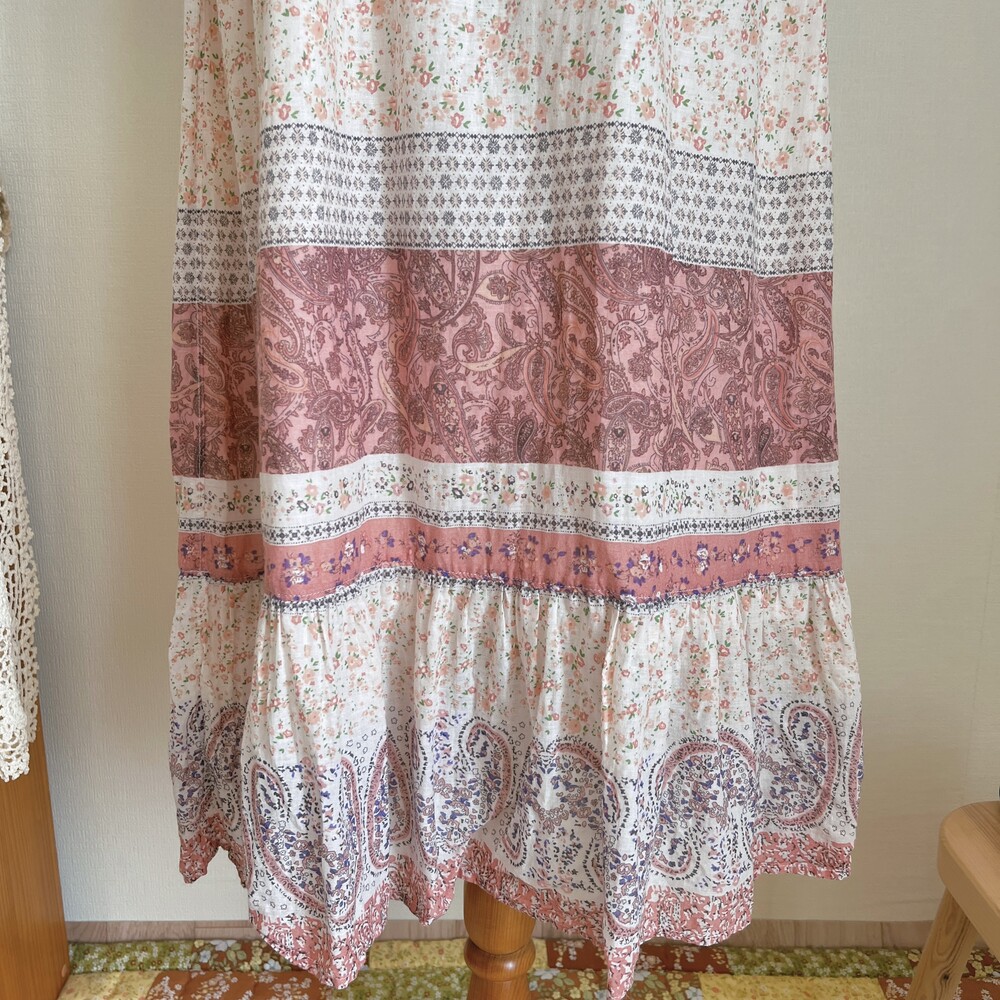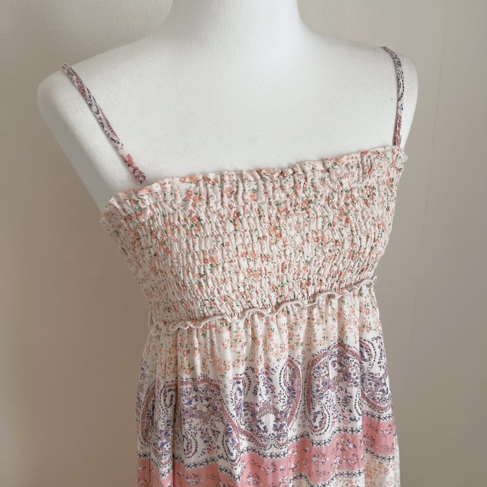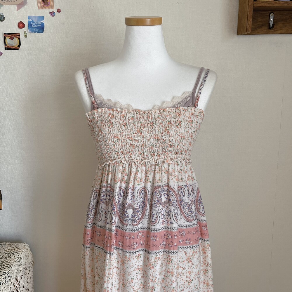 살구, 분홍 색감의 잔꽃 코튼 끈원피스예요